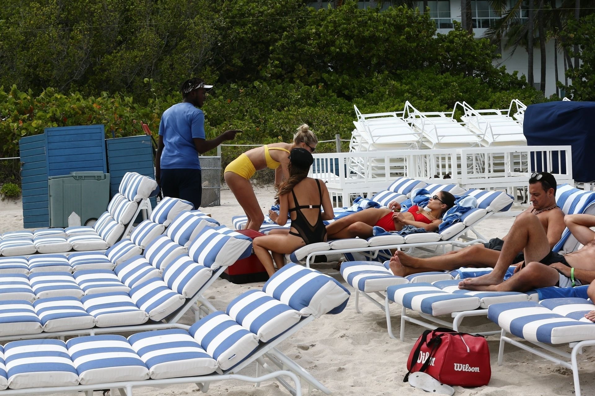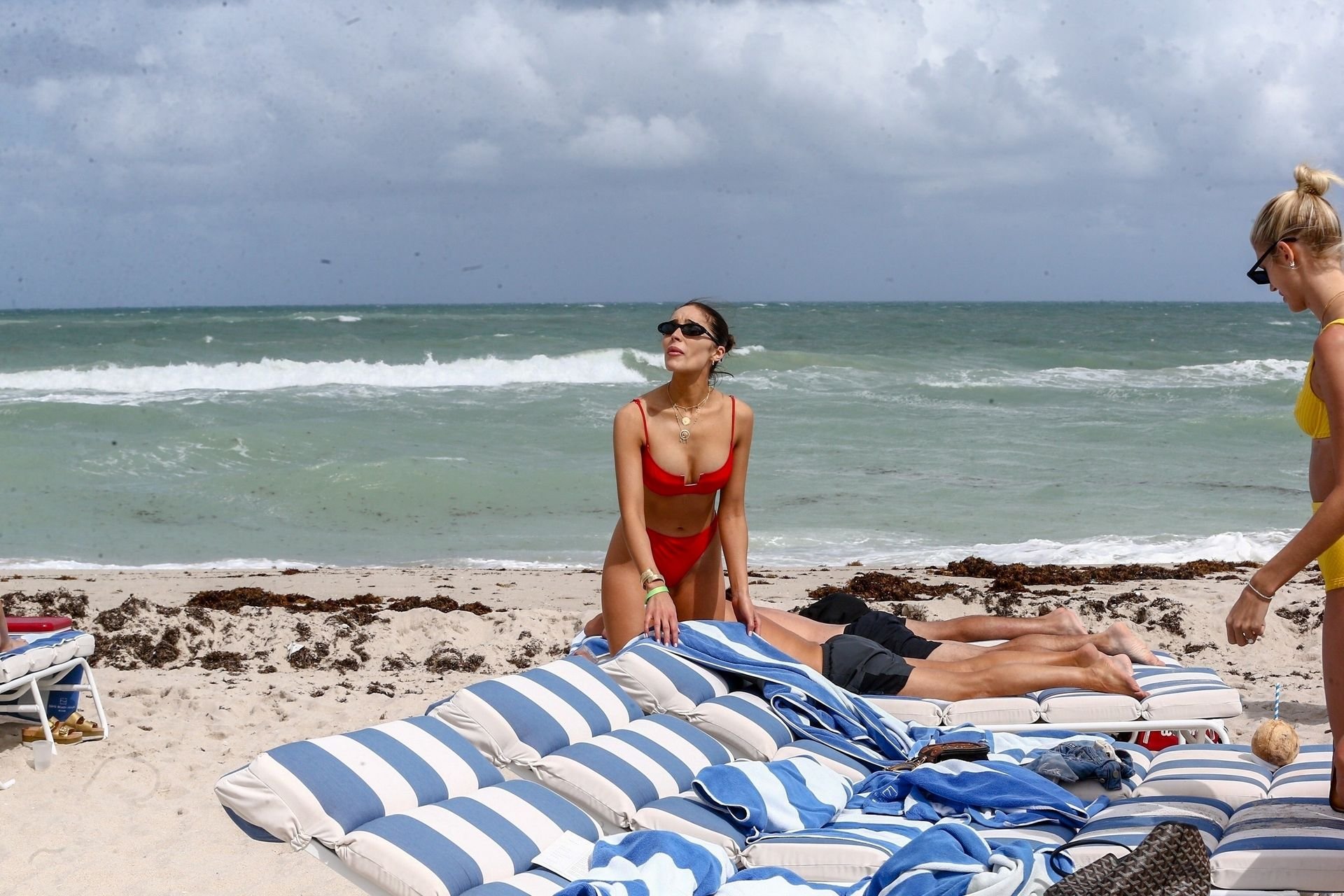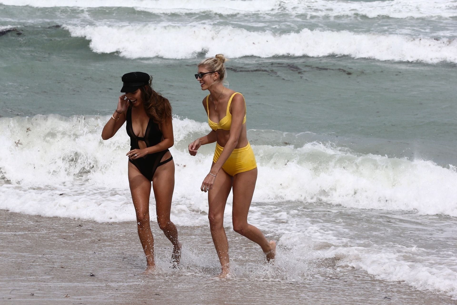 Las dos atraen bastante atención luciendo bikinis brillantes y escasos. Olivia lleva un bikini rojo de dos piezas mientras se recuesta en una silla de playa, mientras que Devon se pone un traje de baño amarillo para la diversión junto a la playa.