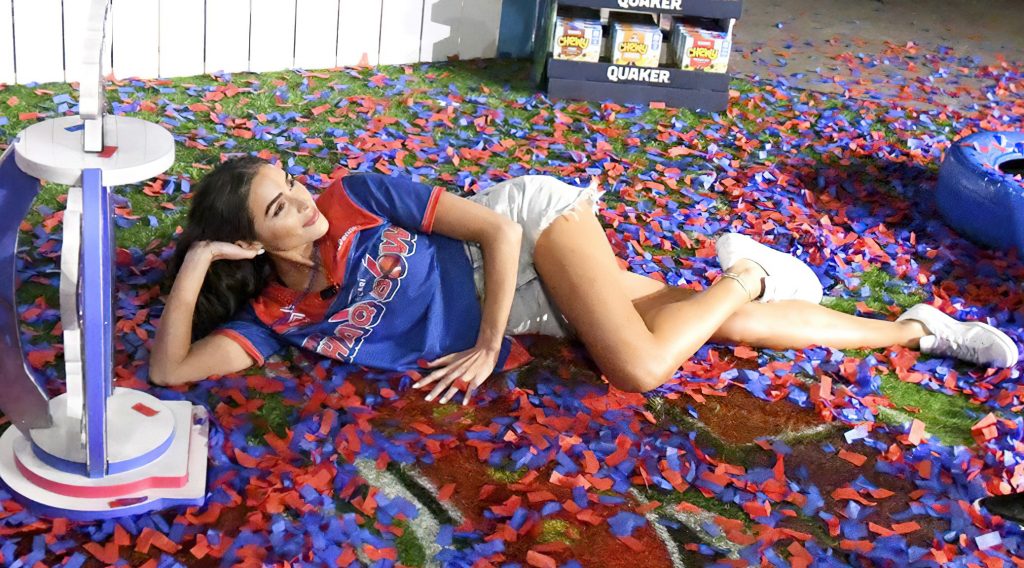 La modelo Olivia Culpo luce impresionante con shorts y equipo en The SHAQ Bowl en Tampa Bay, 07/02/2021.