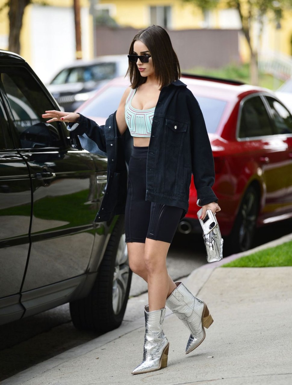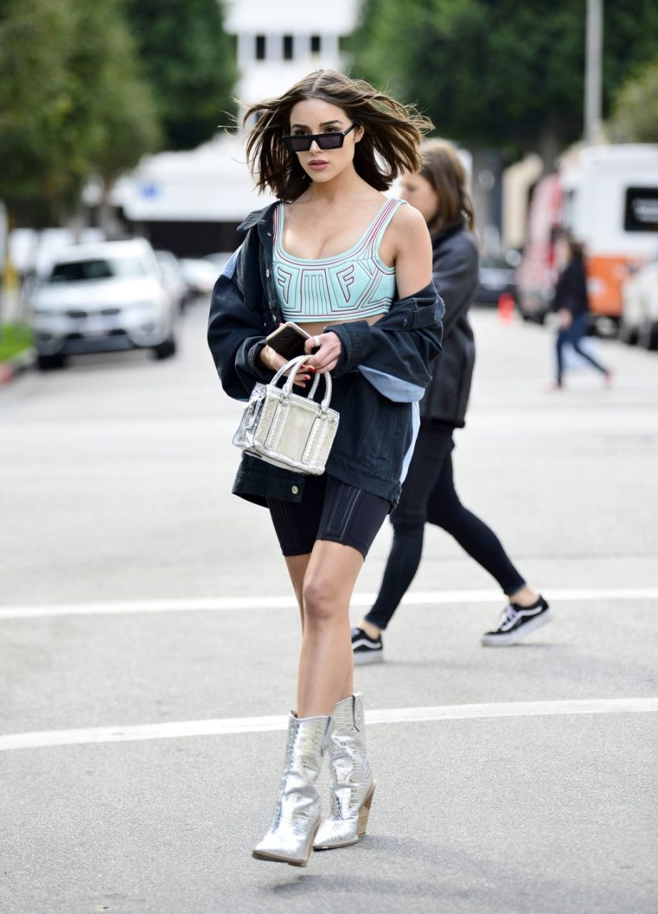 Model/modelo y actriz Olivia Culpo exhibe su gran escote y piernas sexys durante un paseo de compras con amigas en Beverly Hills, 01/02/2019.
