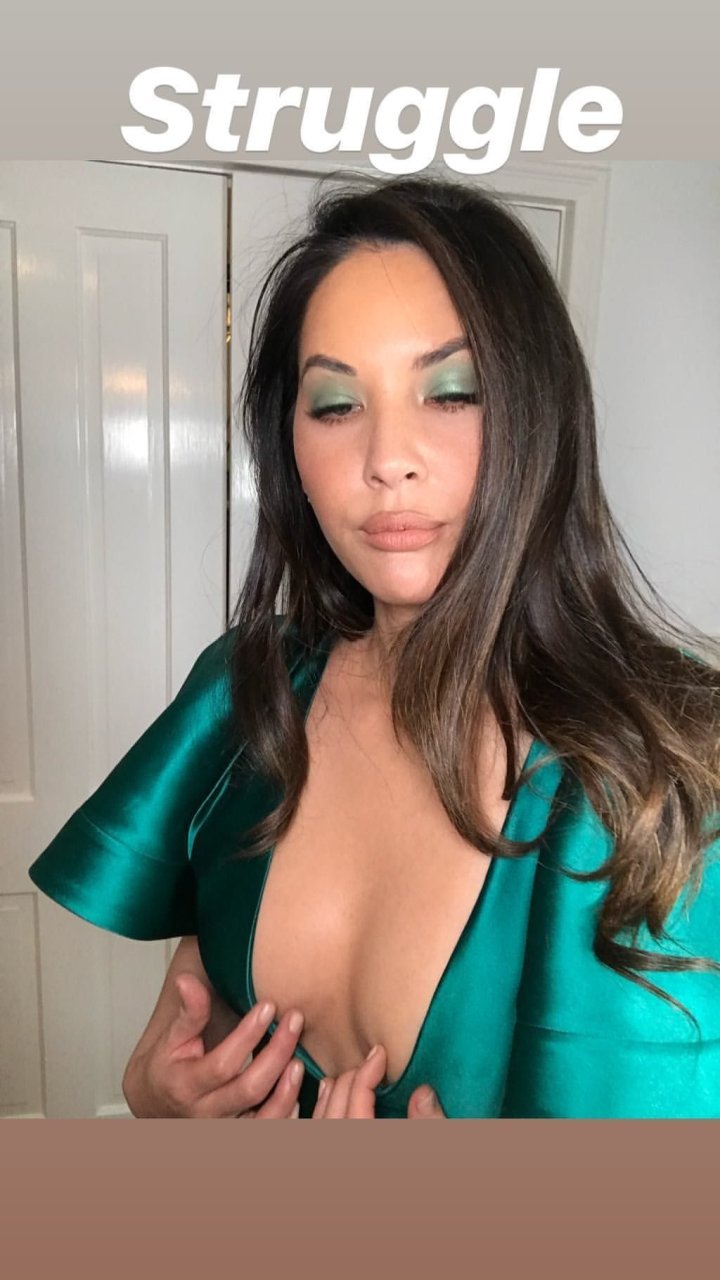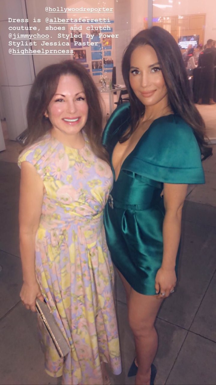 La actriz Olivia Munn lleva un vestido corto verde con escote pronunciado en la fiesta de Hollywood Reporter en Avra en Beverly Hills, 12/03/2019.