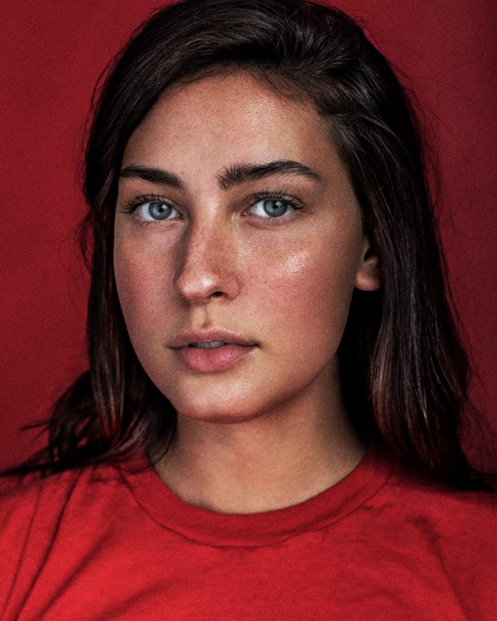 La modelo estadounidense Olivia Norella mostró sus curvas en una sesión de fotos en tonos rojos por Cory Vanderploeg (2018).