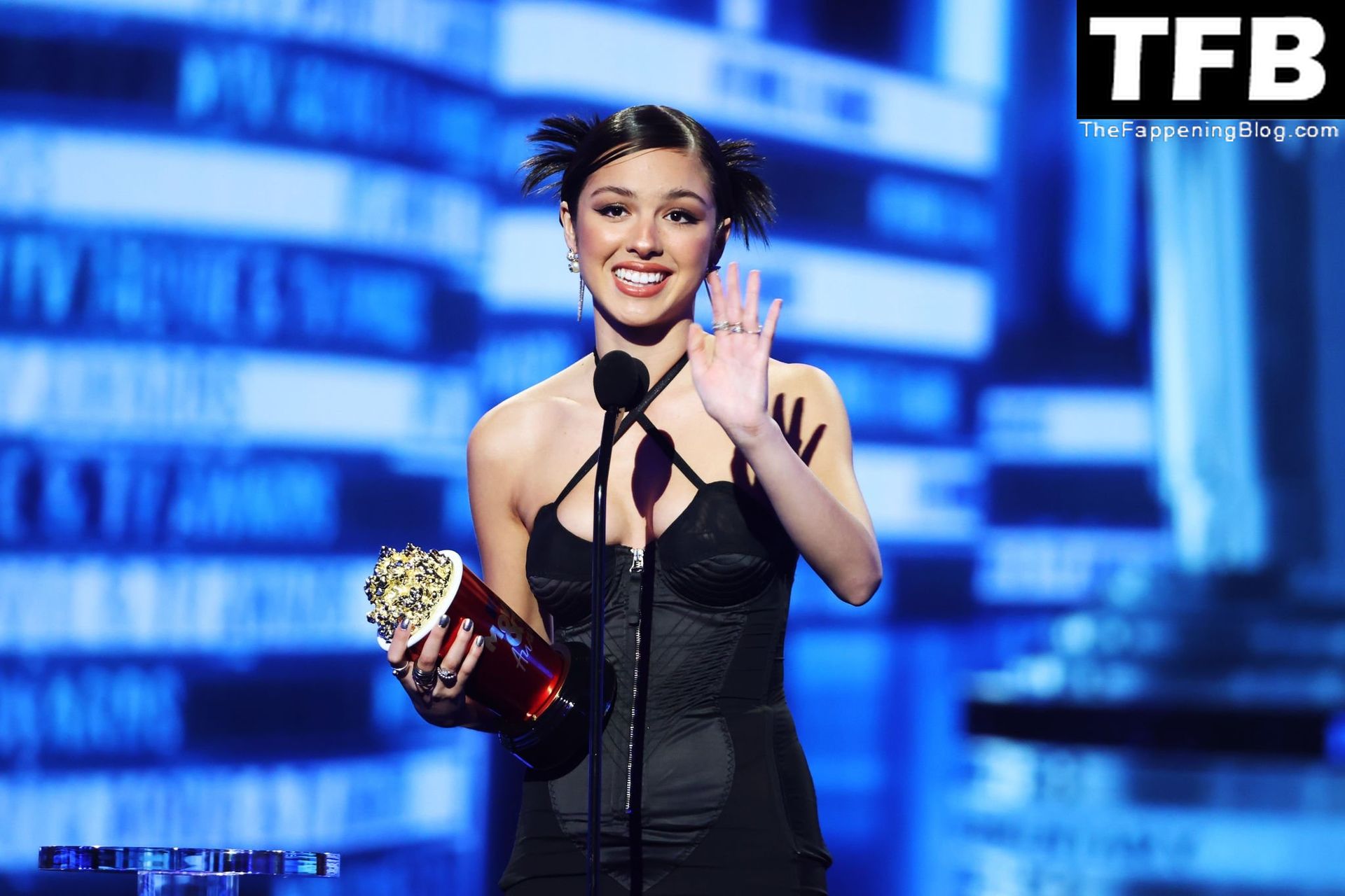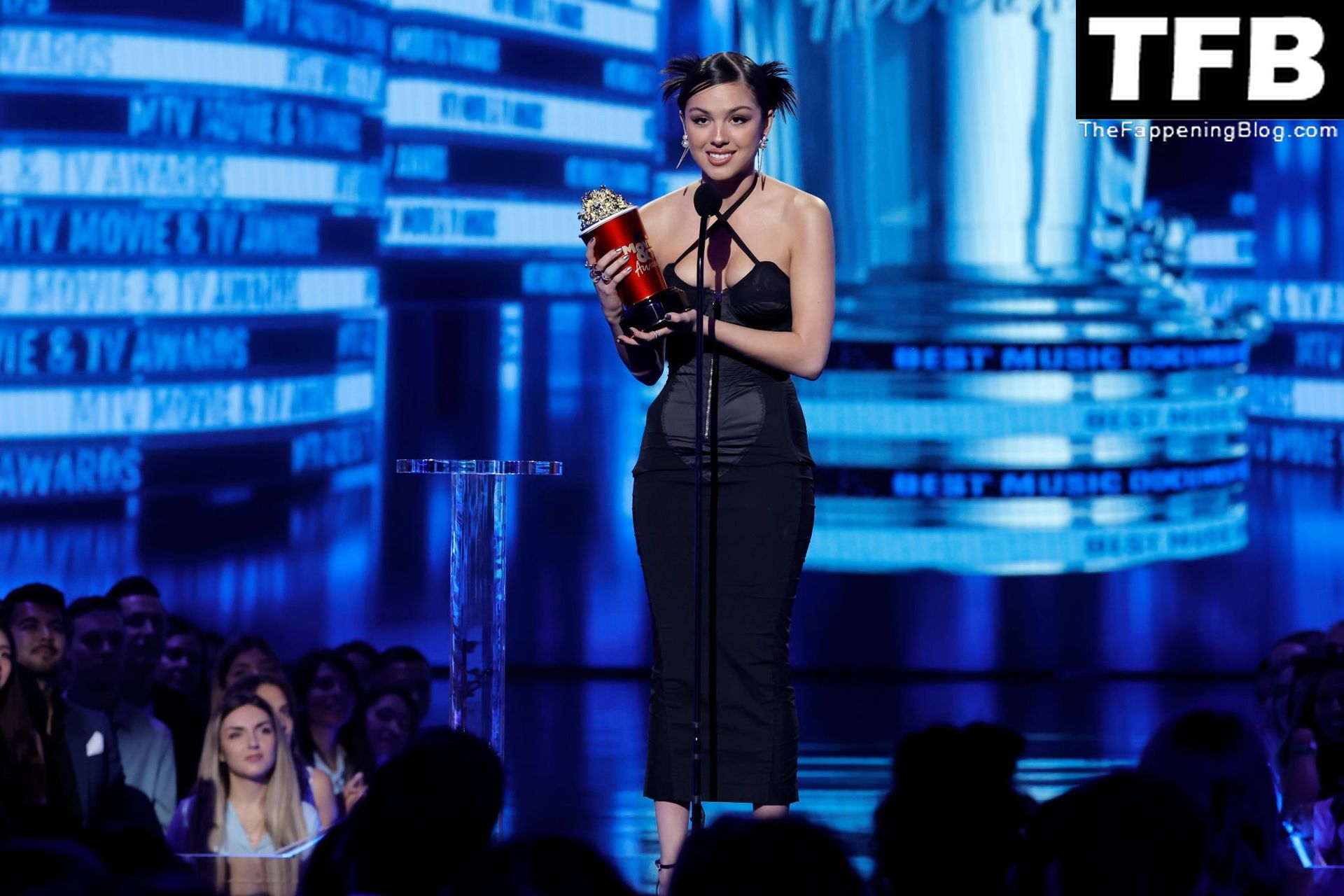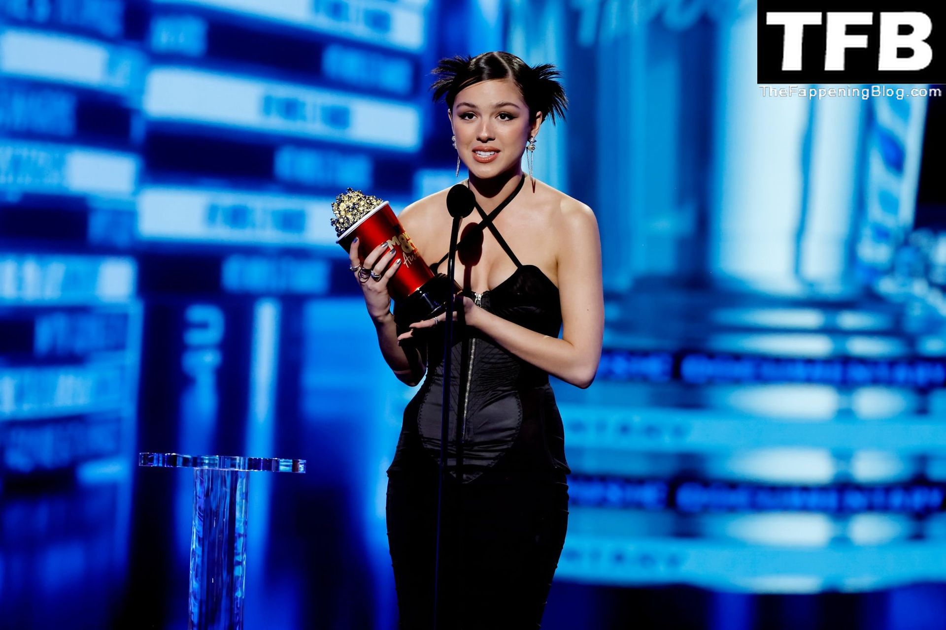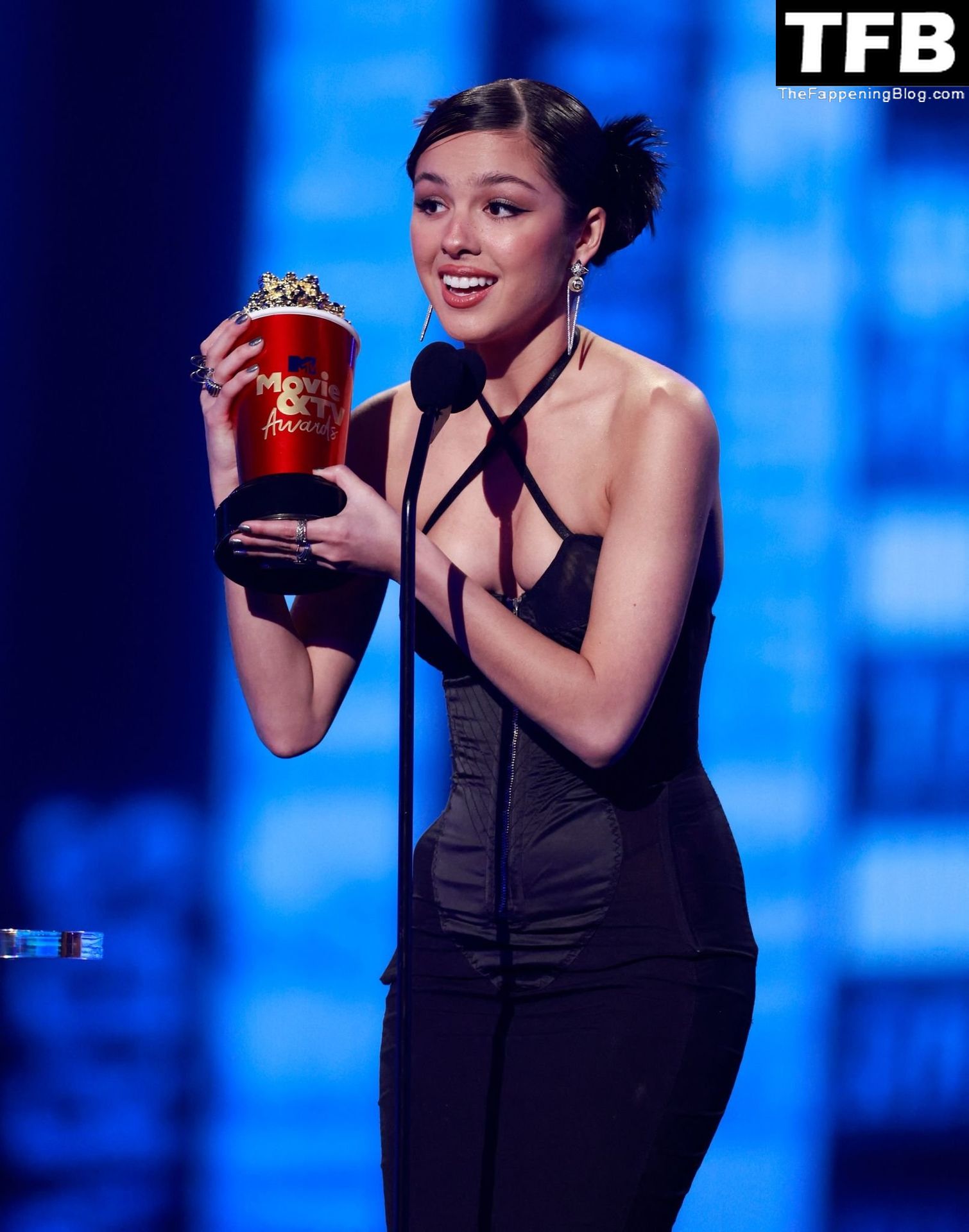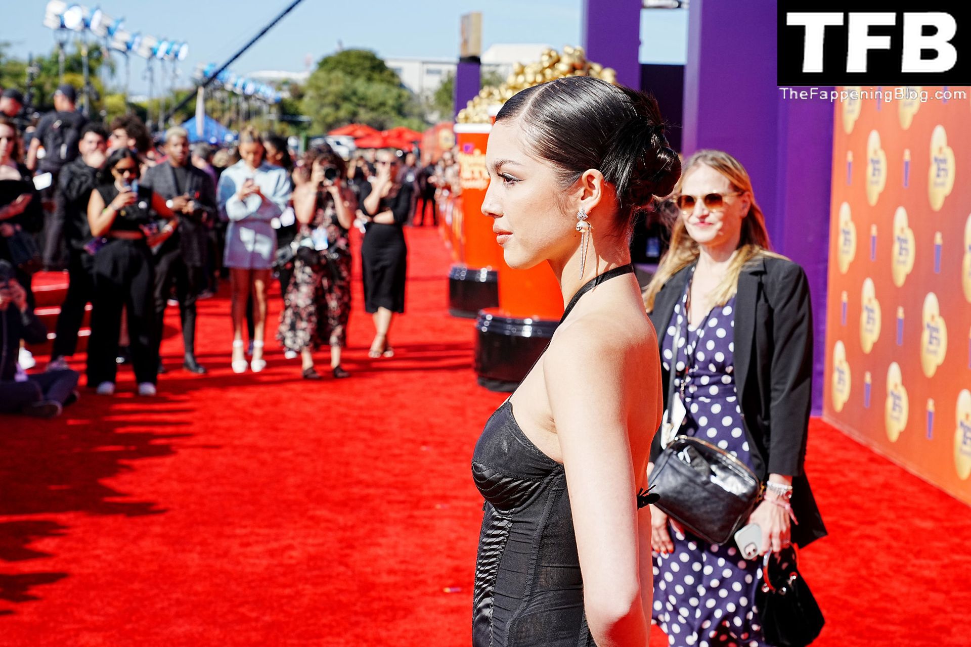 La cantante/actriz estadounidense Olivia Rodrigo aparece en la alfombra roja de los MTV Movie & TV Awards en The Barker Hangar en Santa Mónica, 05/06/2022.