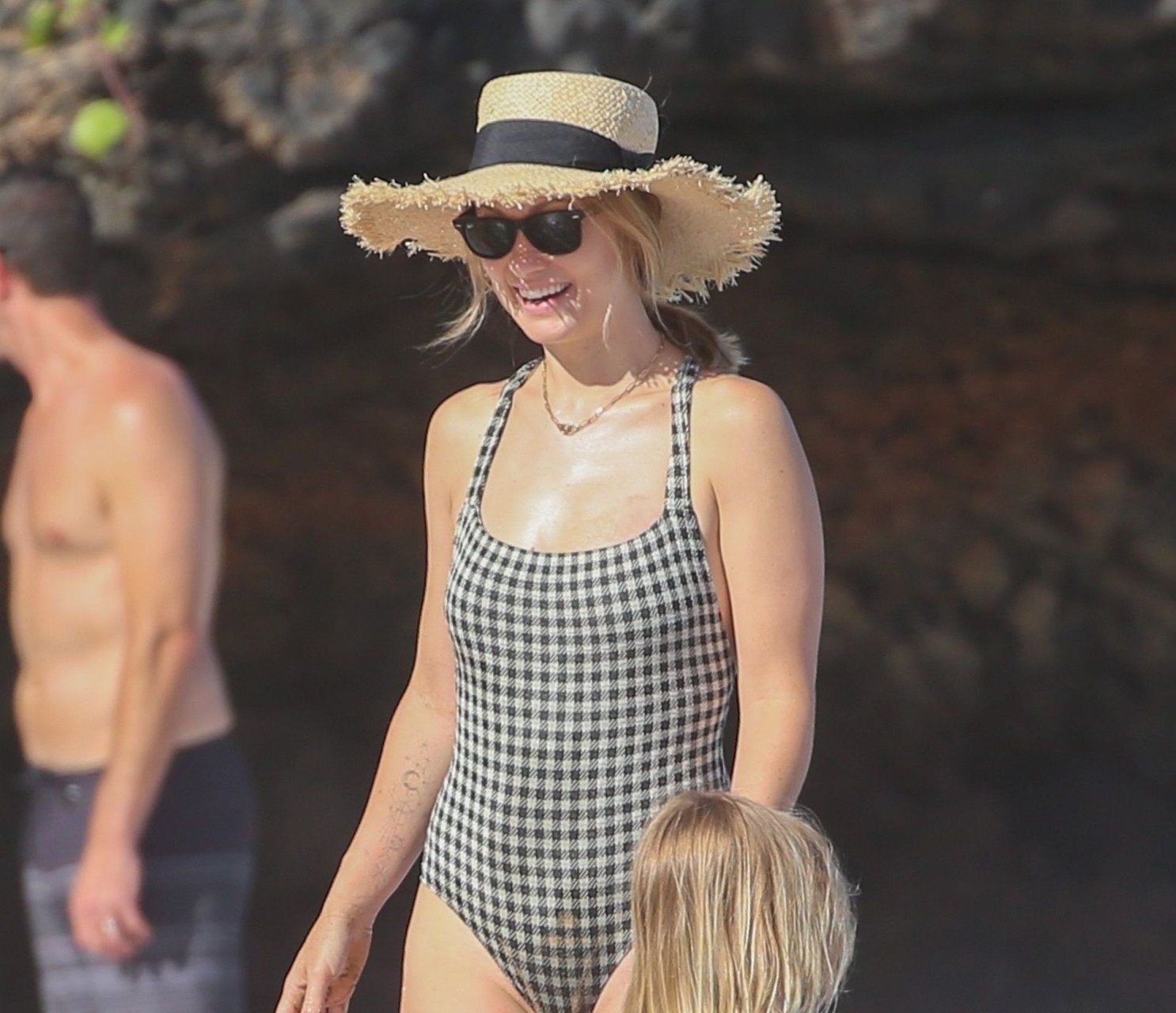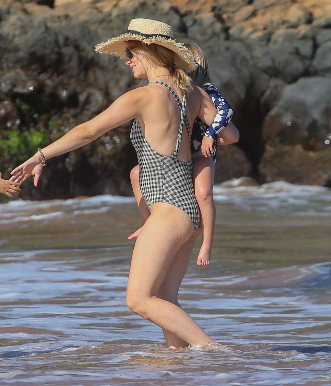 Olivia Wilde luce un traje de una pieza en la playa con sus hijos en Hawái, 16/06/2019. La actriz fue vista en la playa de la Isla de Maui.