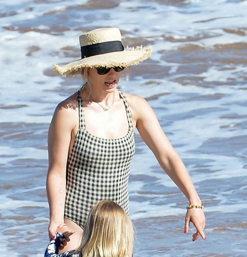 La madre de dos estuvo muy involucrada y hizo que ser mamá pareciera fácil mientras los agarraba a ambos y los llevaba al agua turquesa tropical.