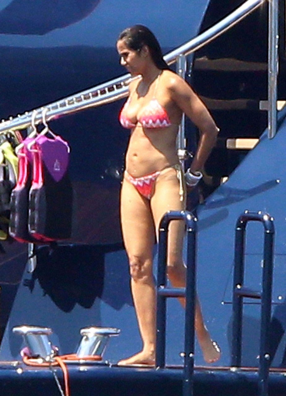 Padma Lakshmi (47) se veía espectacular mostrando su cuerpo tonificado y su figura esbelta con un pequeño bikini durante sus vacaciones en Capri, 01/08/2018.