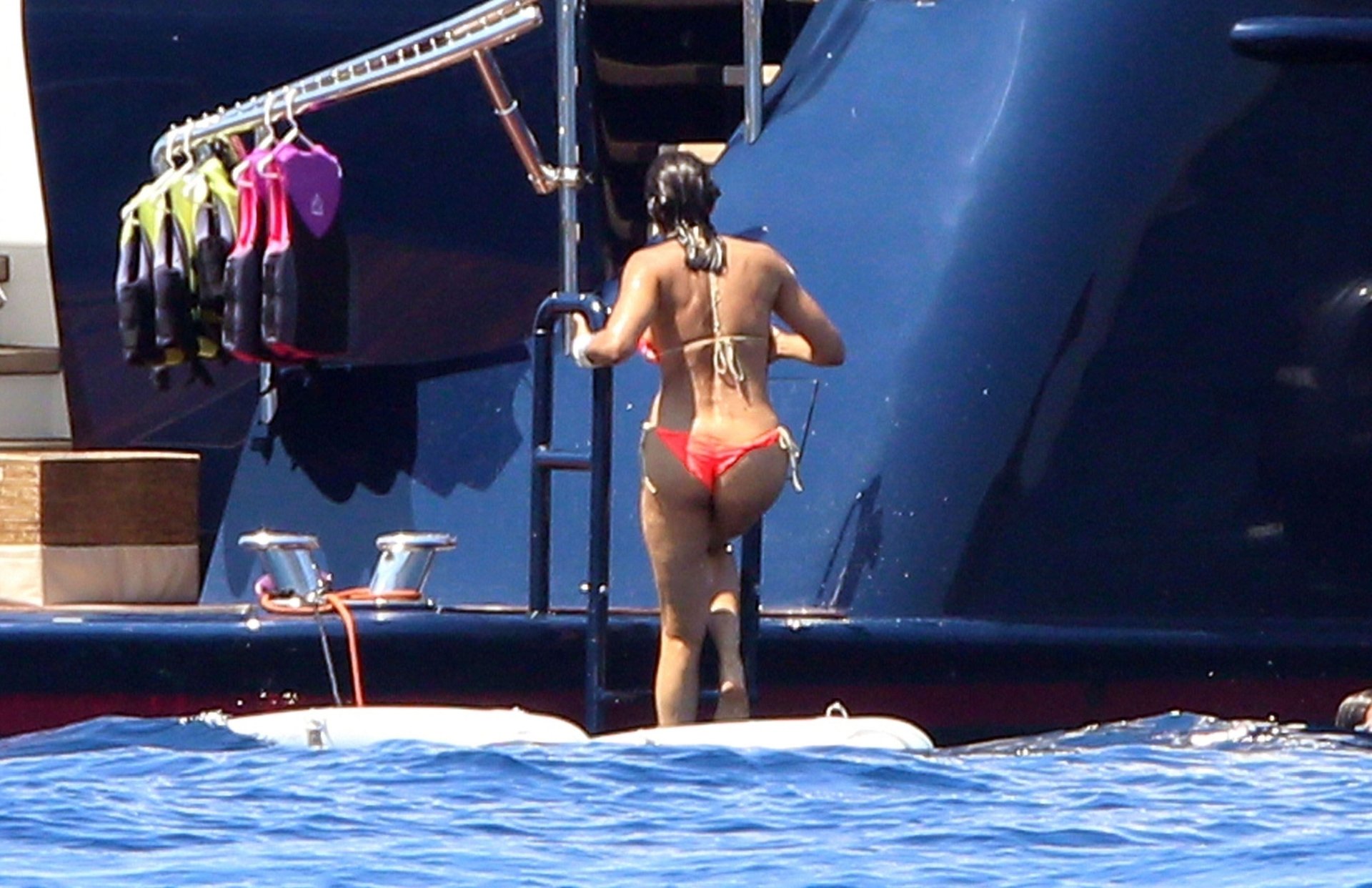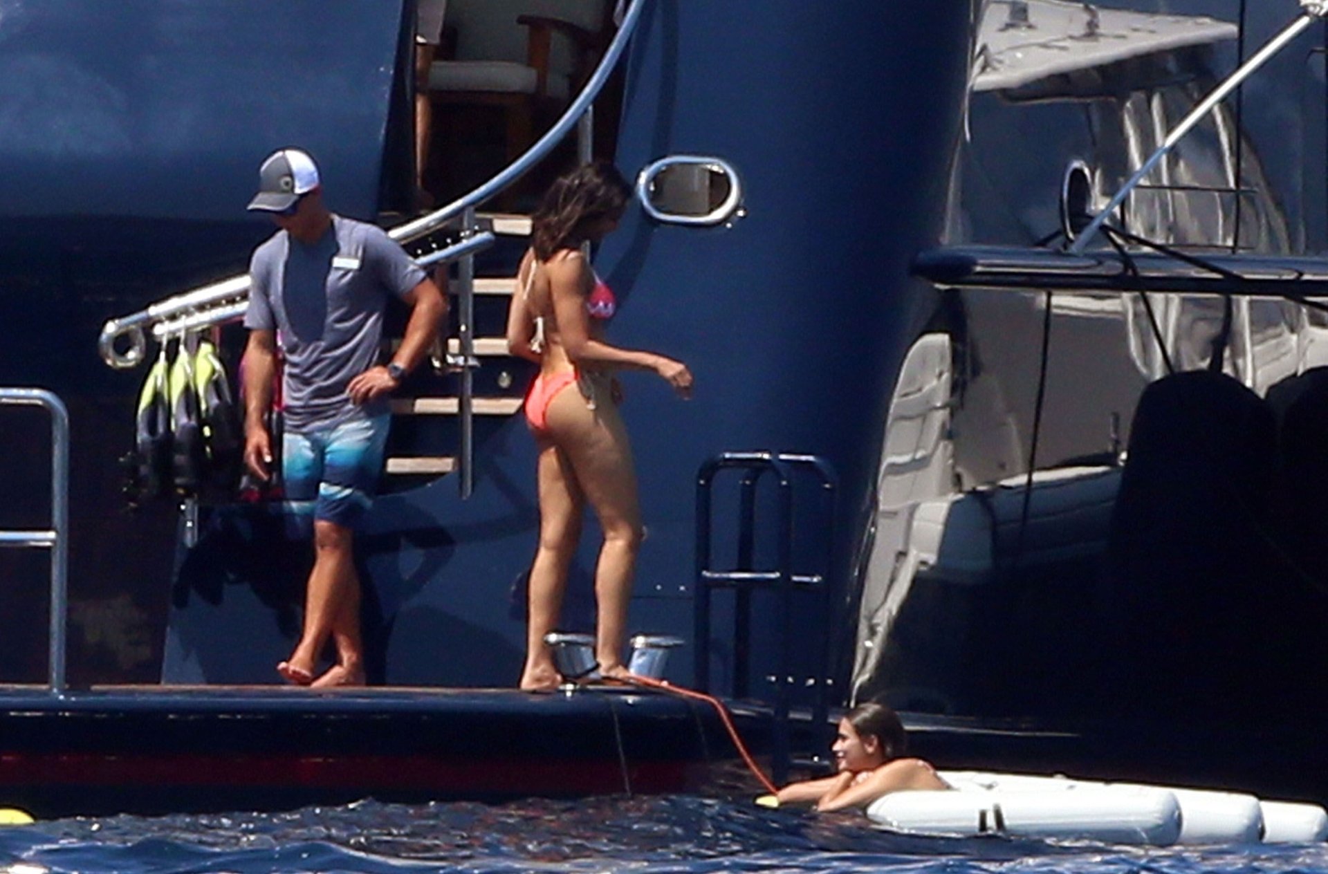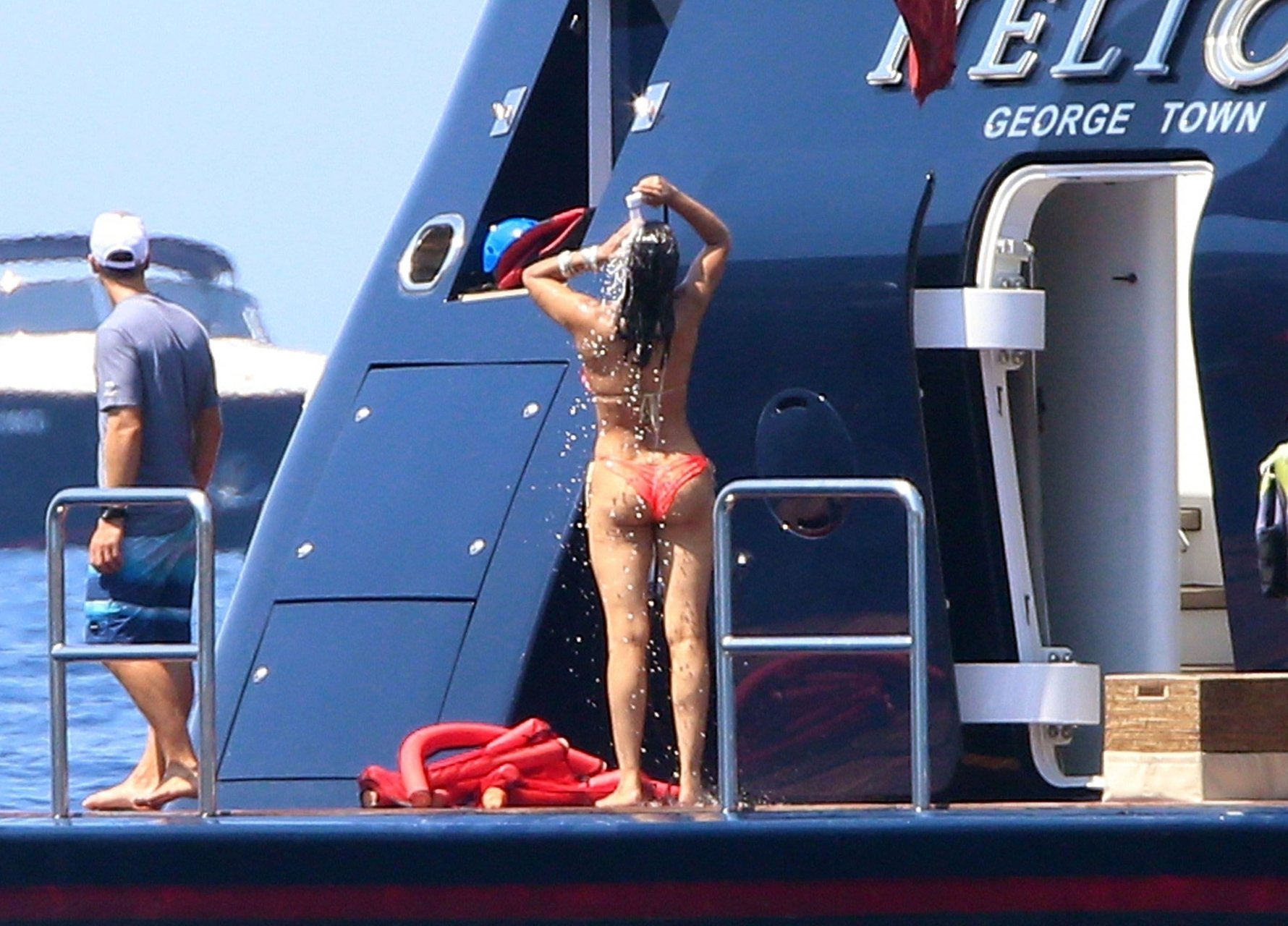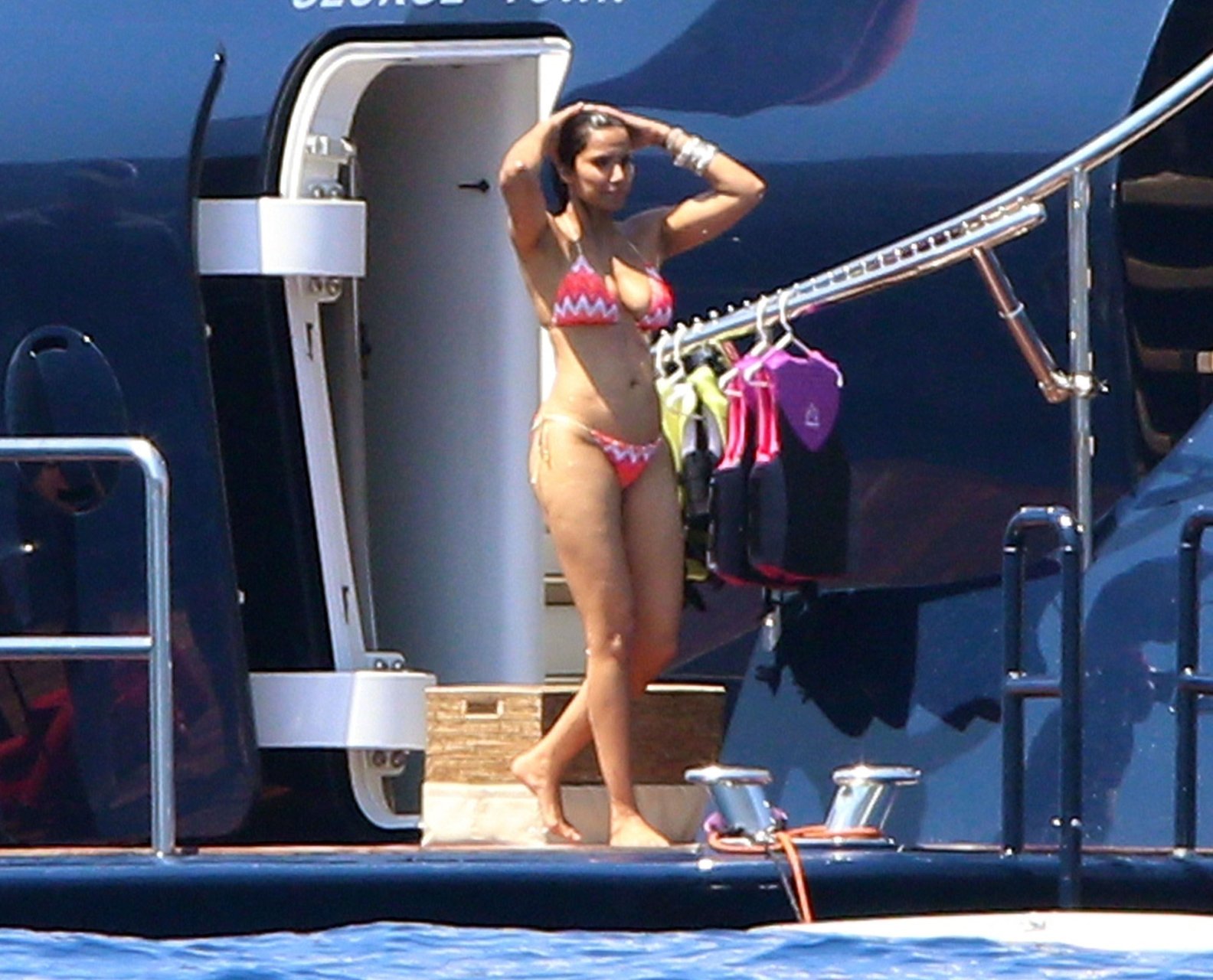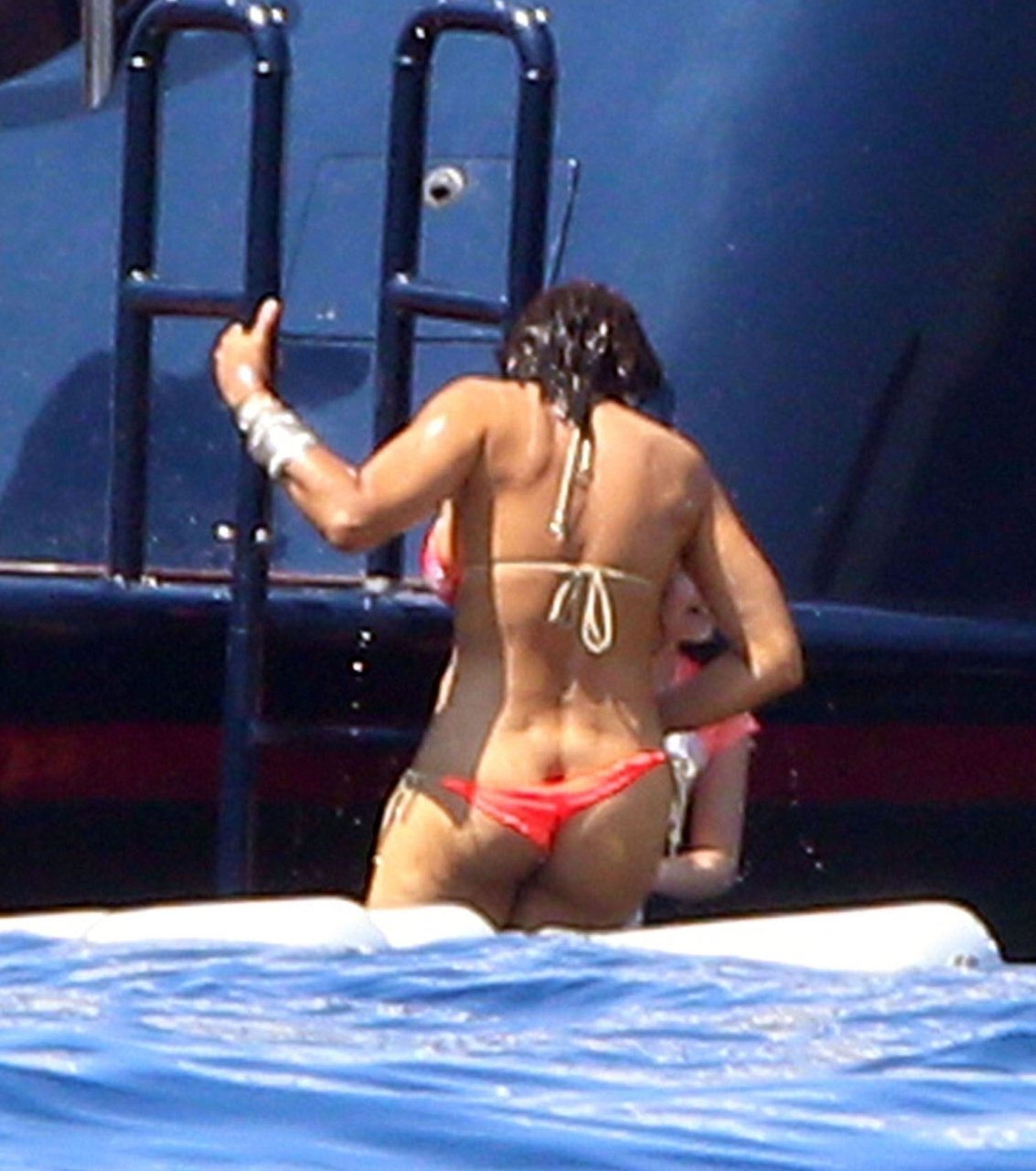 La ex esposa del controvertido autor Salman Rushdie estaba sonriendo en su lujoso yate mientras se daba un baño en el cálido mar con su pareja Adam Dell.