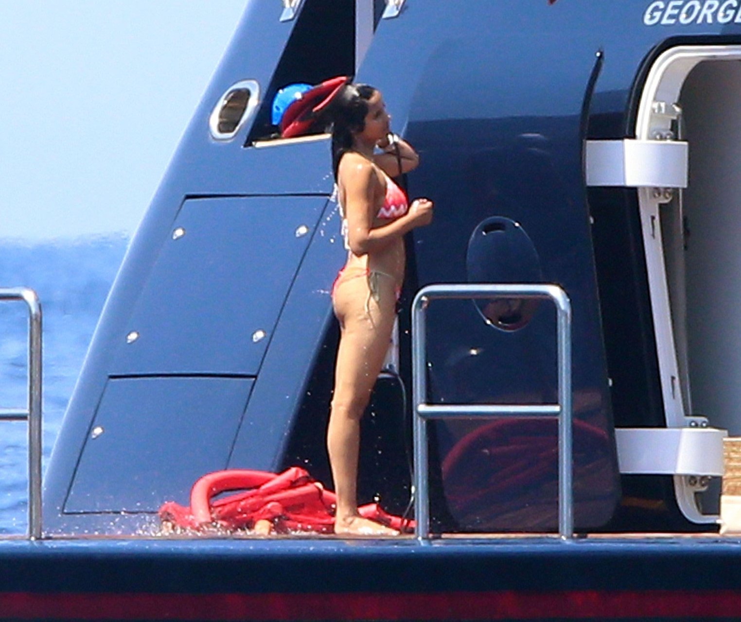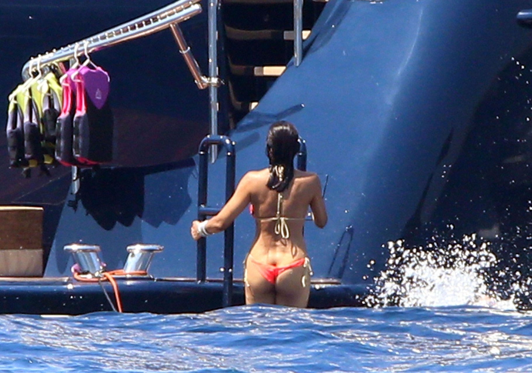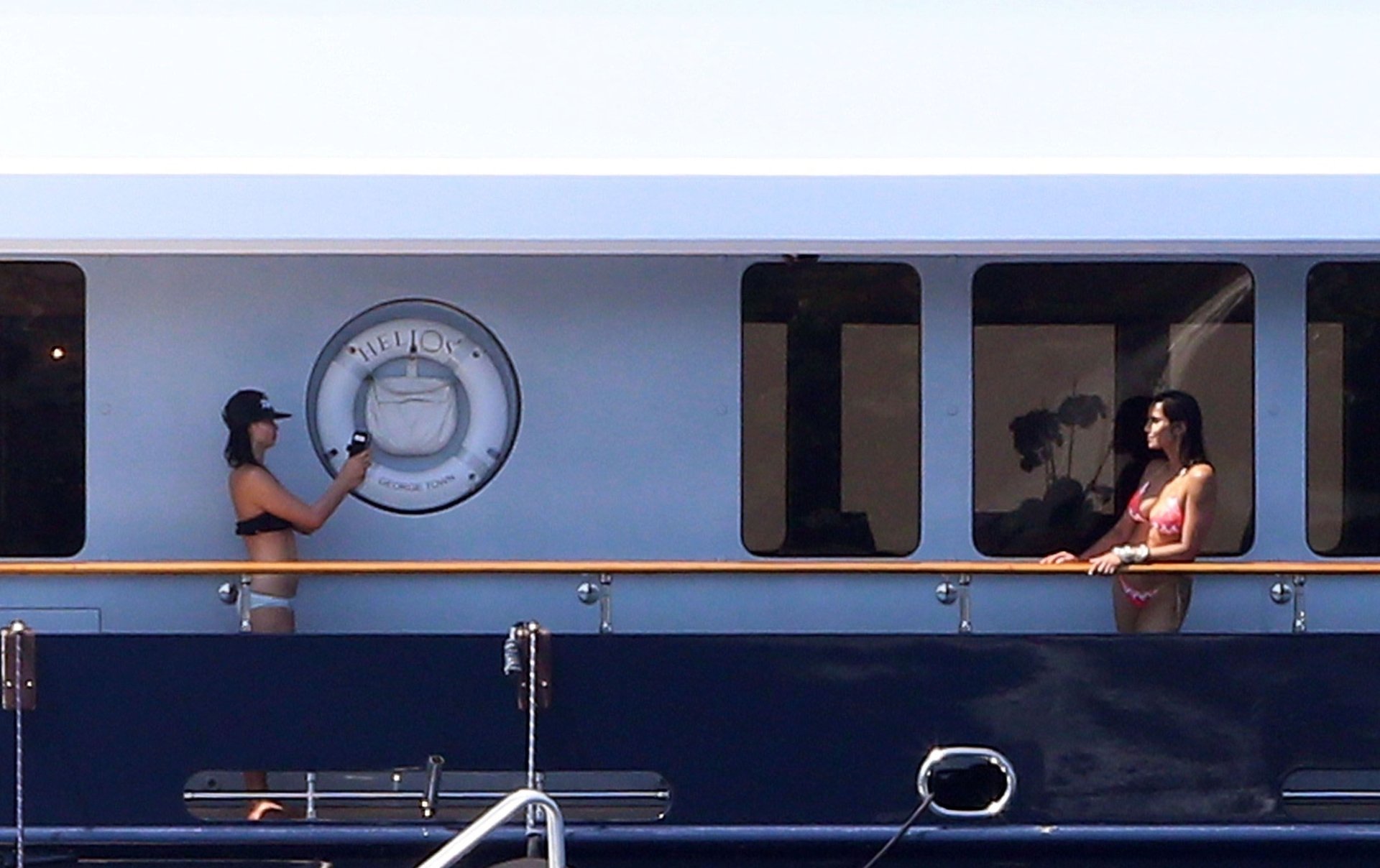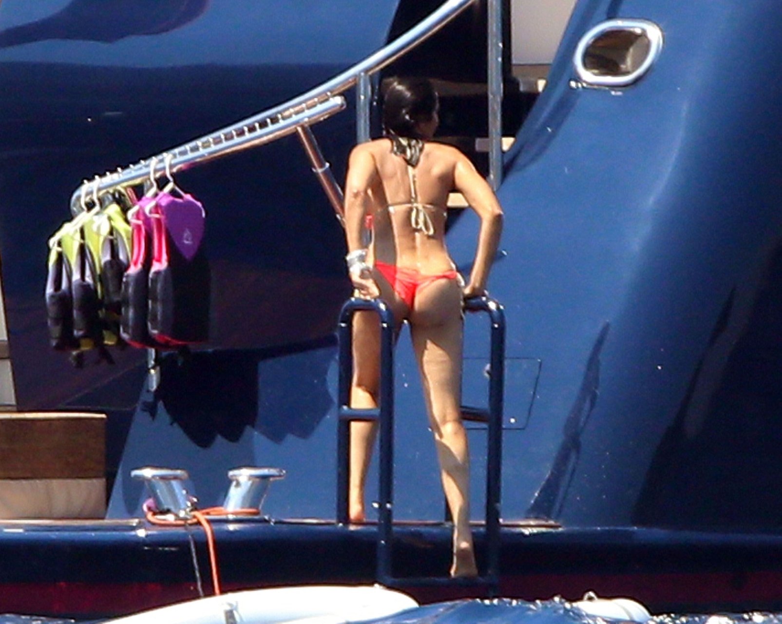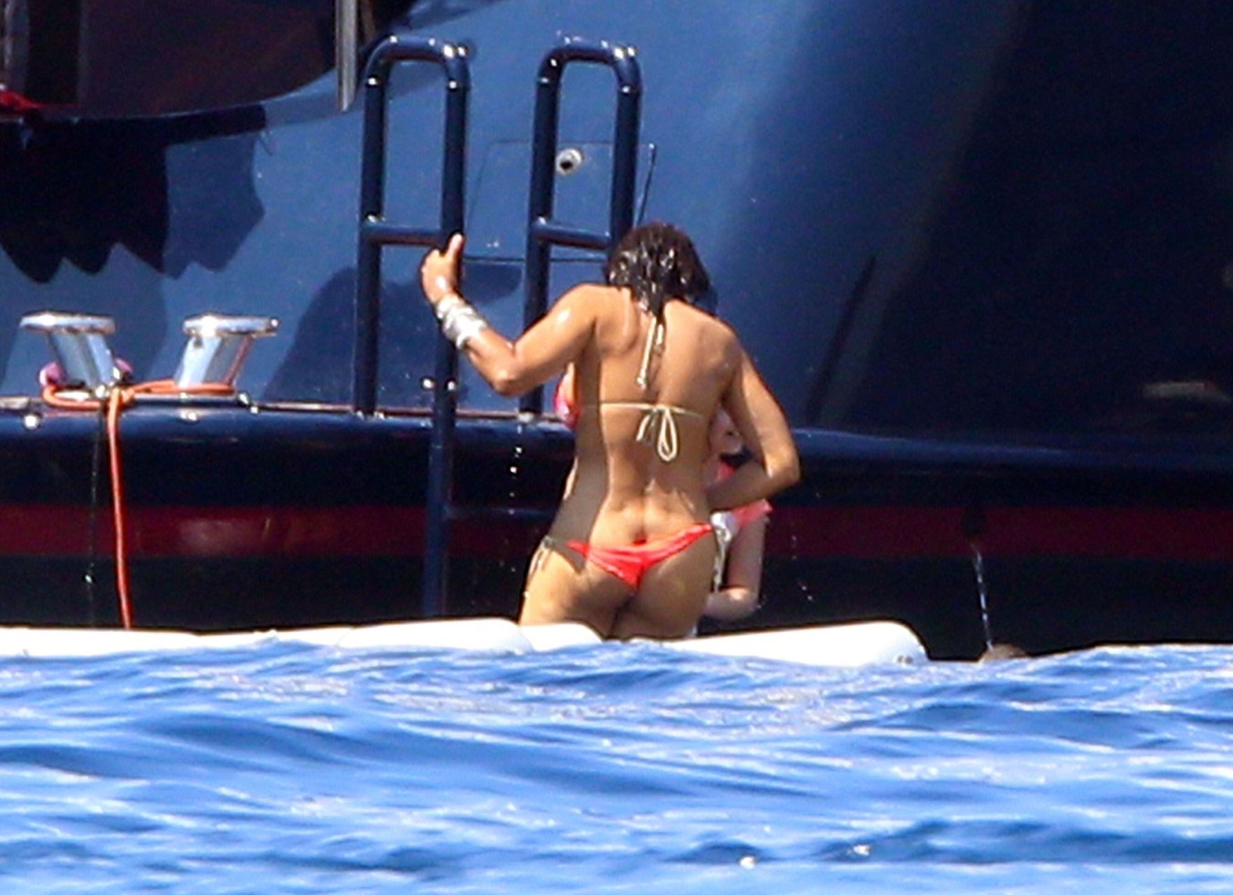 La ex esposa del controvertido autor Salman Rushdie estaba sonriendo en su lujoso yate mientras se daba un baño en el cálido mar con su pareja Adam Dell.