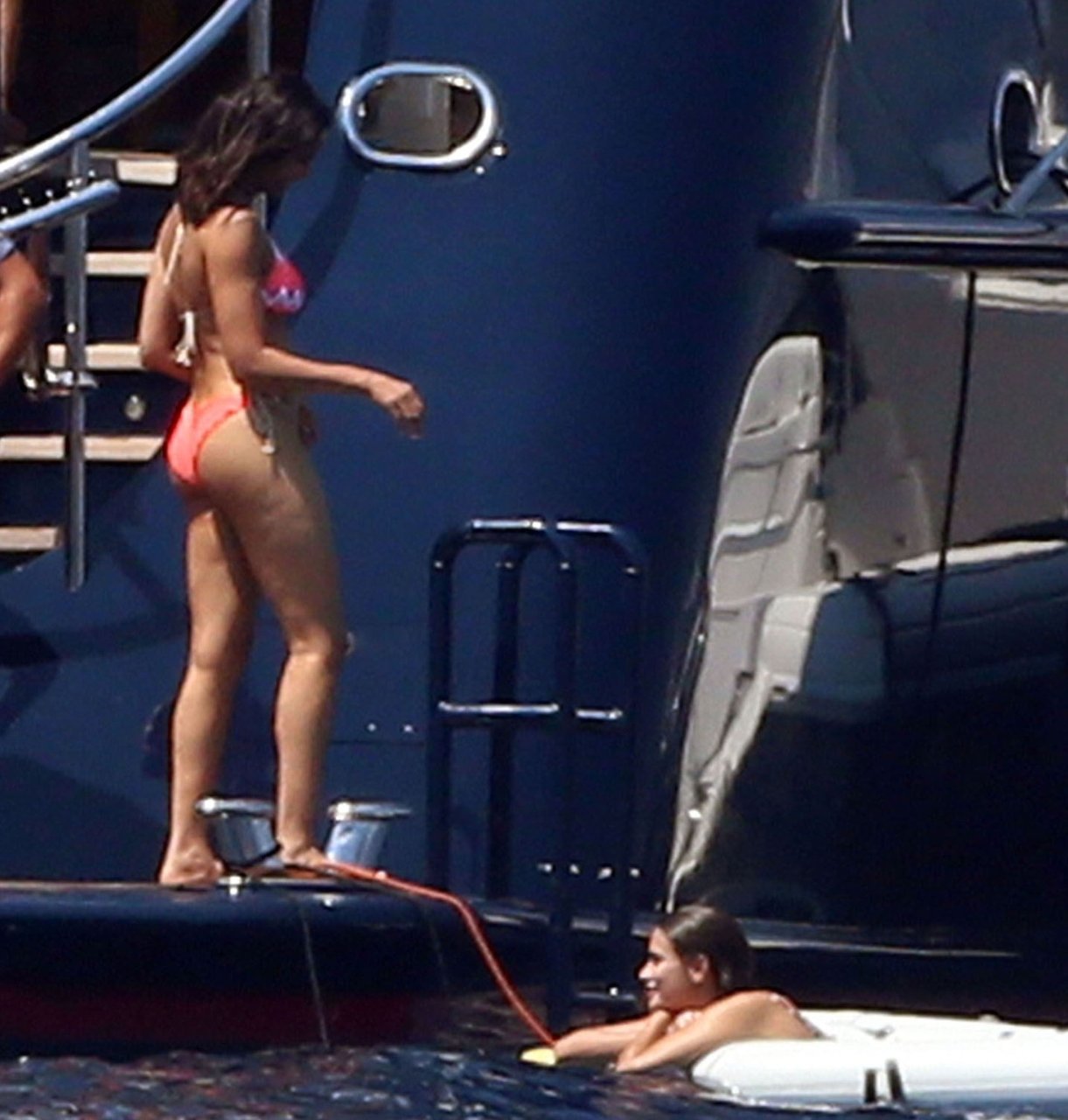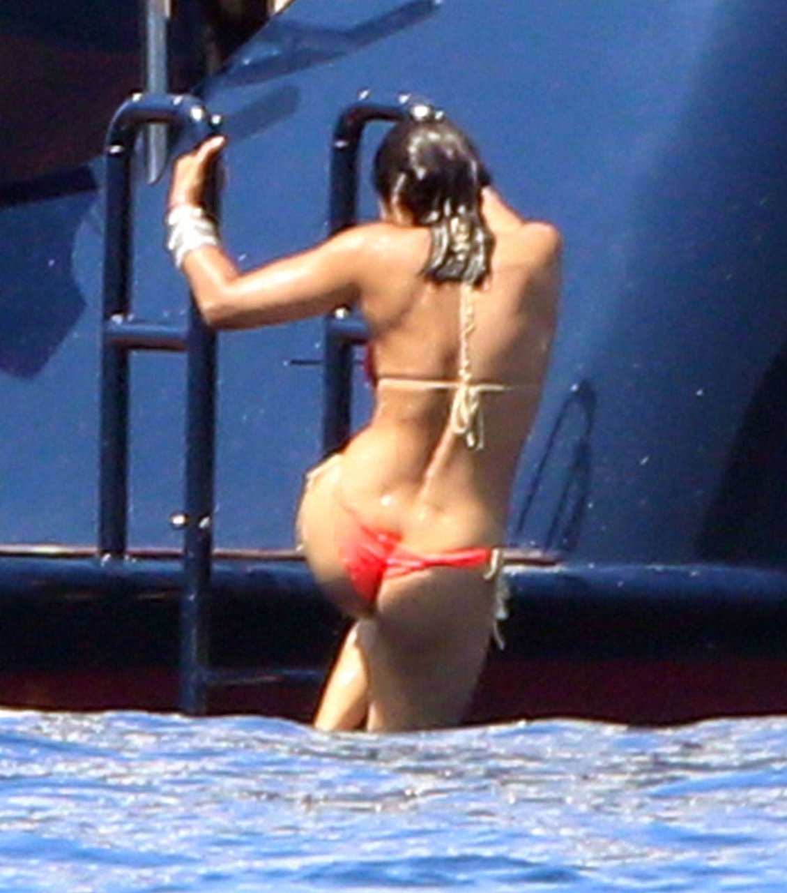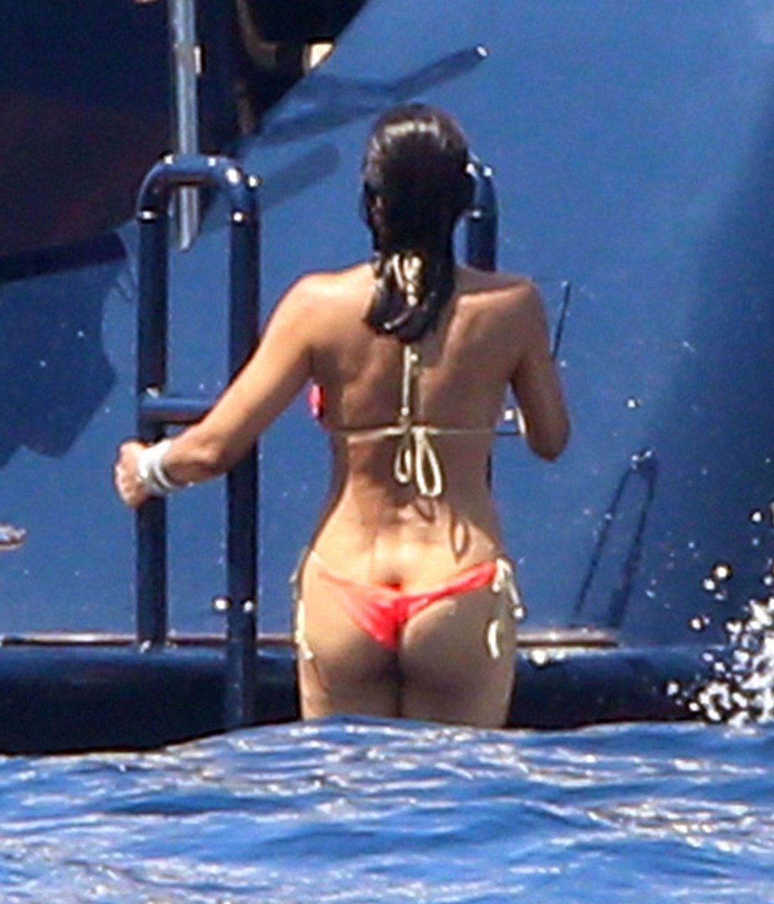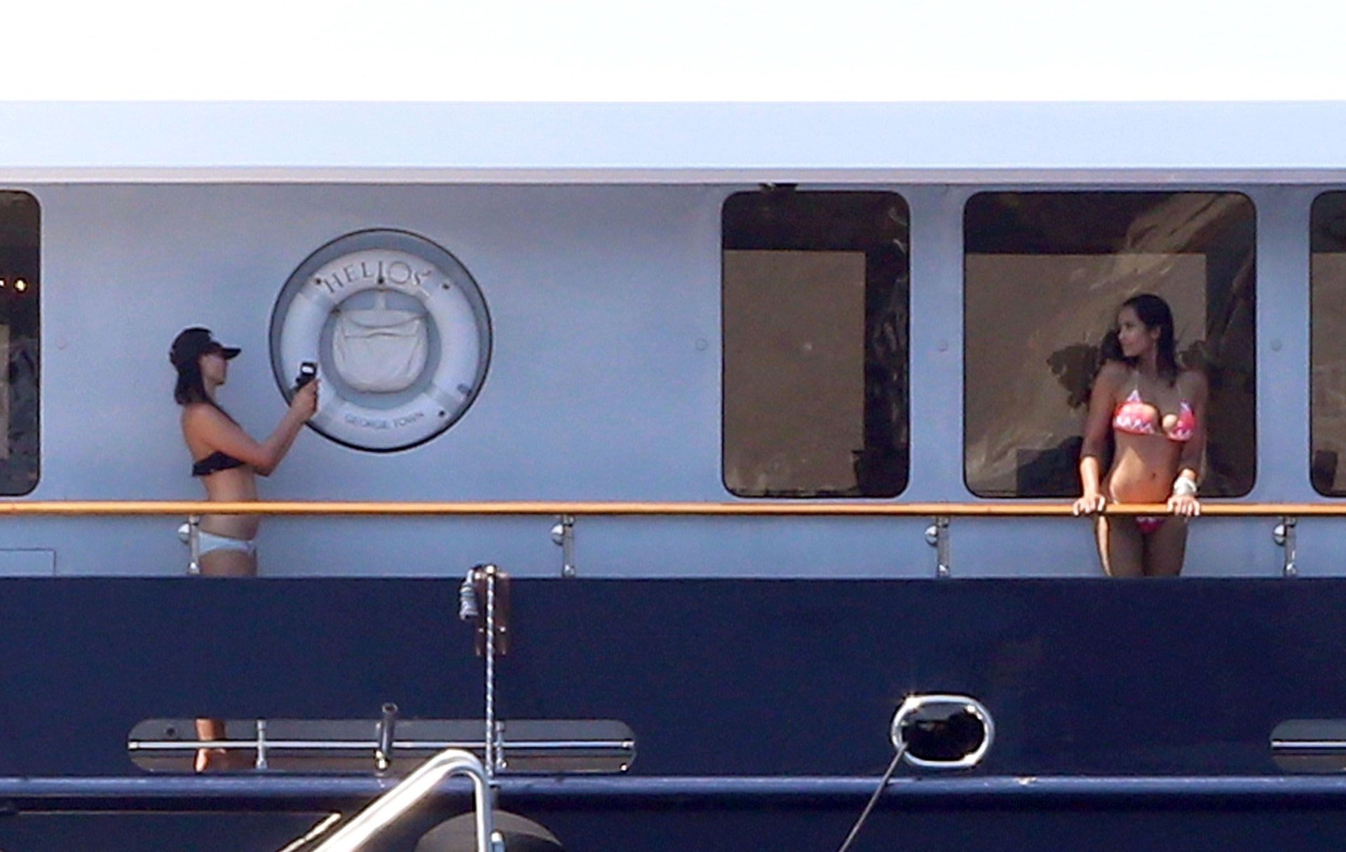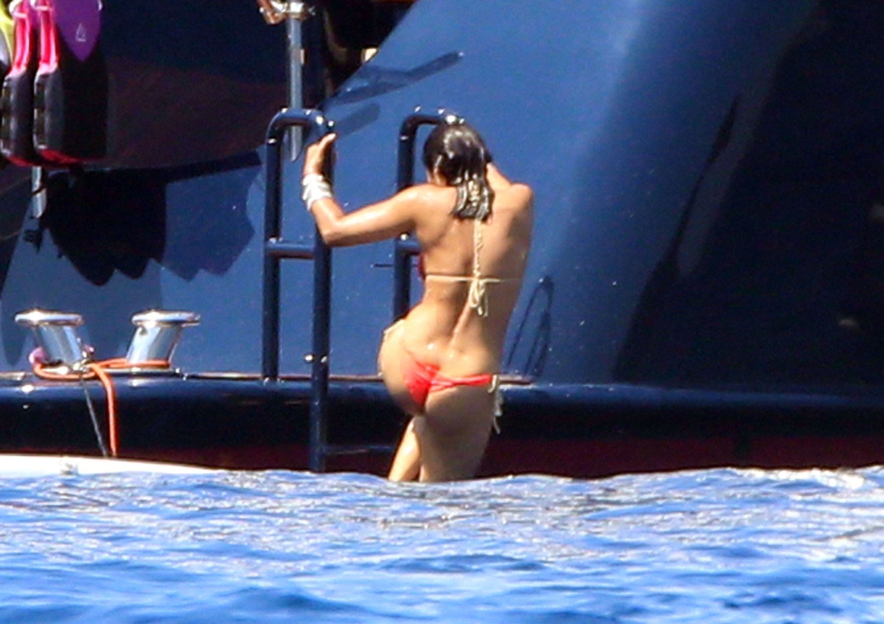 La ex esposa del controvertido autor Salman Rushdie estaba sonriendo en su lujoso yate mientras se daba un baño en el cálido mar con su pareja Adam Dell.