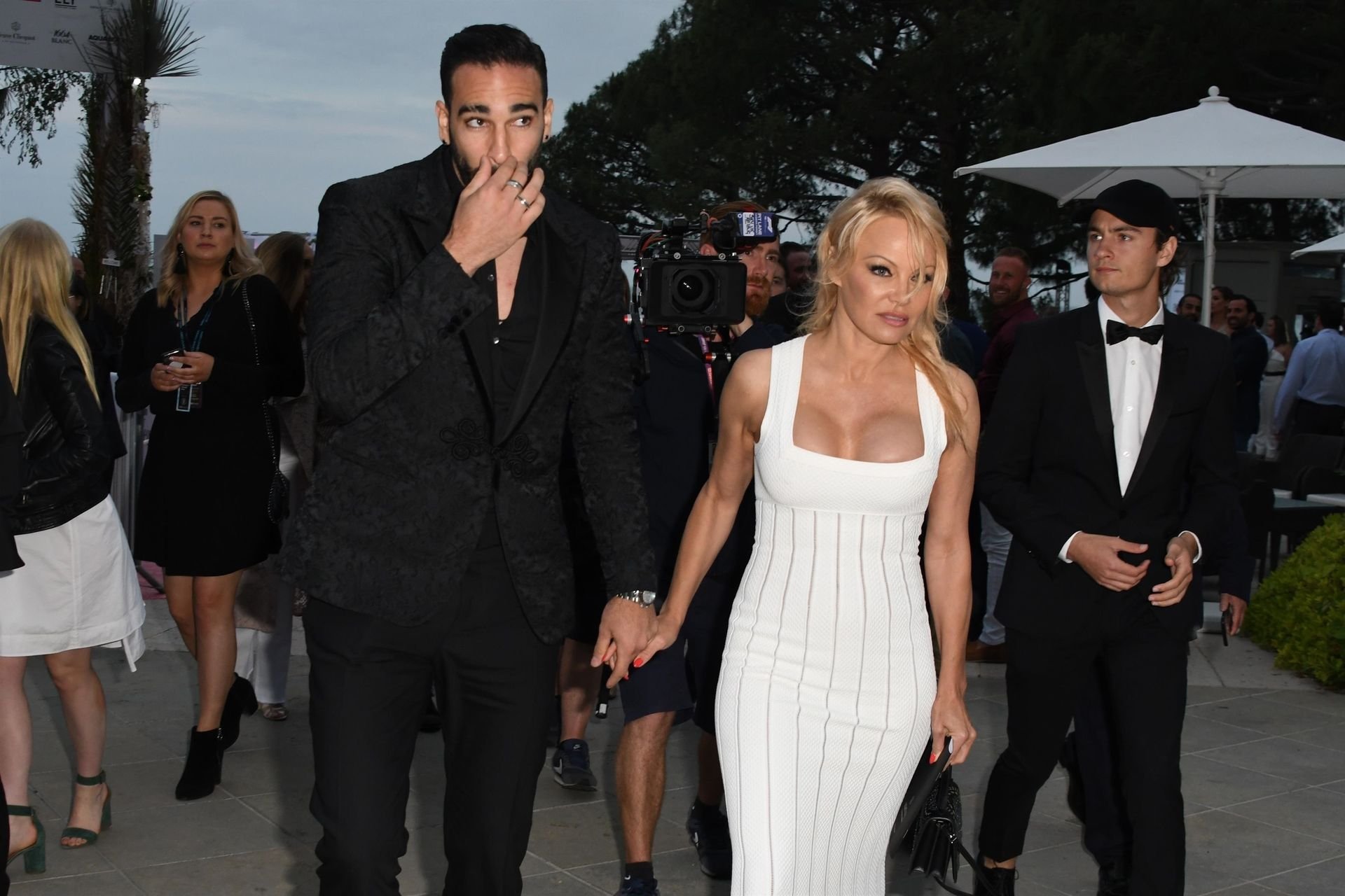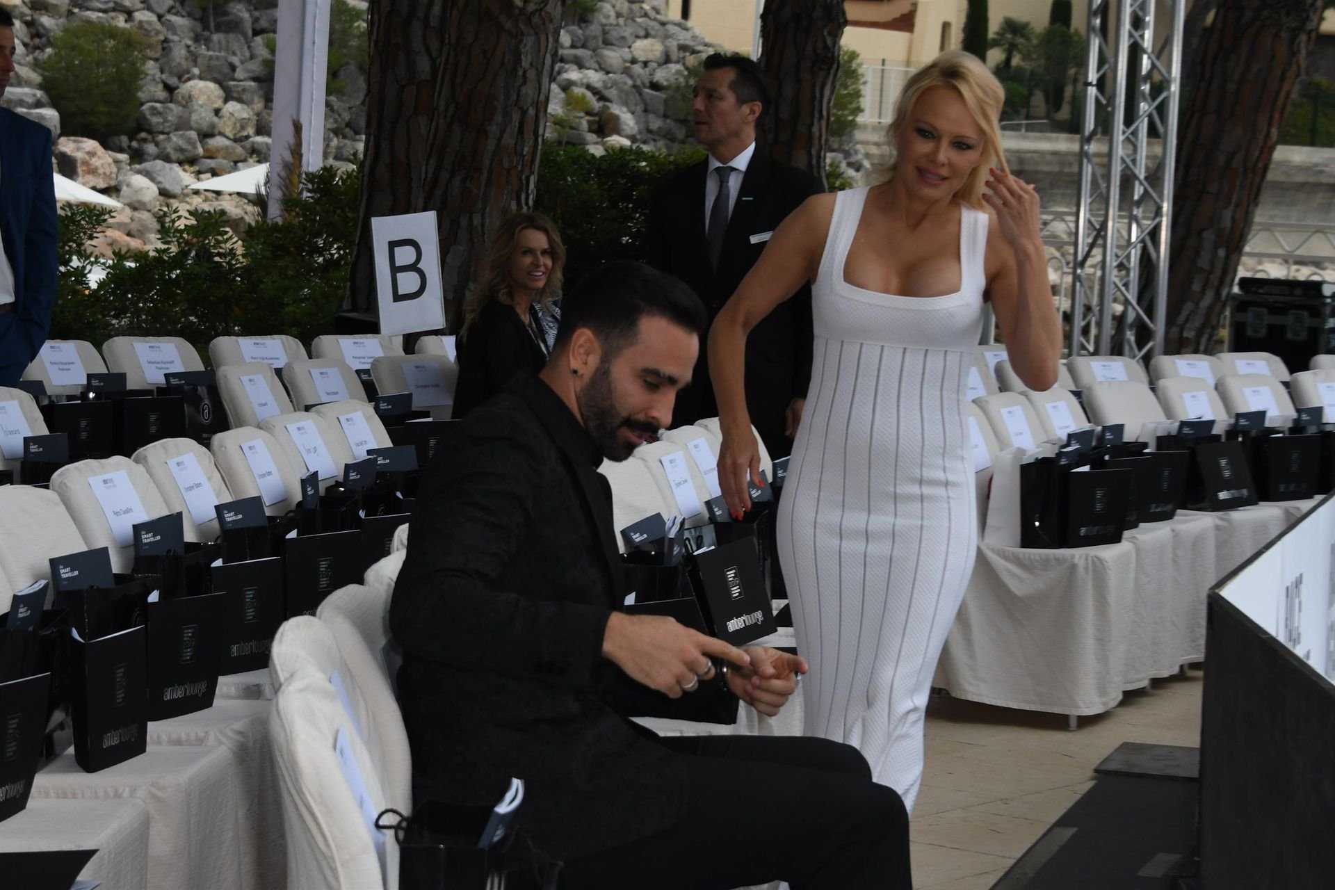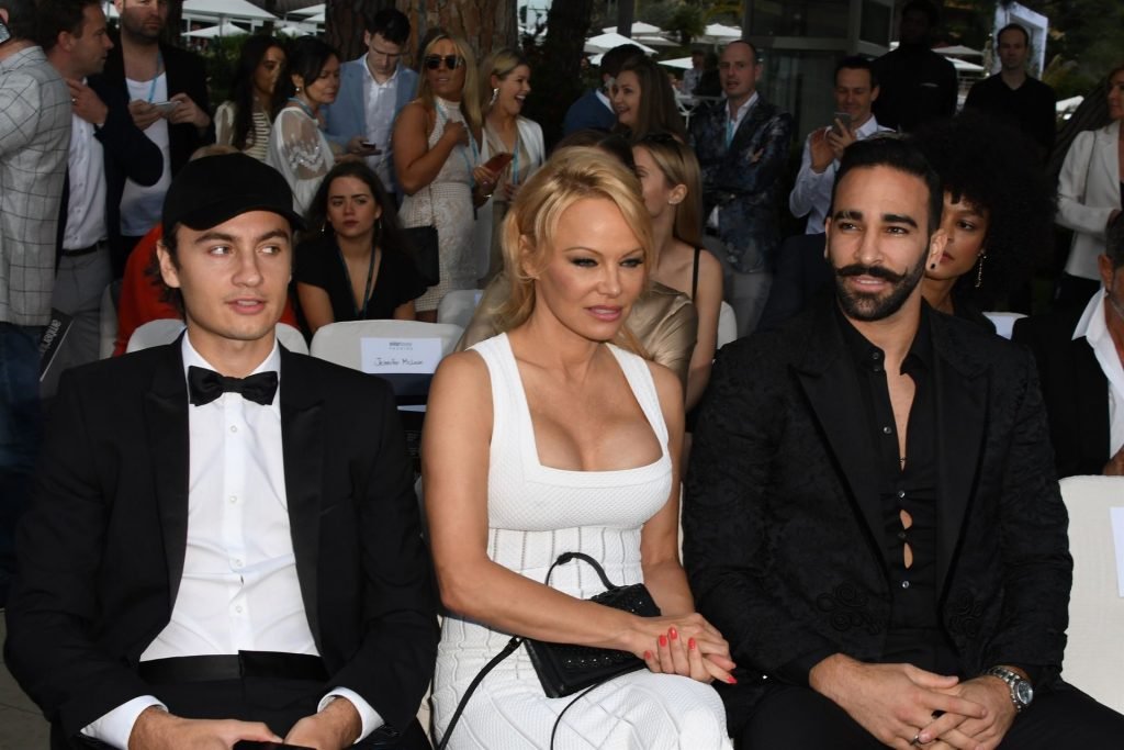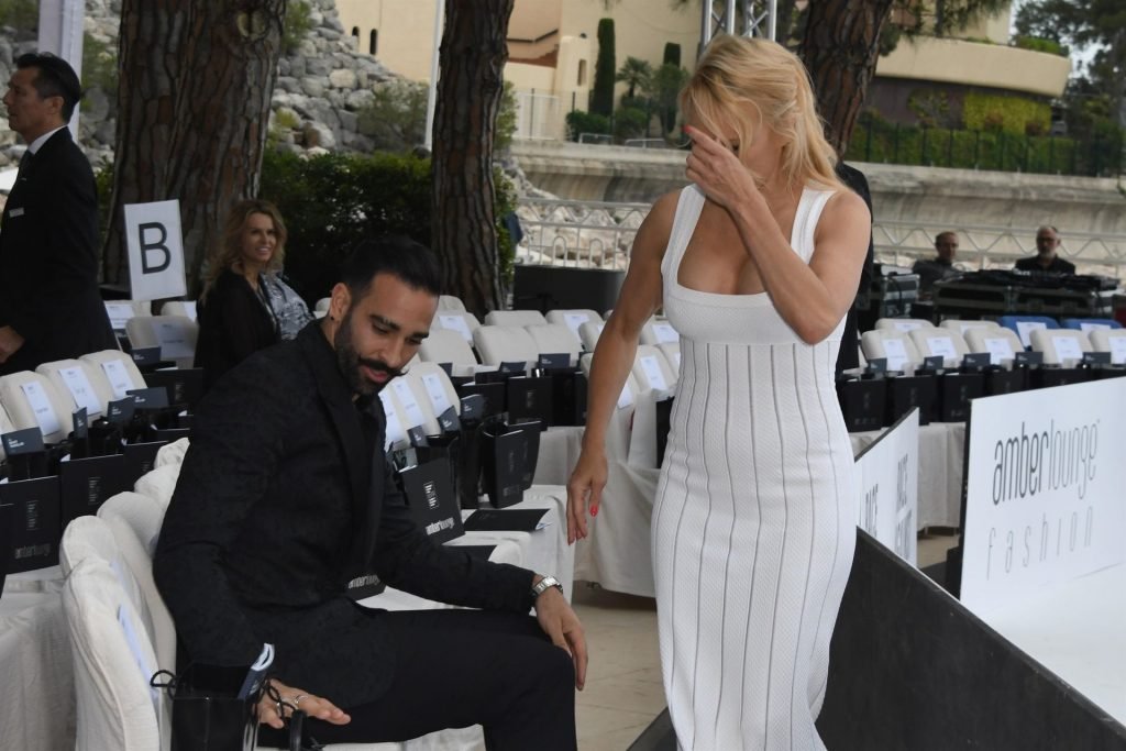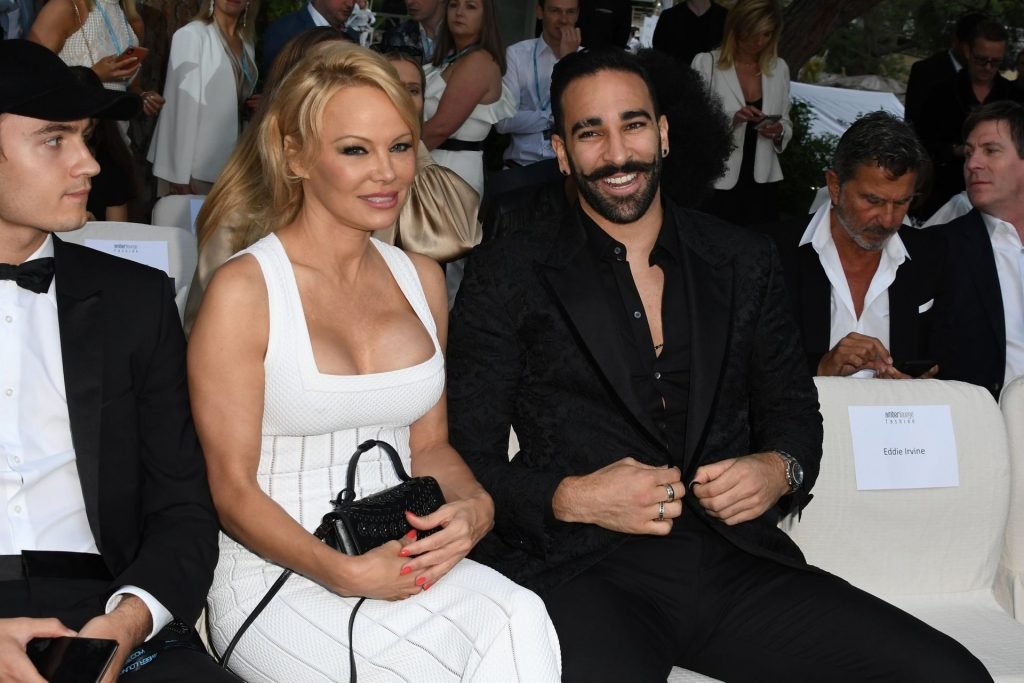 Busty Pamela Anderson (51) y Adil Rami (33) asisten a Amber Lounge U*NITE Fashion Mónaco 2019 en el Hotel Le Meridien Beach Plaza, 24/05/2019.