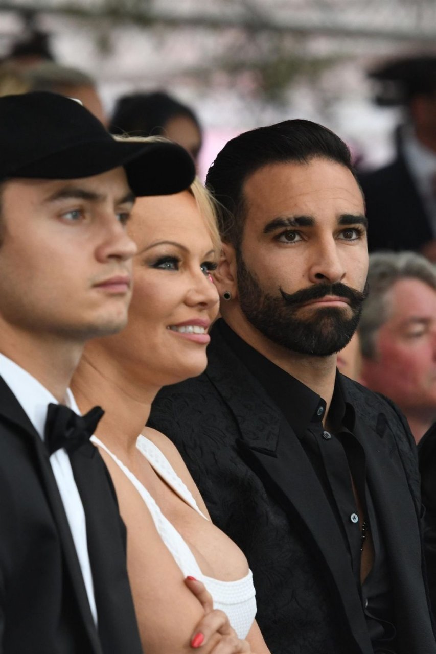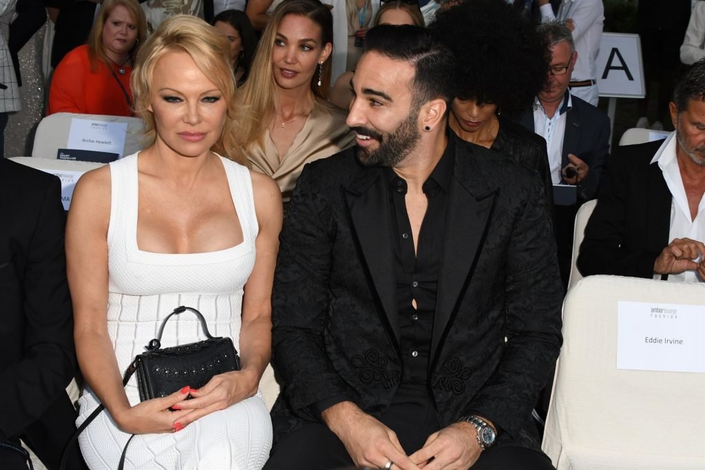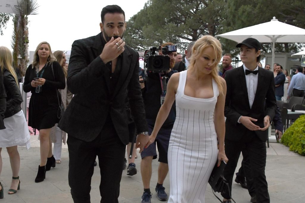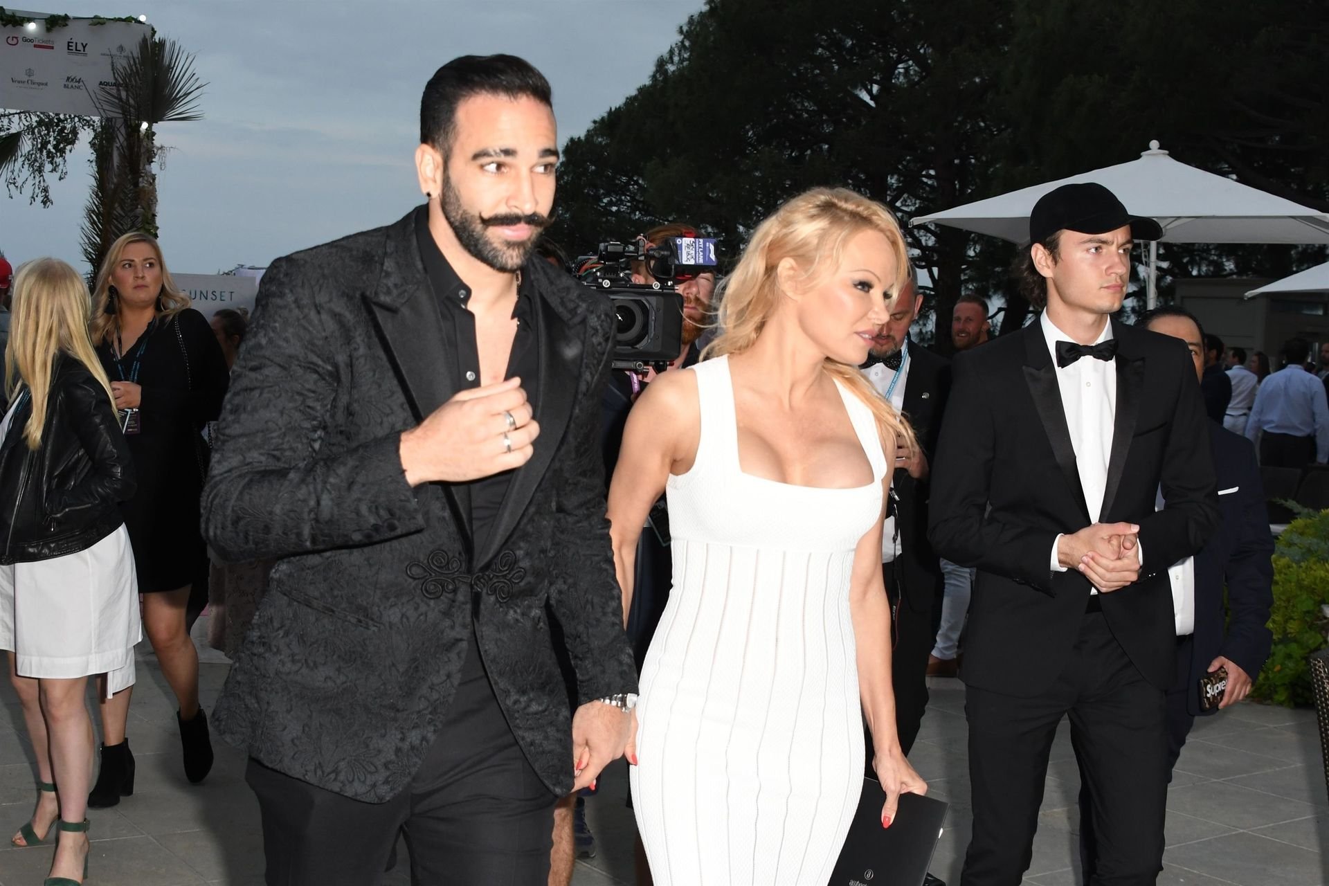 Busty Pamela Anderson (51) y Adil Rami (33) asisten a Amber Lounge U*NITE Fashion Mónaco 2019 en el Hotel Le Meridien Beach Plaza, 24/05/2019.