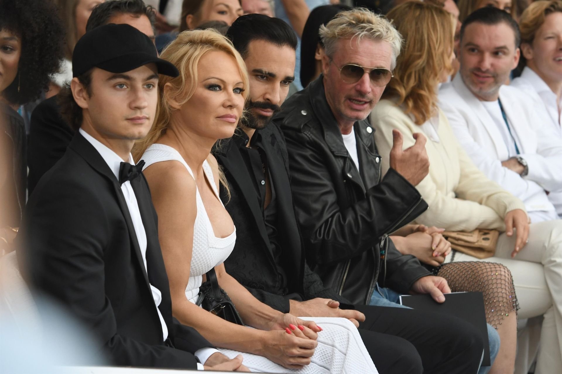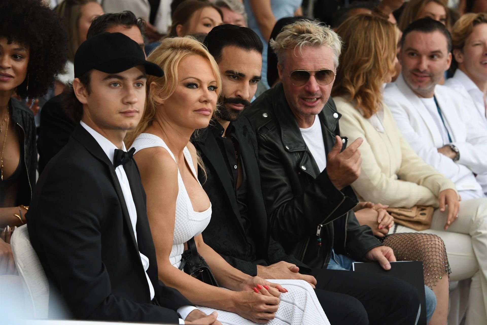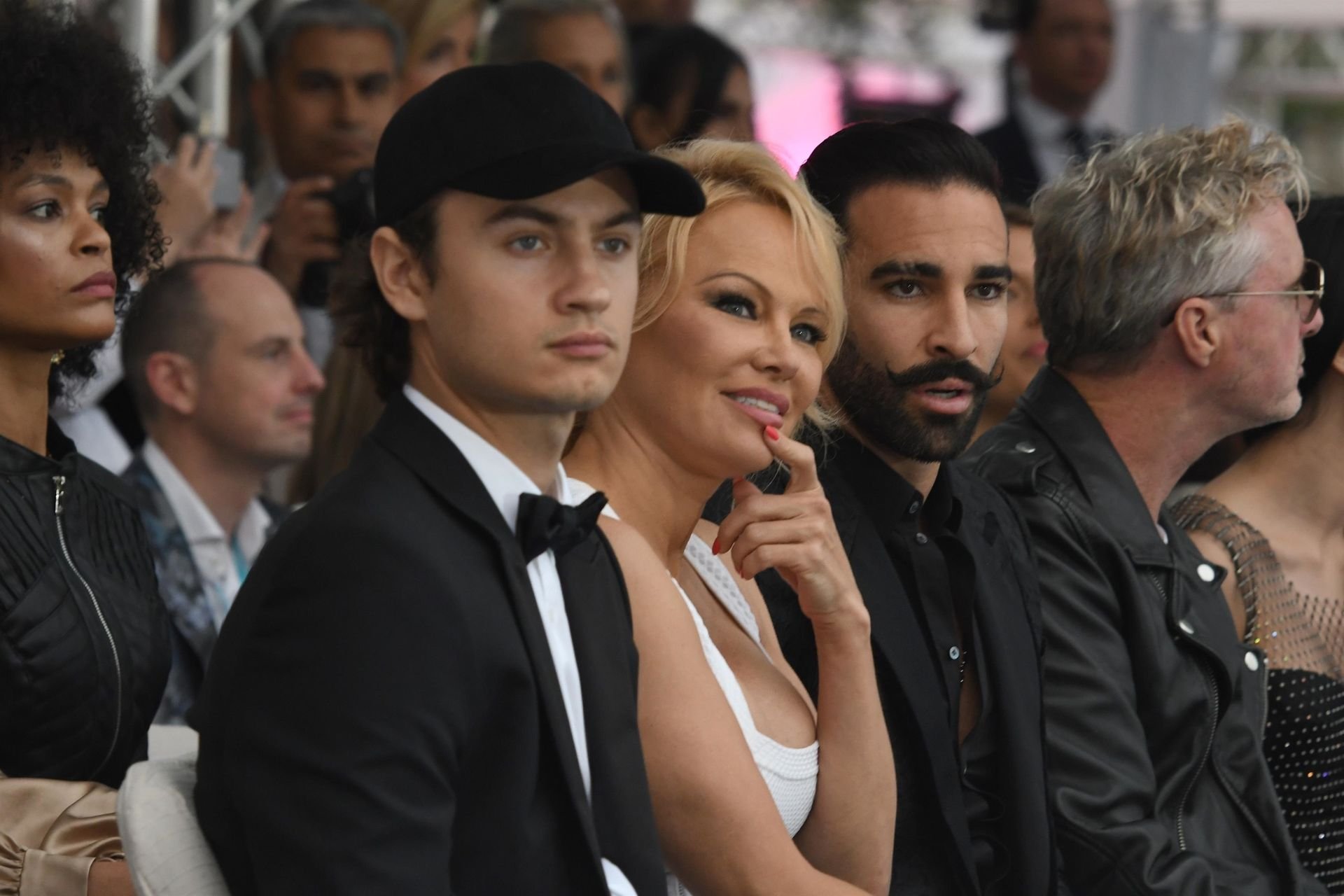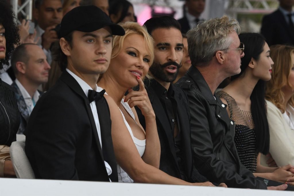 Busty Pamela Anderson (51) y Adil Rami (33) asisten a Amber Lounge U*NITE Fashion Mónaco 2019 en el Hotel Le Meridien Beach Plaza, 24/05/2019.