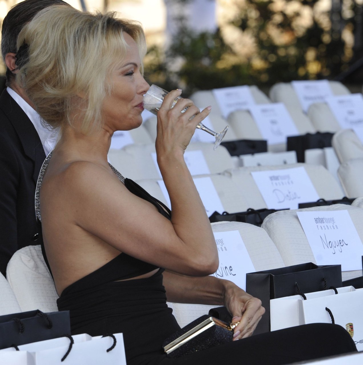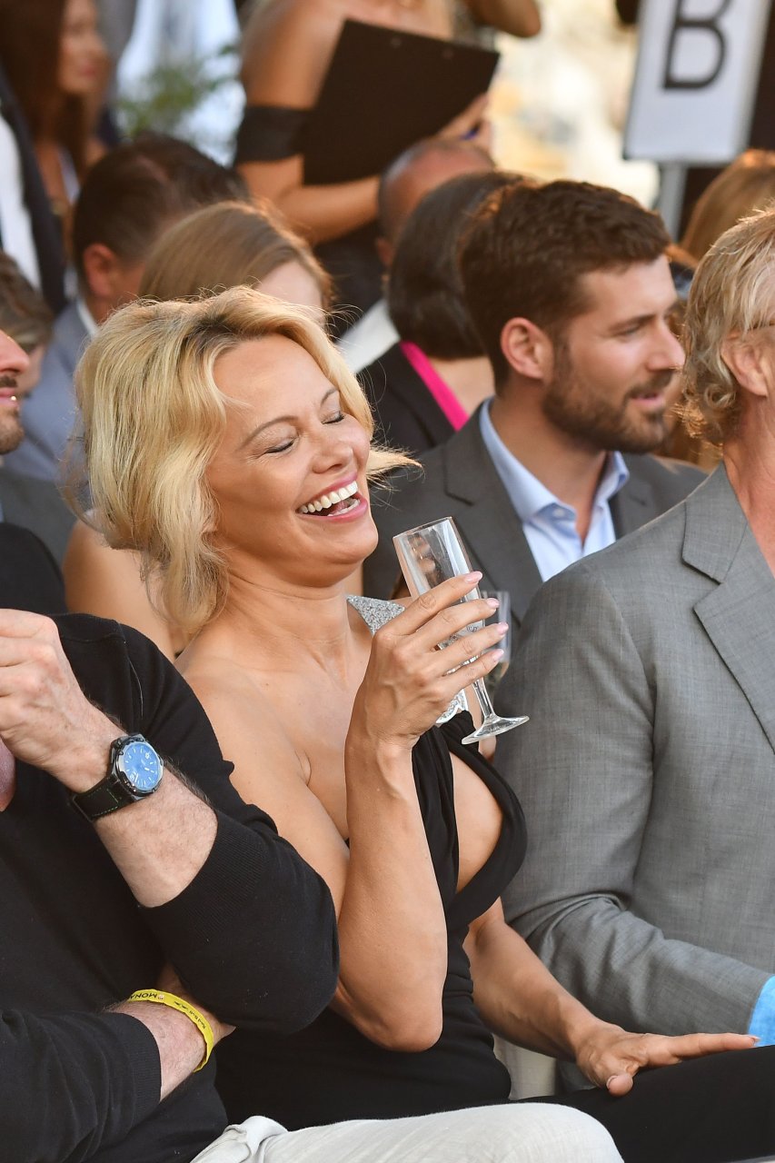 Pamela Anderson muestra sus famosos pechos en el desfile de moda Amber Lounge de la F1 en Mónaco, 26/05/2017. Pamela Anderson es una actriz canadiense-estadounidense (The People Garden, 2016) y modelo. Edad – 49 años.