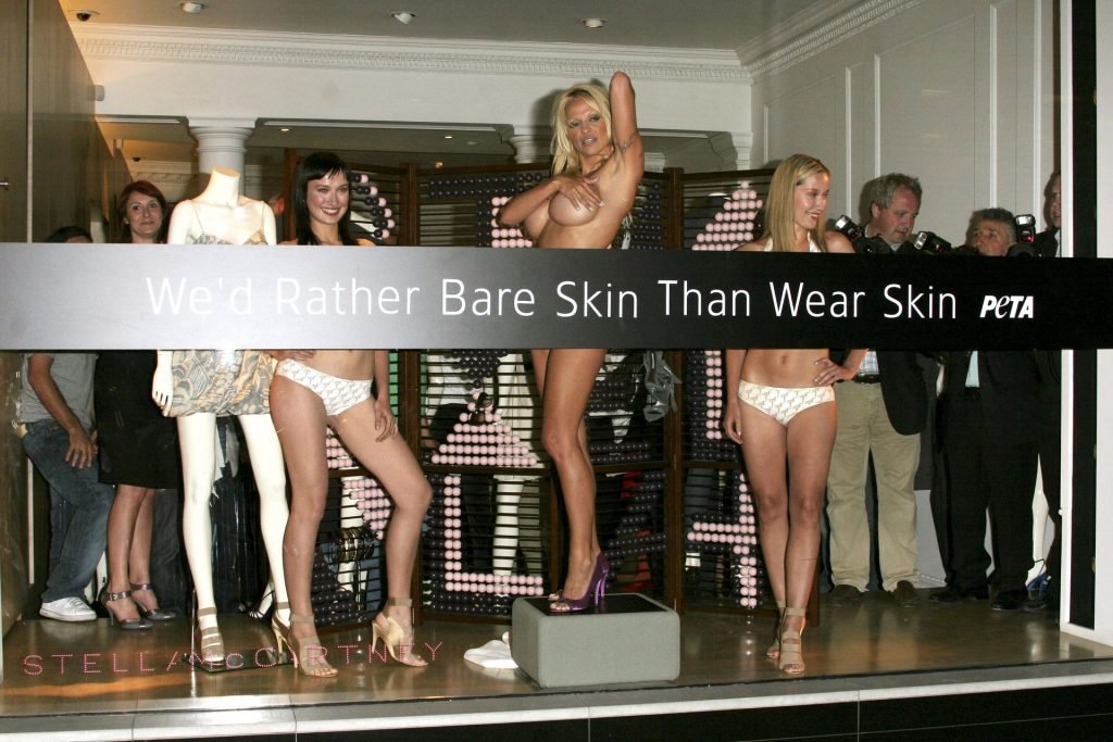 Pamela Anderson cubrió sus pechos en The Peta (Personas por el Trato Ético de los Animales) Premios Humanitarios celebrados en Stella McCartney, 30 Bruton Street, Londres W1. 28 de junio de 2006.