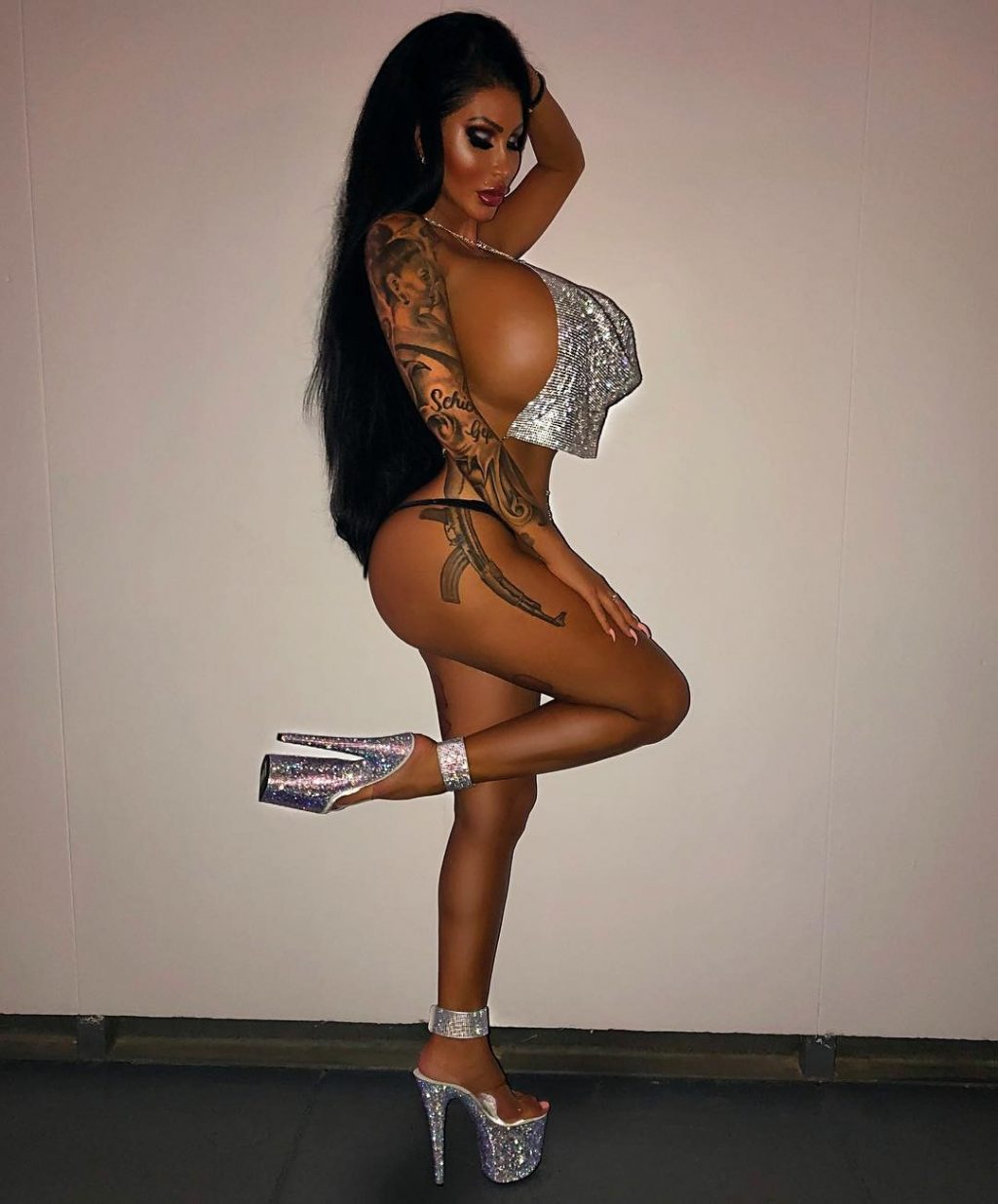 Consulta las fotos desnudas y sexys de Paris Herms. Ella es una chica con enormes pechos, cara plástica e implantes en las nalgas. ¡Disfruta de esta chica inusual en la galería a continuación!