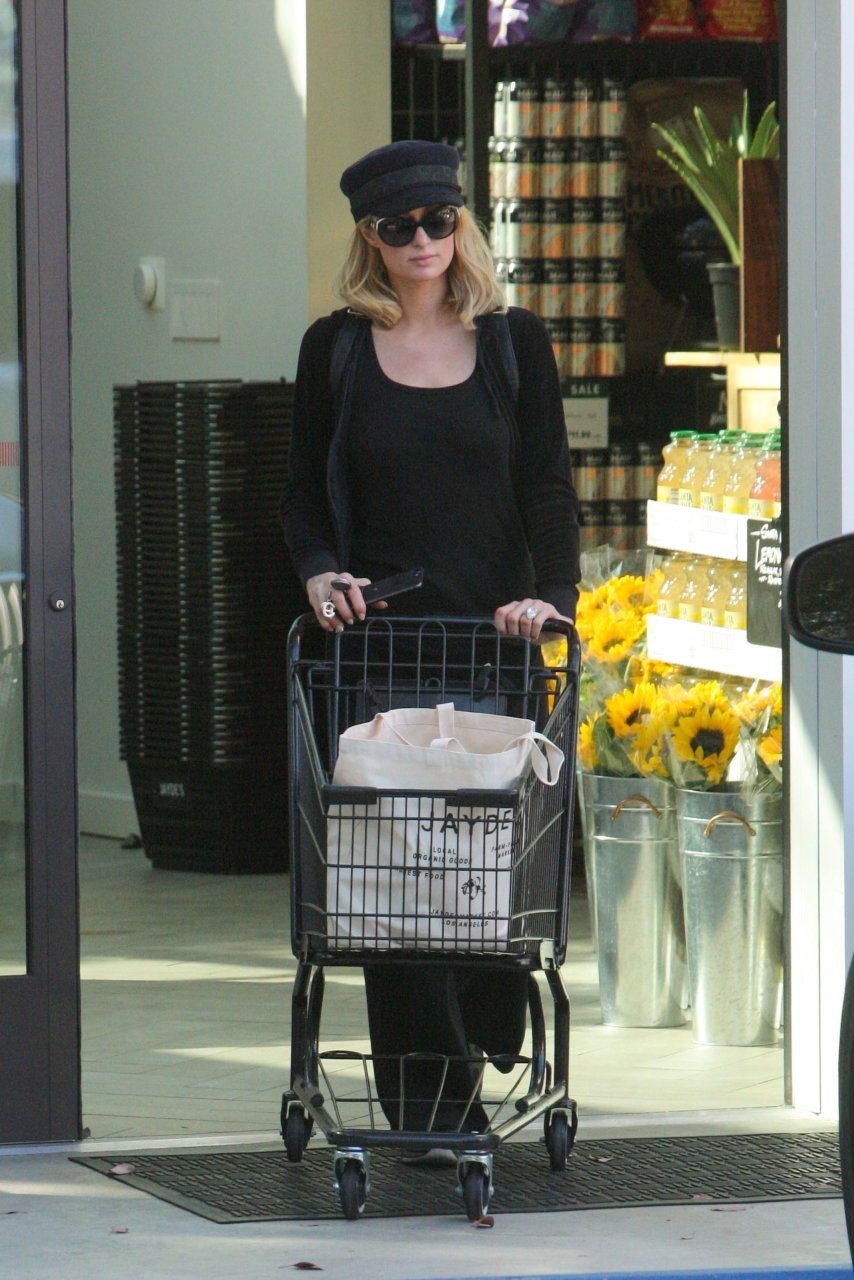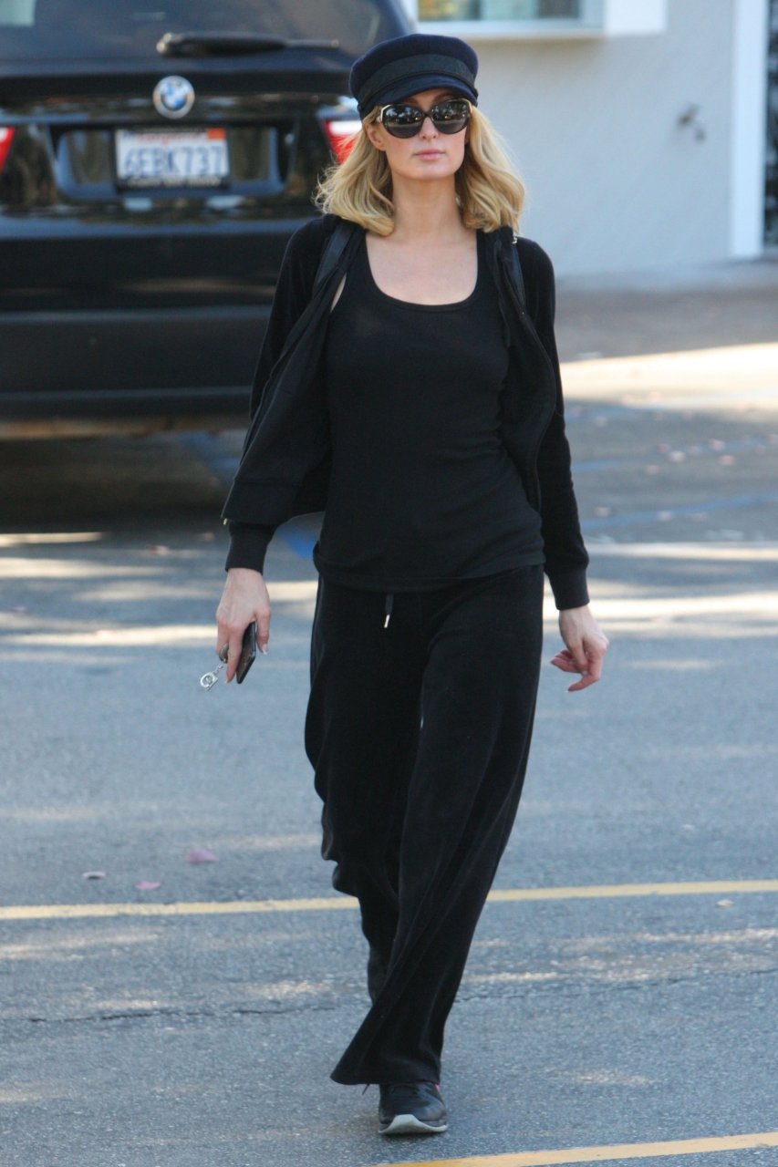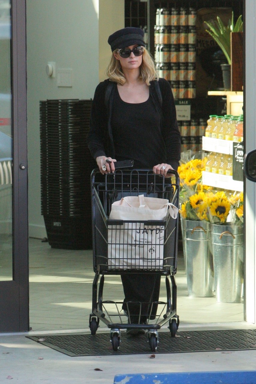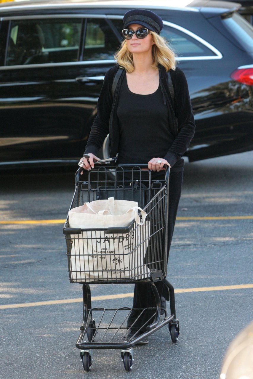 Paris Whitney Hilton (37) lleva sudaderas negras para un viaje rápido a la tienda de comestibles en Los Ángeles, 04/05/2018. La rubia hace que las sudaderas se vean bien mientras sonríe a la cámara al regresar a su auto después de recoger algunos artículos sin duda para ella y su prometido Chris Zylka.