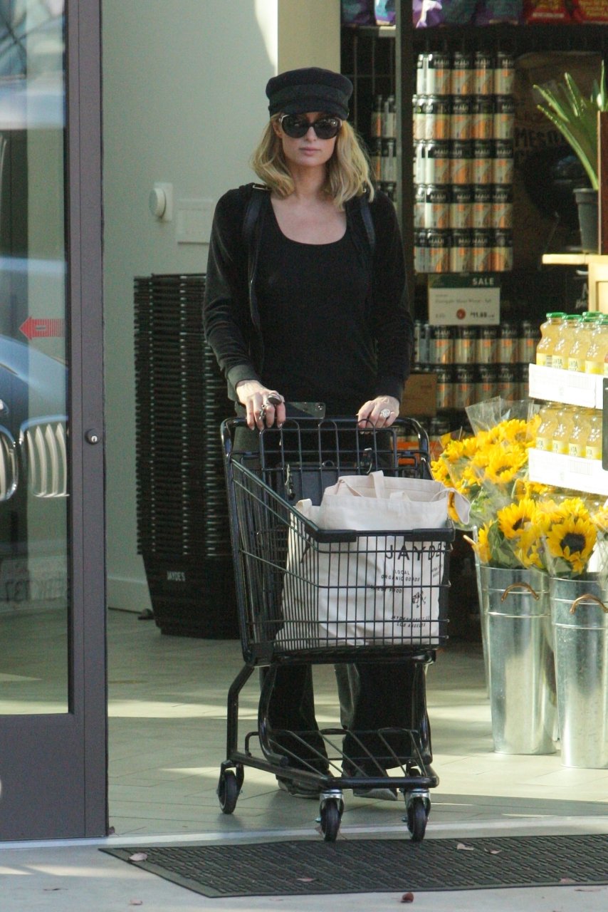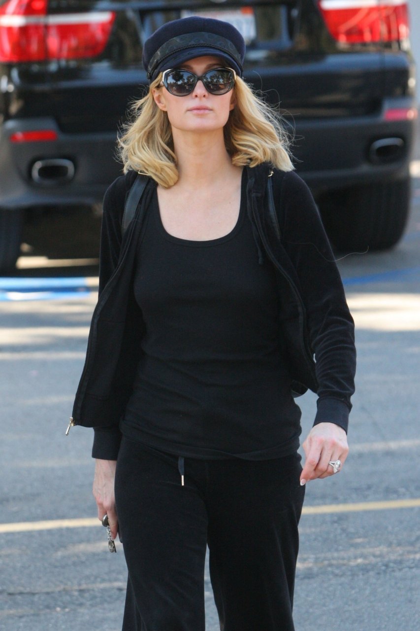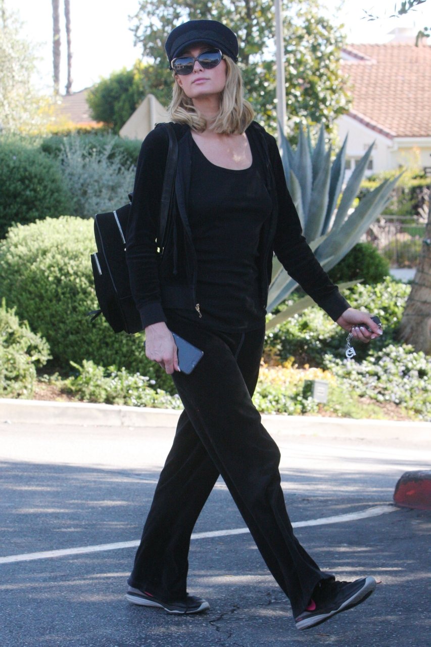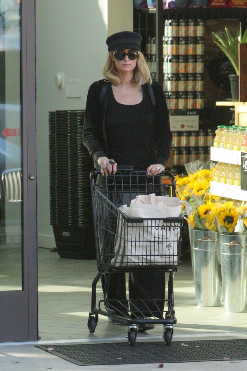 Paris Whitney Hilton (37) lleva sudaderas negras para un viaje rápido a la tienda de comestibles en Los Ángeles, 04/05/2018. La rubia hace que las sudaderas se vean bien mientras sonríe a la cámara al regresar a su auto después de recoger algunos artículos sin duda para ella y su prometido Chris Zylka.