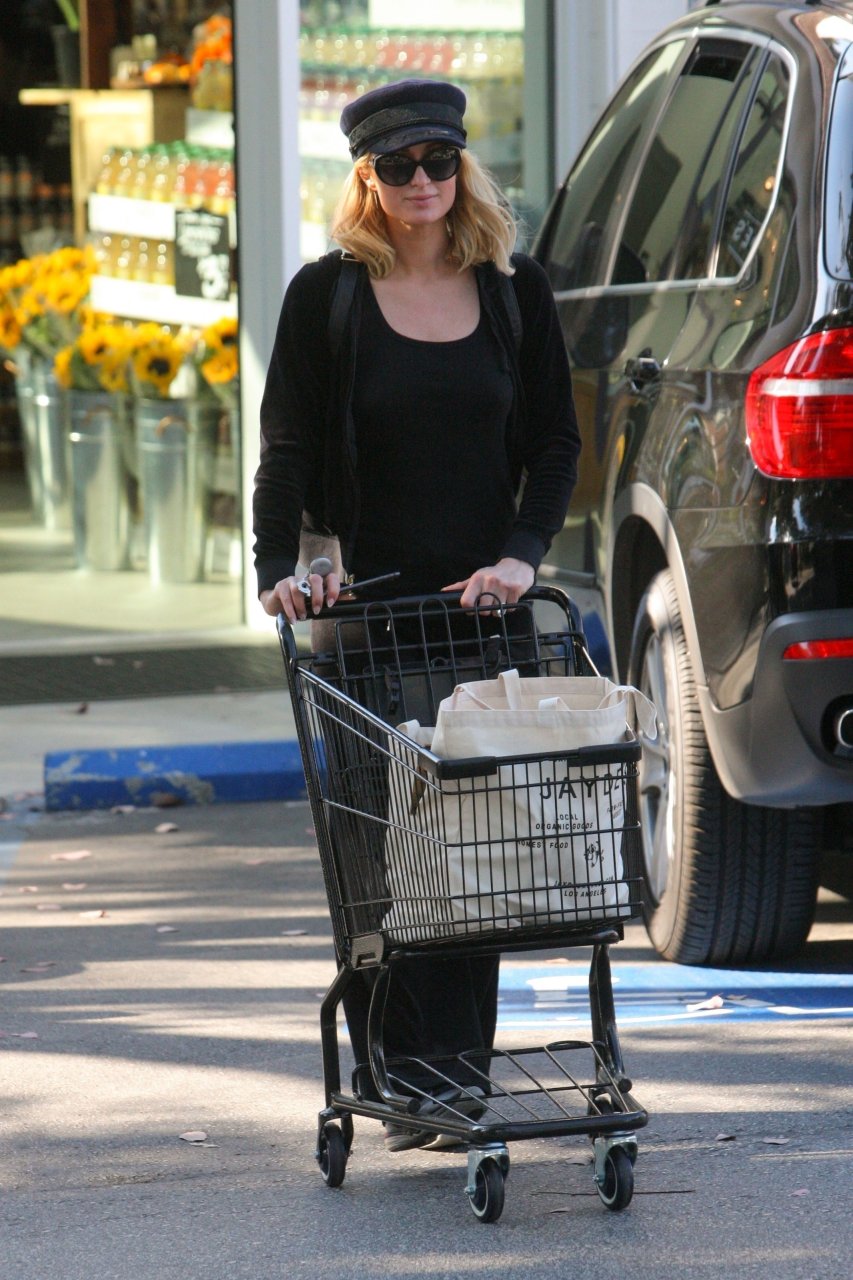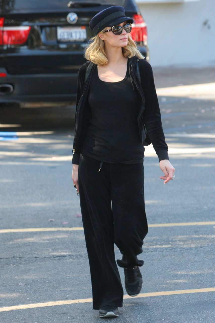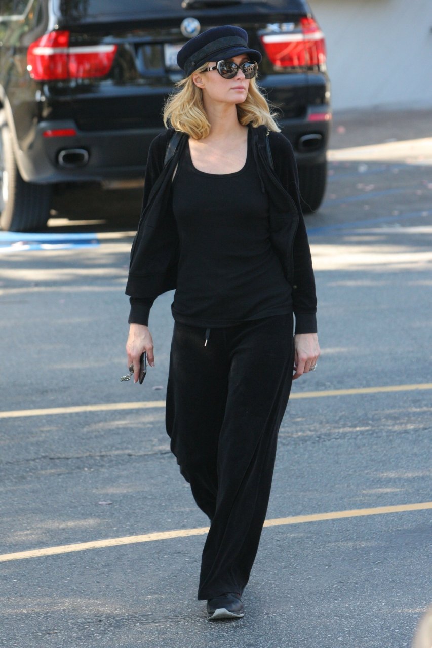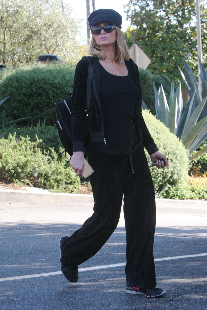 Paris Whitney Hilton (37) lleva sudaderas negras para un viaje rápido a la tienda de comestibles en Los Ángeles, 04/05/2018. La rubia hace que las sudaderas se vean bien mientras sonríe a la cámara al regresar a su auto después de recoger algunos artículos sin duda para ella y su prometido Chris Zylka.