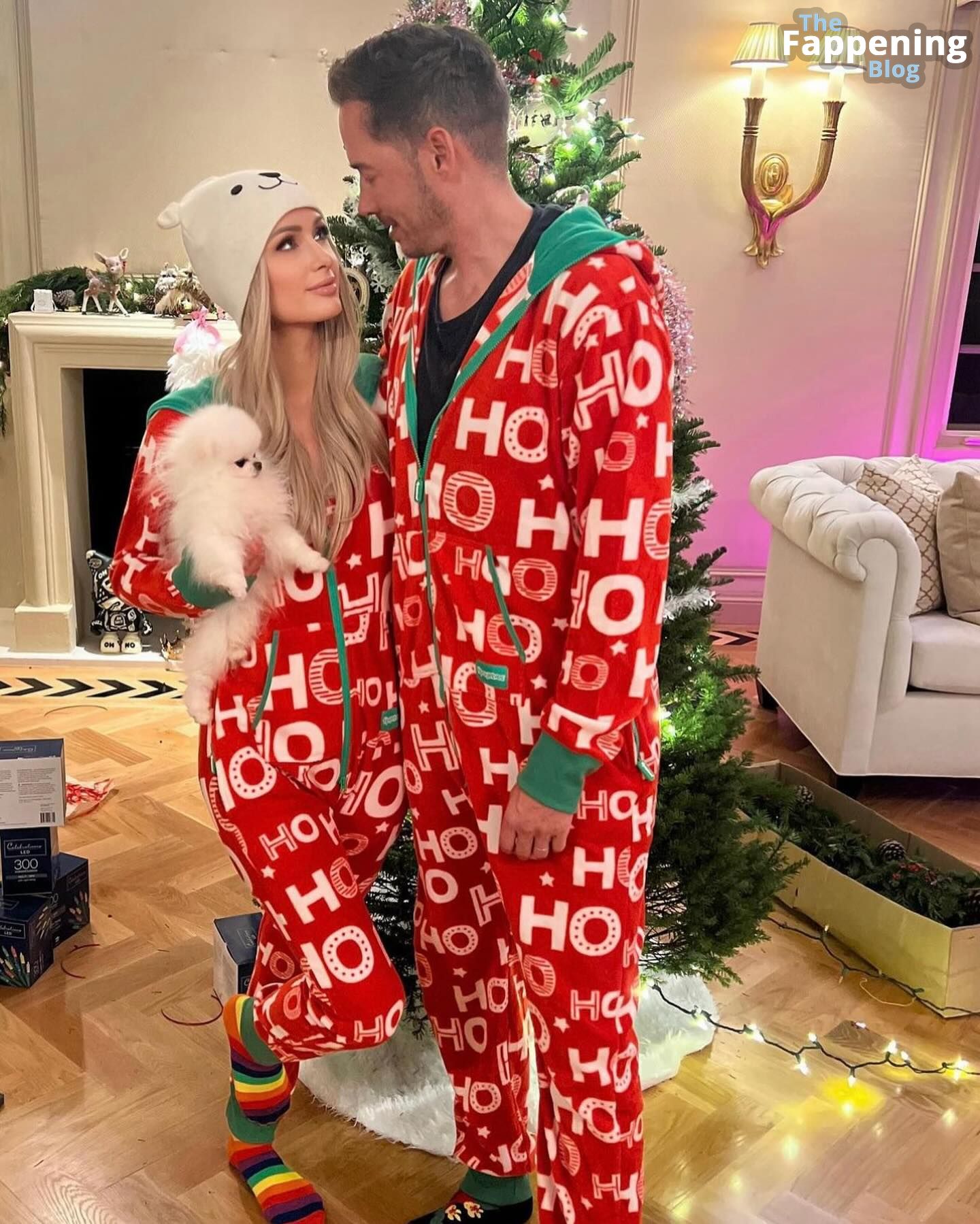 En Nochebuena, Paris Hilton compartió algunas fotos acogedoras en pijama y sensuales imágenes en lencería.