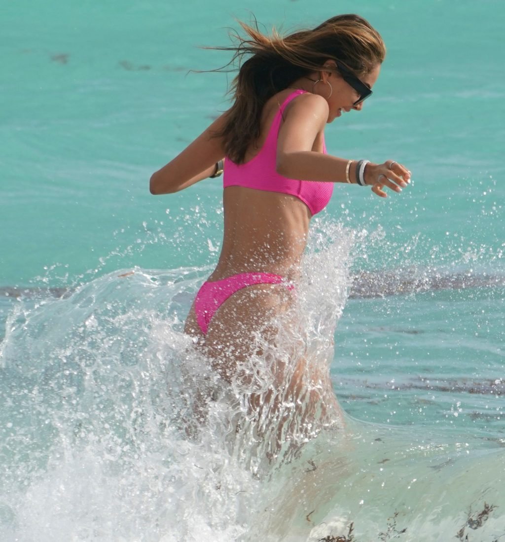 La actriz Patricia Contreras fue vista con un bikini rosa en Miami Beach, 12/09/2018.