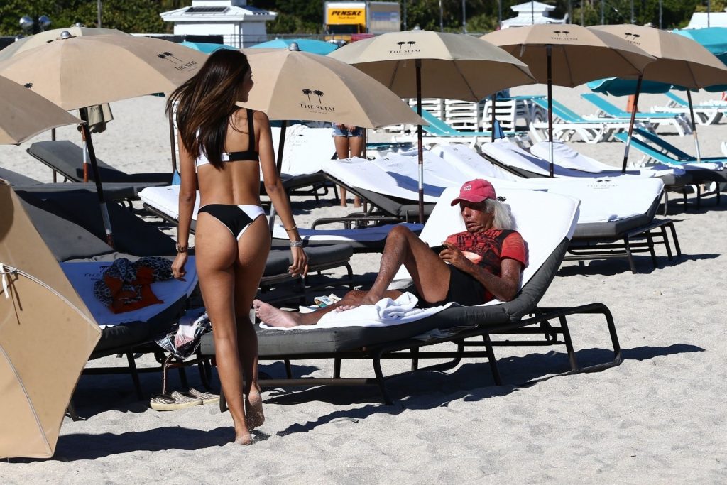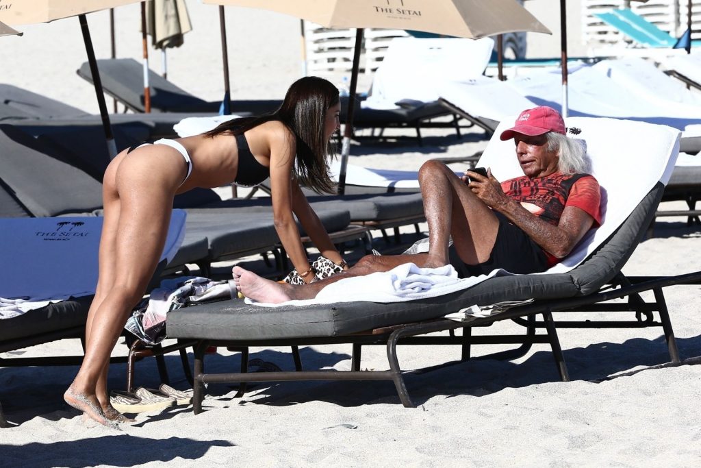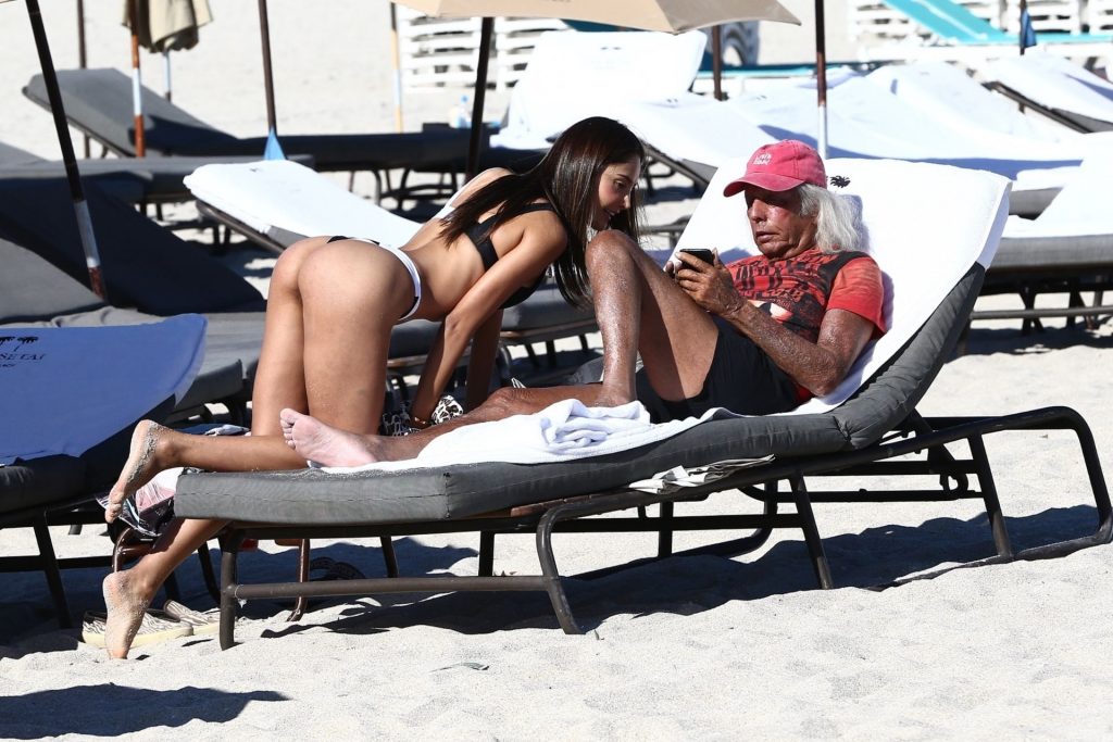 La actriz mexicana Patricia Gloria Contreras fue vista durante una sesión de fotos con James Goldstein en Miami Beach, Florida, 12/03/2019. Patricia luego salió de la playa vistiendo un vestido de estampado de leopardo.
