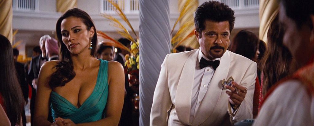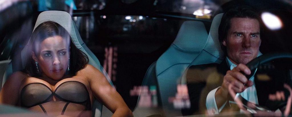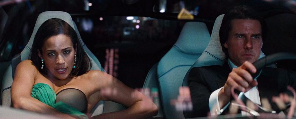 In the next scene, hot Paula Patton is sitting on a bed in a black bra. She’s showing the cleavage as she talks to a guy. After a while, Paula gets dressed.