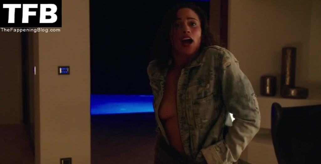 In this scene, beautiful Paula shows nice cleavage as she climbs into a guy’s lap in a car and makes out with him. Then Paula Patton has sex with him before we get another view of her cleavage, bra, and ass exposed in the porn scene.