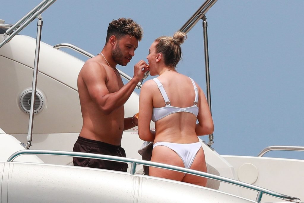 Perrie Edwards y Alex Oxlade-Chamberlain fueron vistos de vacaciones en Ibiza, 08/06/2019. Perrie Edwards mostró su cuerpo sexy con un bikini blanco en el barco.