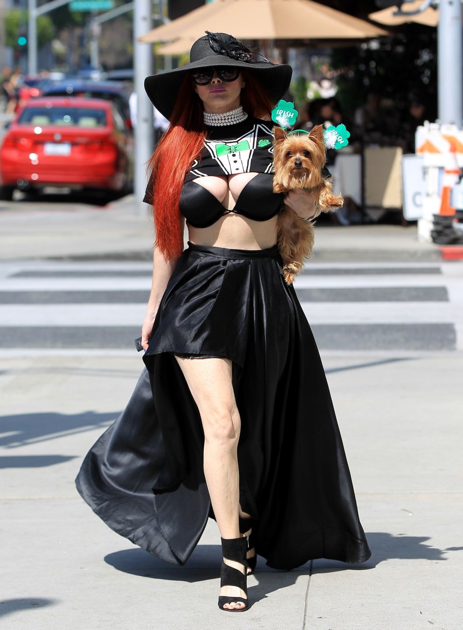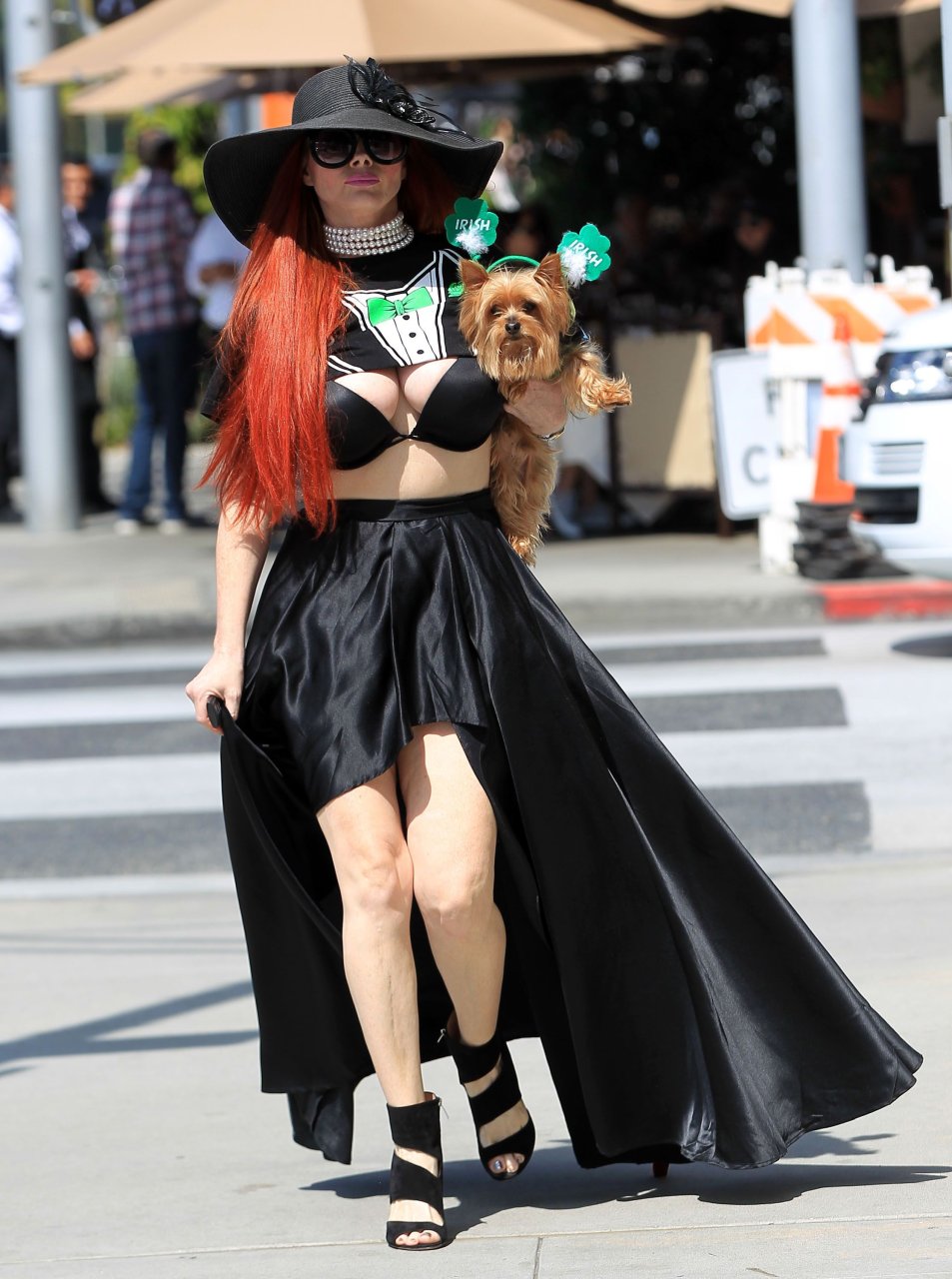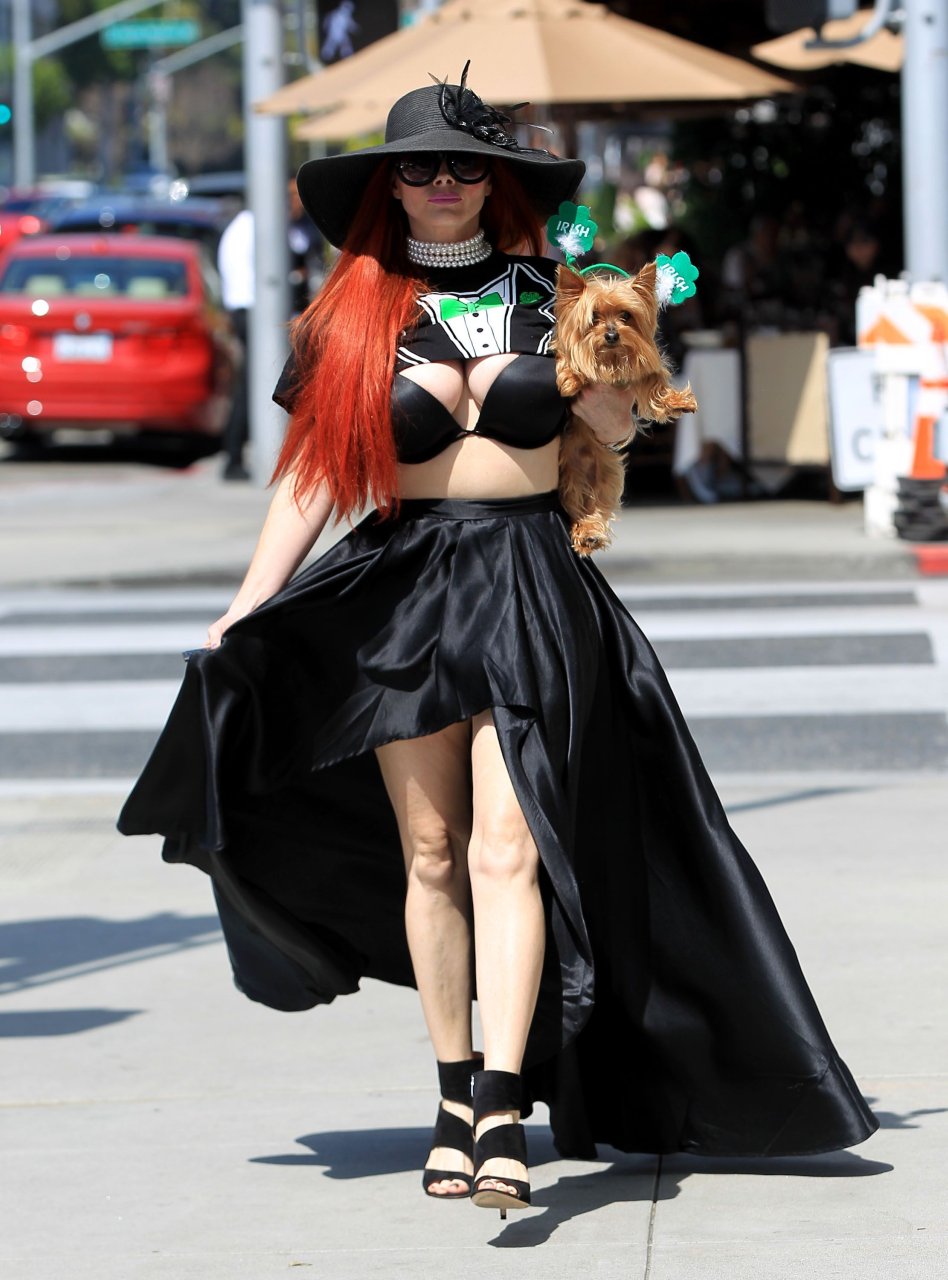 Phoebe Price fue vista paseando a su pequeño y lindo perro en Beverly Hills, 16/03/2017. Phoebe Price es una actriz estadounidense (Broken Blood – 2013). Edad – 44 (nacida el 27 de septiembre de 1972).