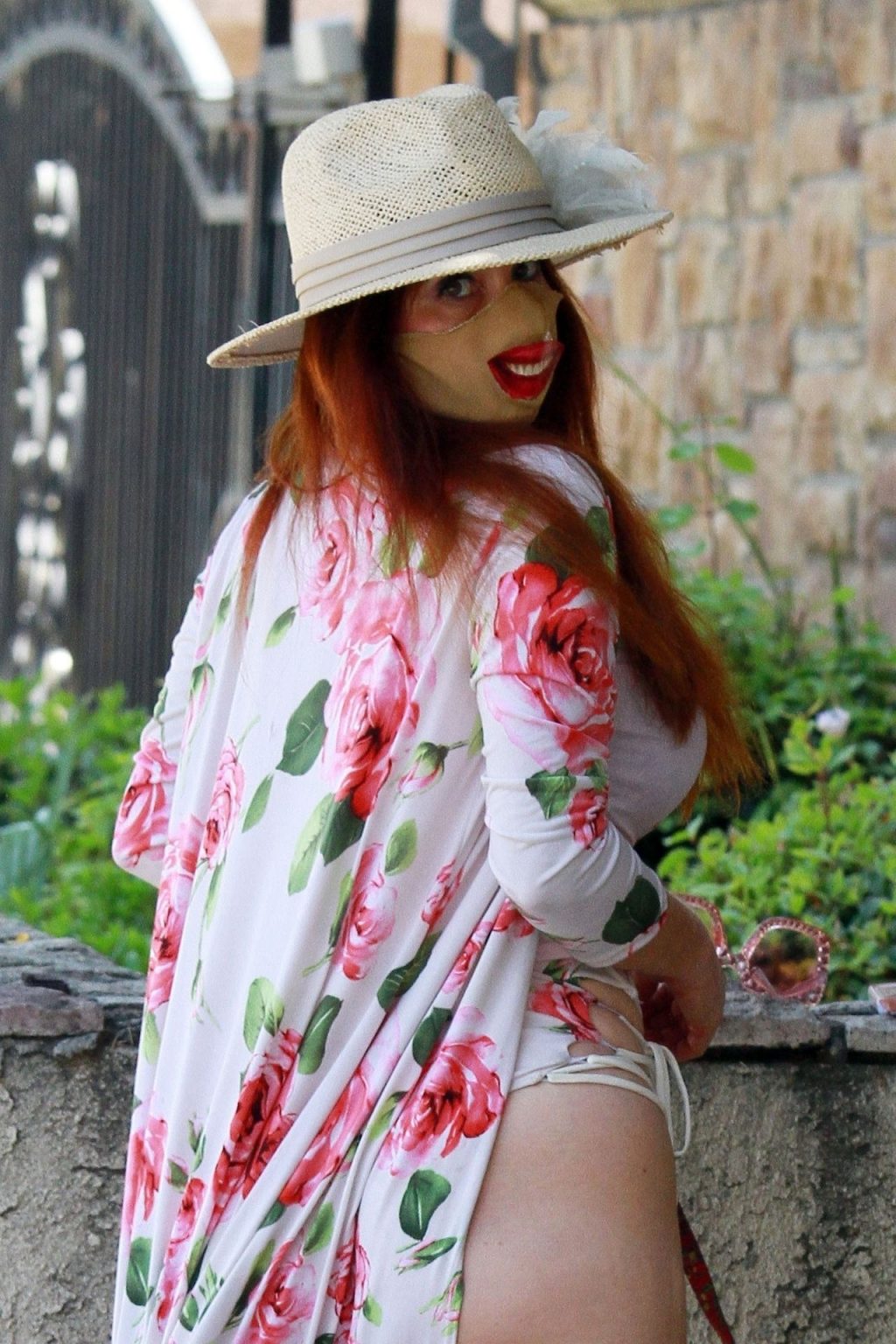 Esta gorda perra no tiene nada mejor que hacer que vestirse para mostrar su asqueroso trasero cada vez que va a caminar o al supermercado. Dios mío, los paparazzi están como 'que se joda el perro, vamos a posar un rato.' Asquerosa zorra.