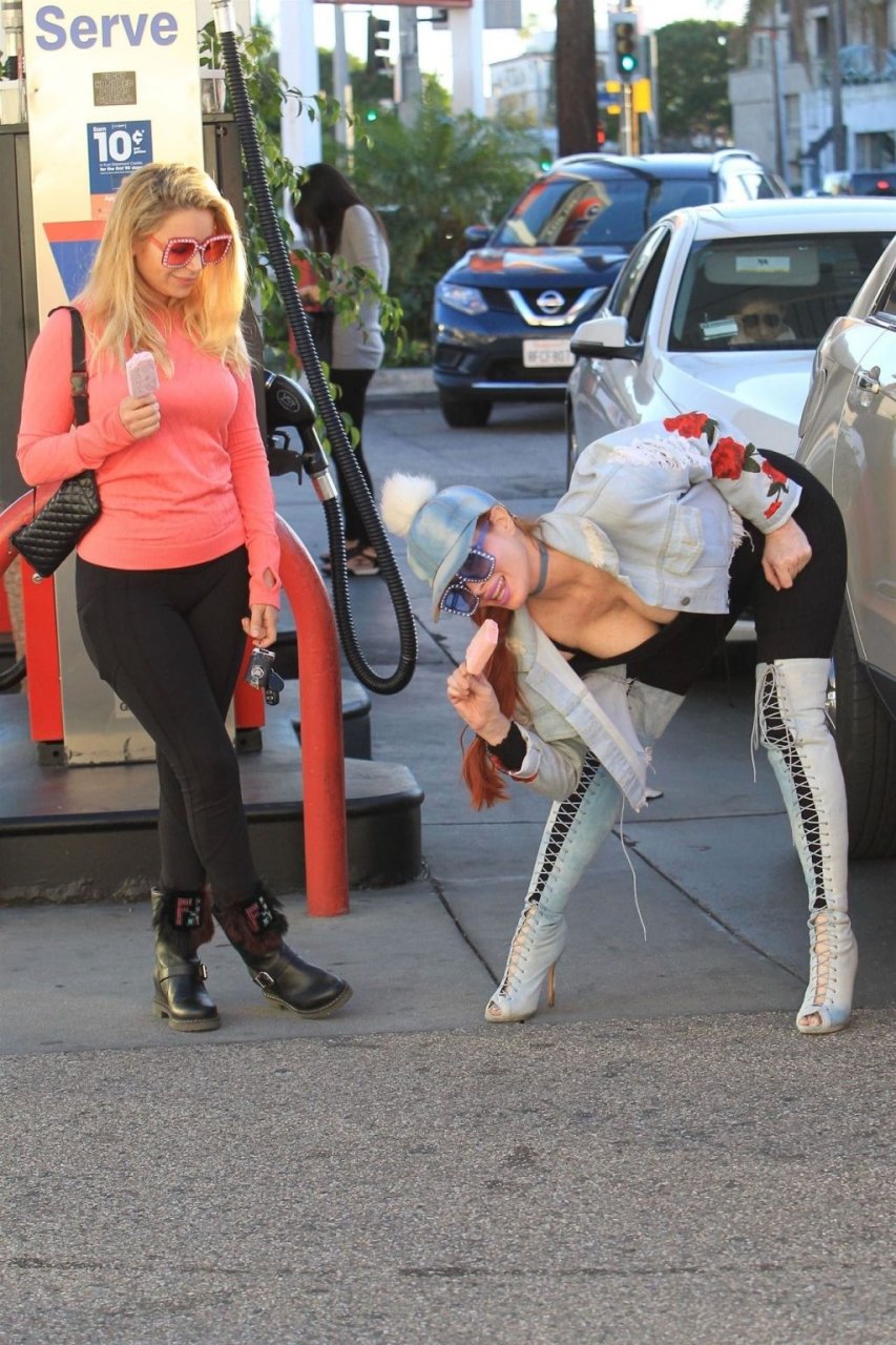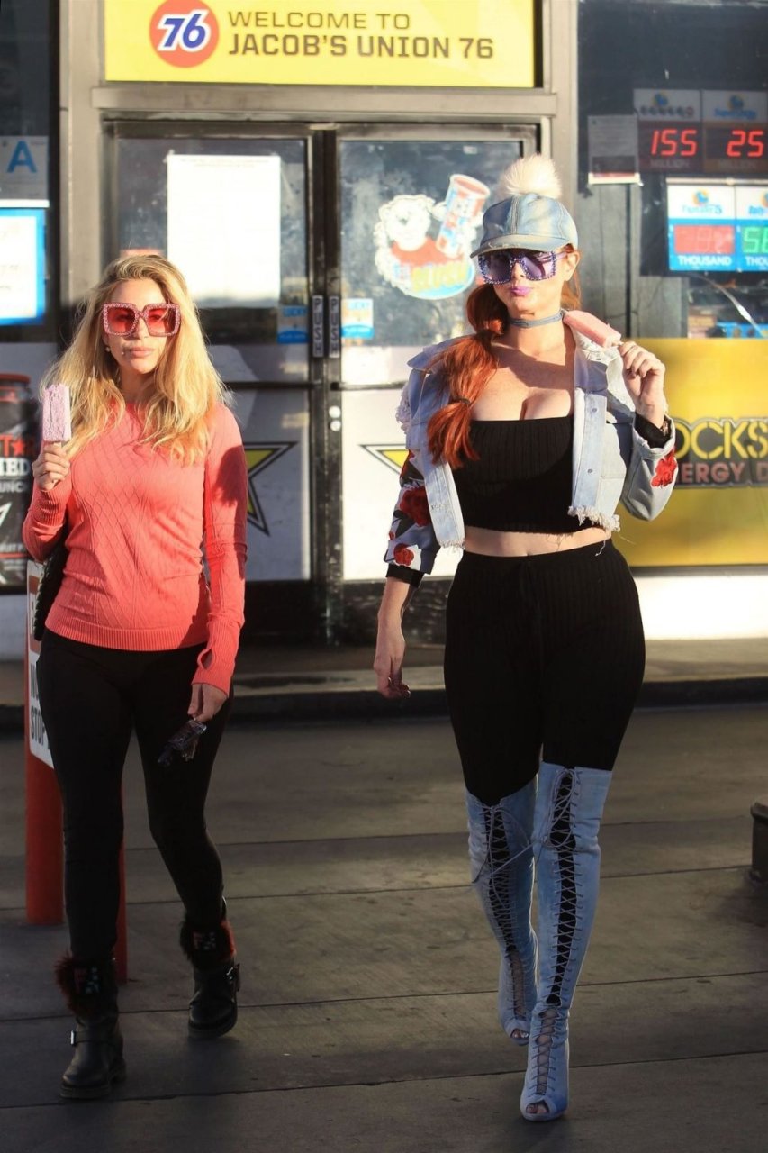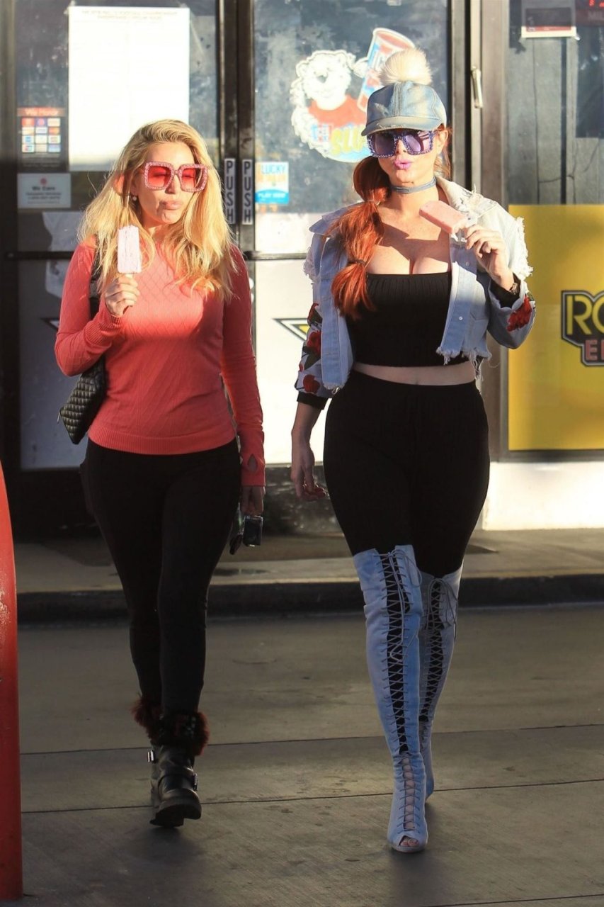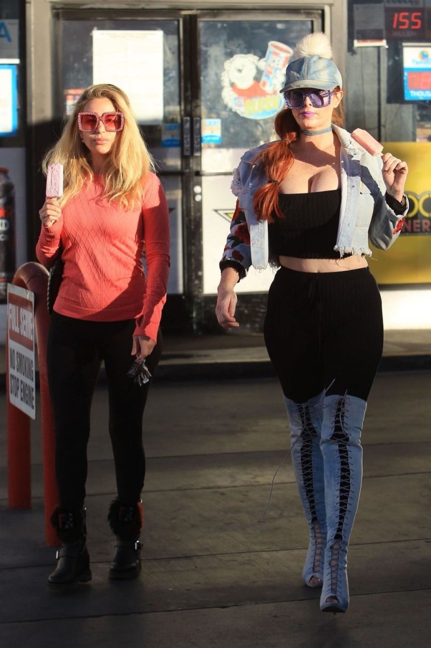Phoebe Price y Marcela Iglesias se detienen en una gasolinera para comprar un helado en Los Ángeles, 23/11/2018. Phoebe, que ha estado haciendo todo lo posible para hacerse famosa durante más de una década, tocó fondo al comer un helado que se le cayó al suelo mientras llenaba gasolina.