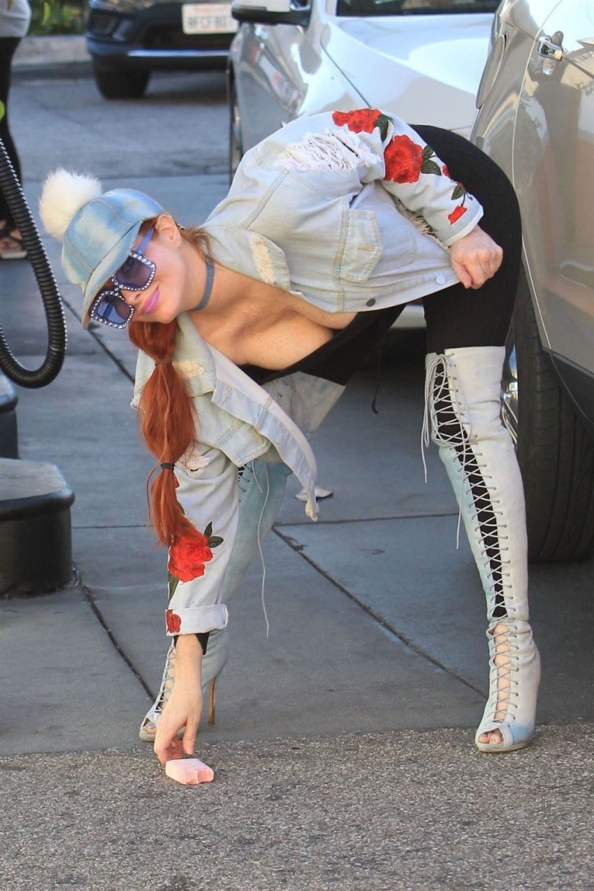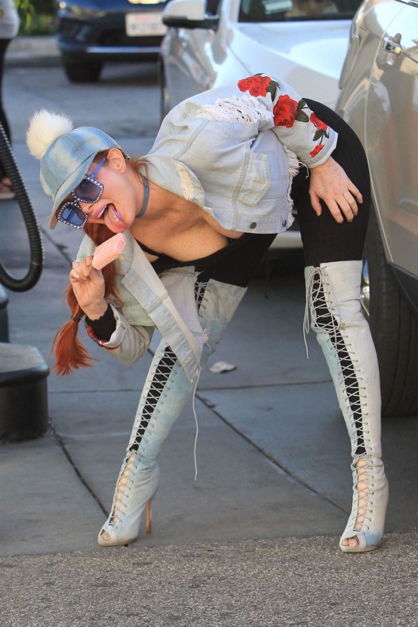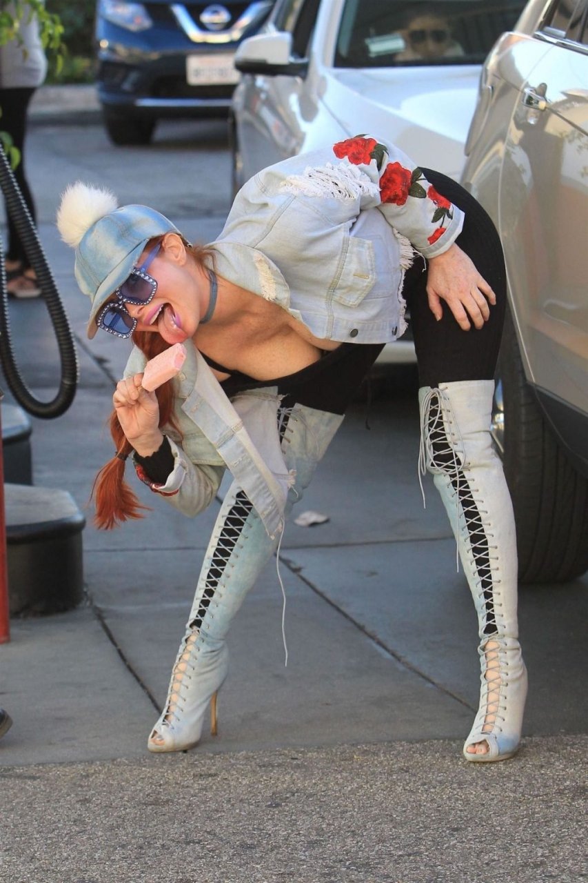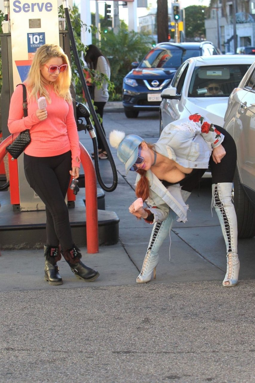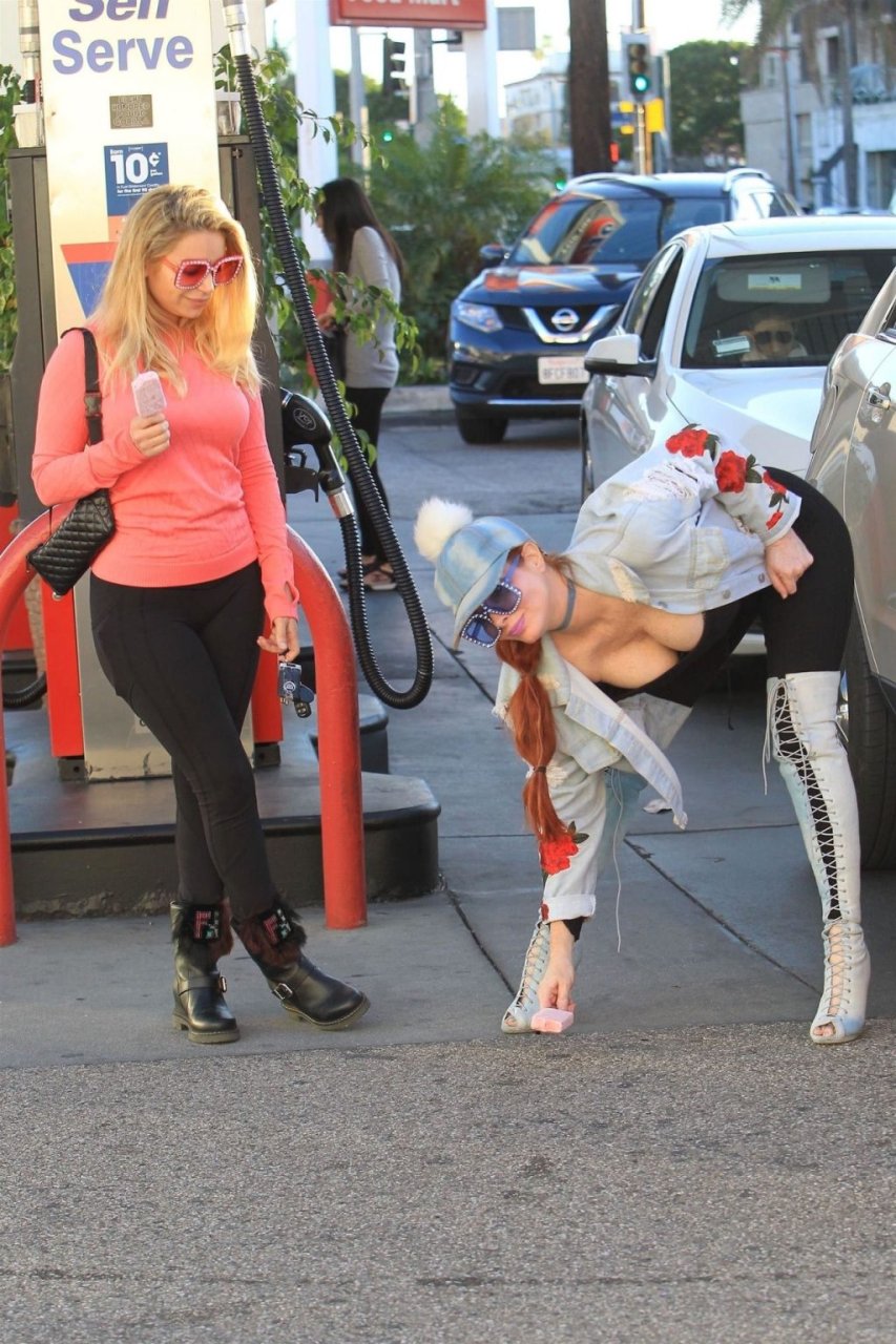 Phoebe Price y Marcela Iglesias se detienen en una gasolinera para comprar un helado en Los Ángeles, 23/11/2018. Phoebe, que ha estado haciendo todo lo posible para hacerse famosa durante más de una década, tocó fondo al comer un helado que se le cayó al suelo mientras llenaba gasolina.