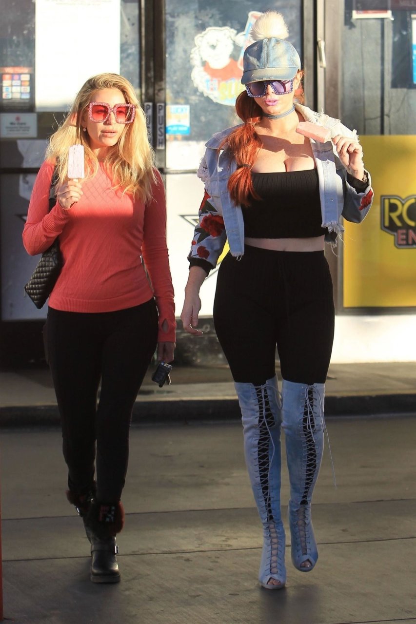 Phoebe Price y Marcela Iglesias se detienen en una gasolinera para comprar un helado en Los Ángeles, 23/11/2018. Phoebe, que ha estado haciendo todo lo posible para hacerse famosa durante más de una década, tocó fondo al comer un helado que se le cayó al suelo mientras llenaba gasolina.