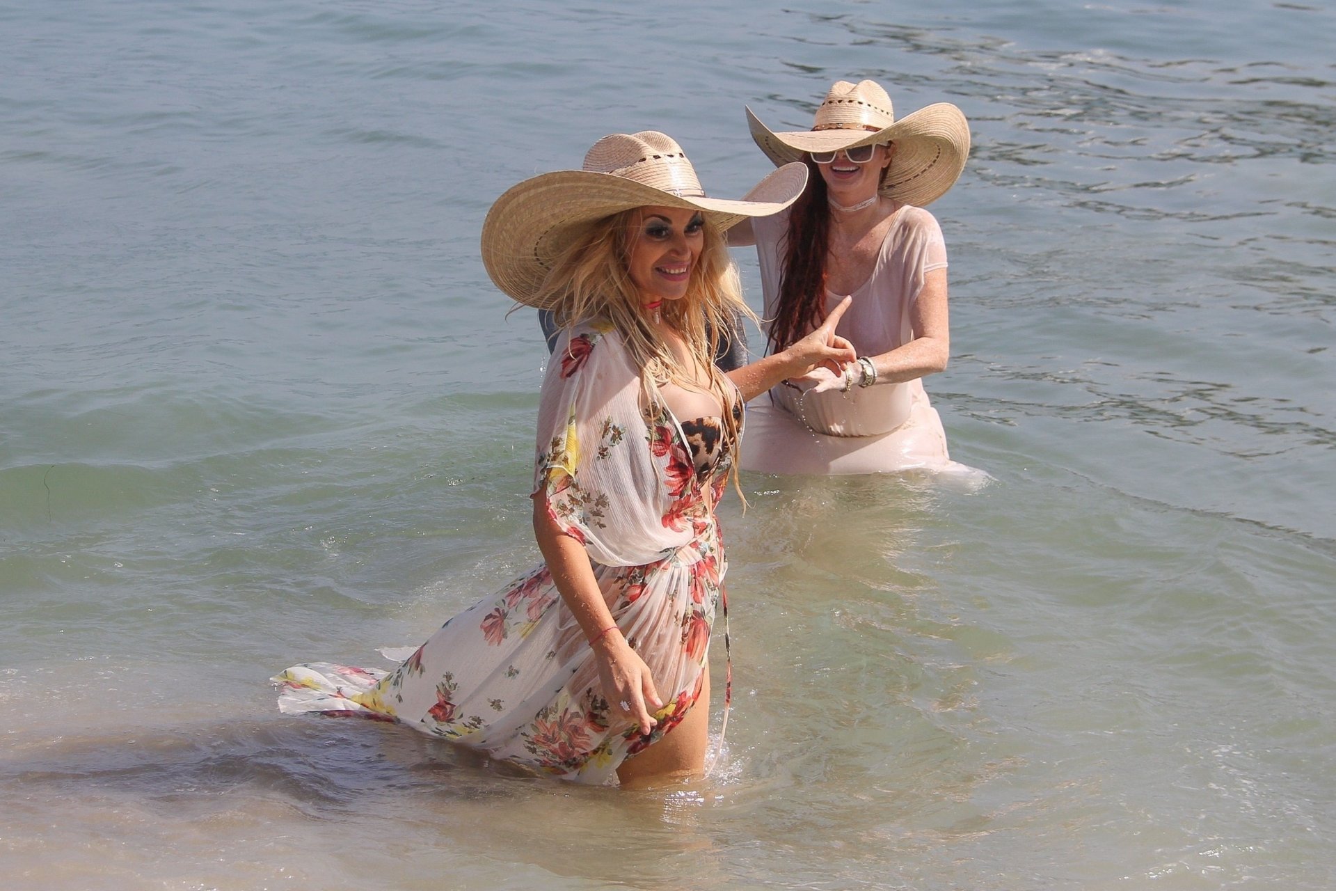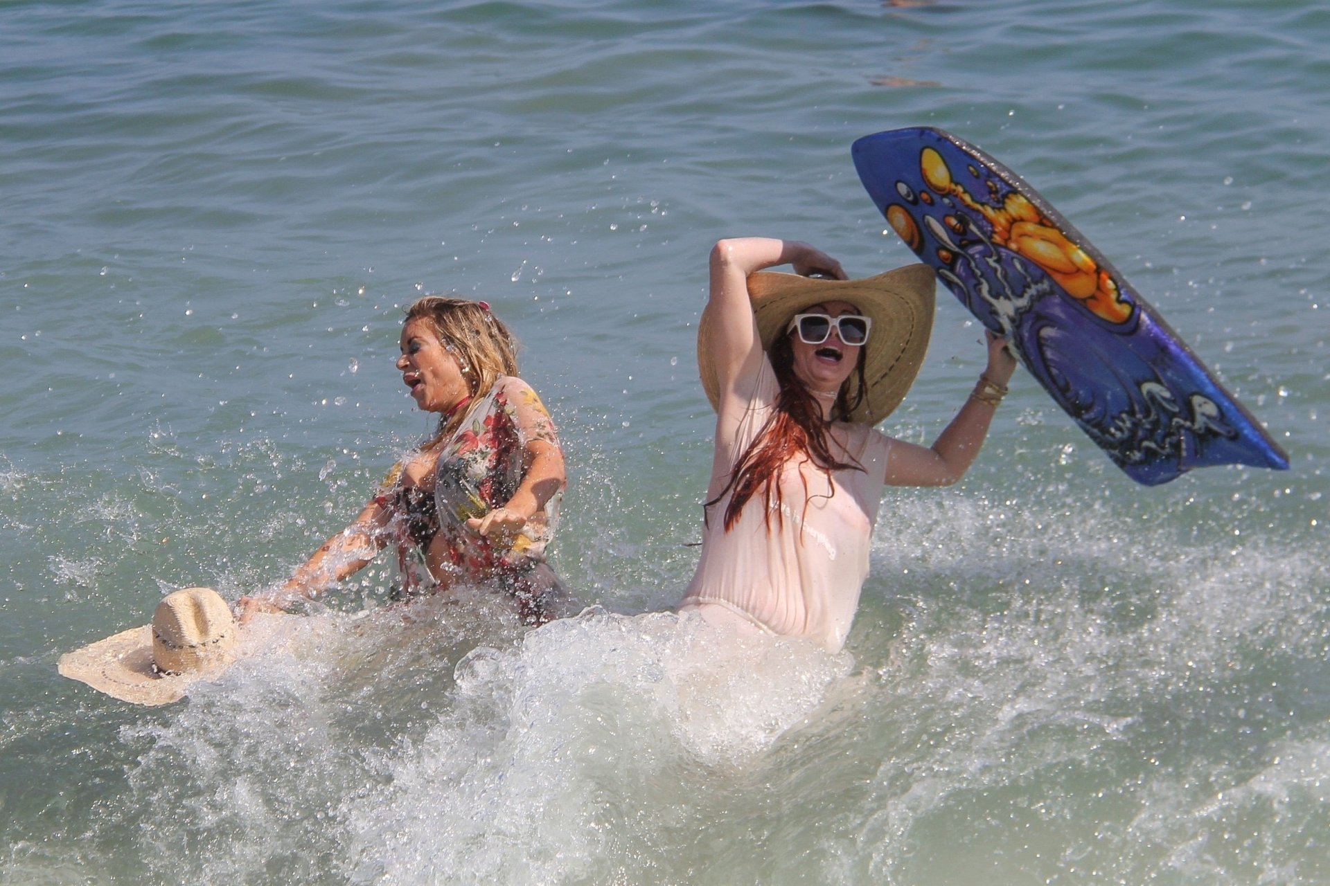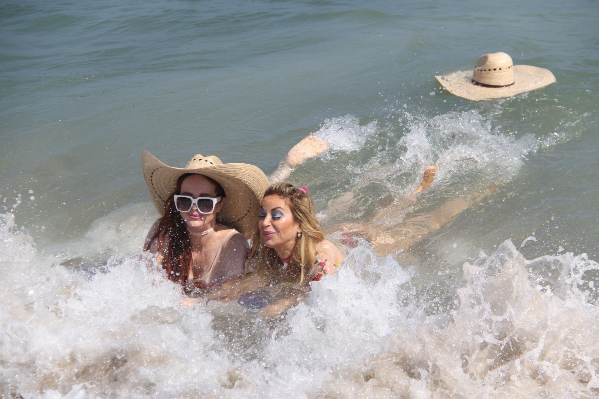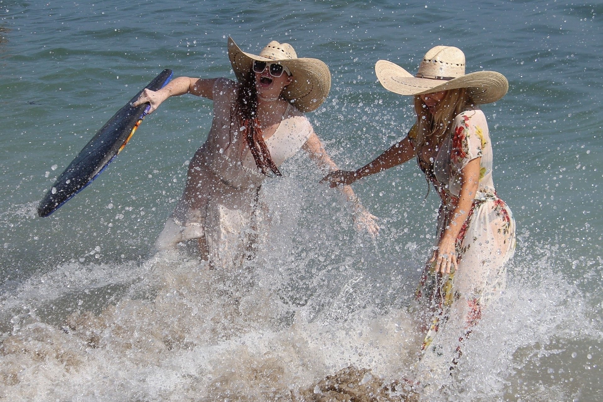 La actriz Phoebe Price y su amiga Marcela Iglesias disfrutan de un día loco en la playa juntas, 20/08/2018.