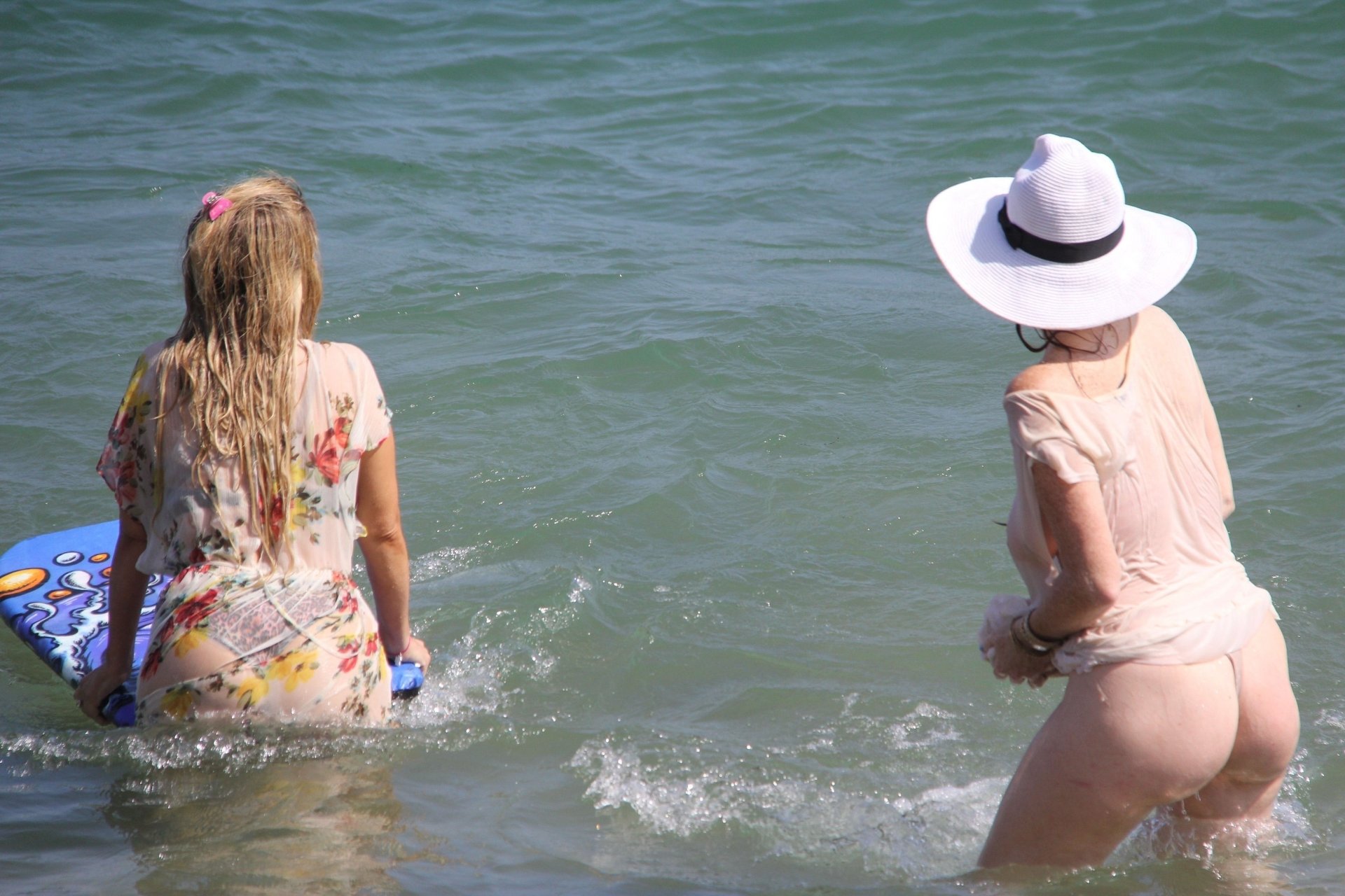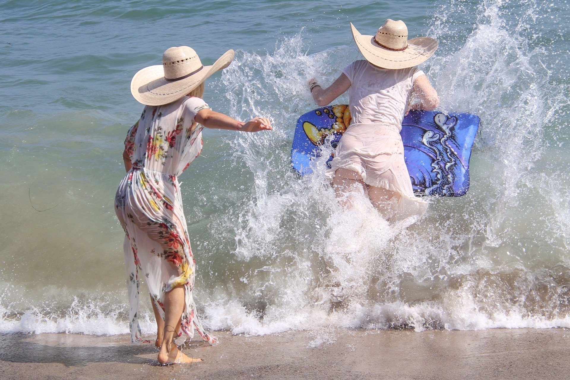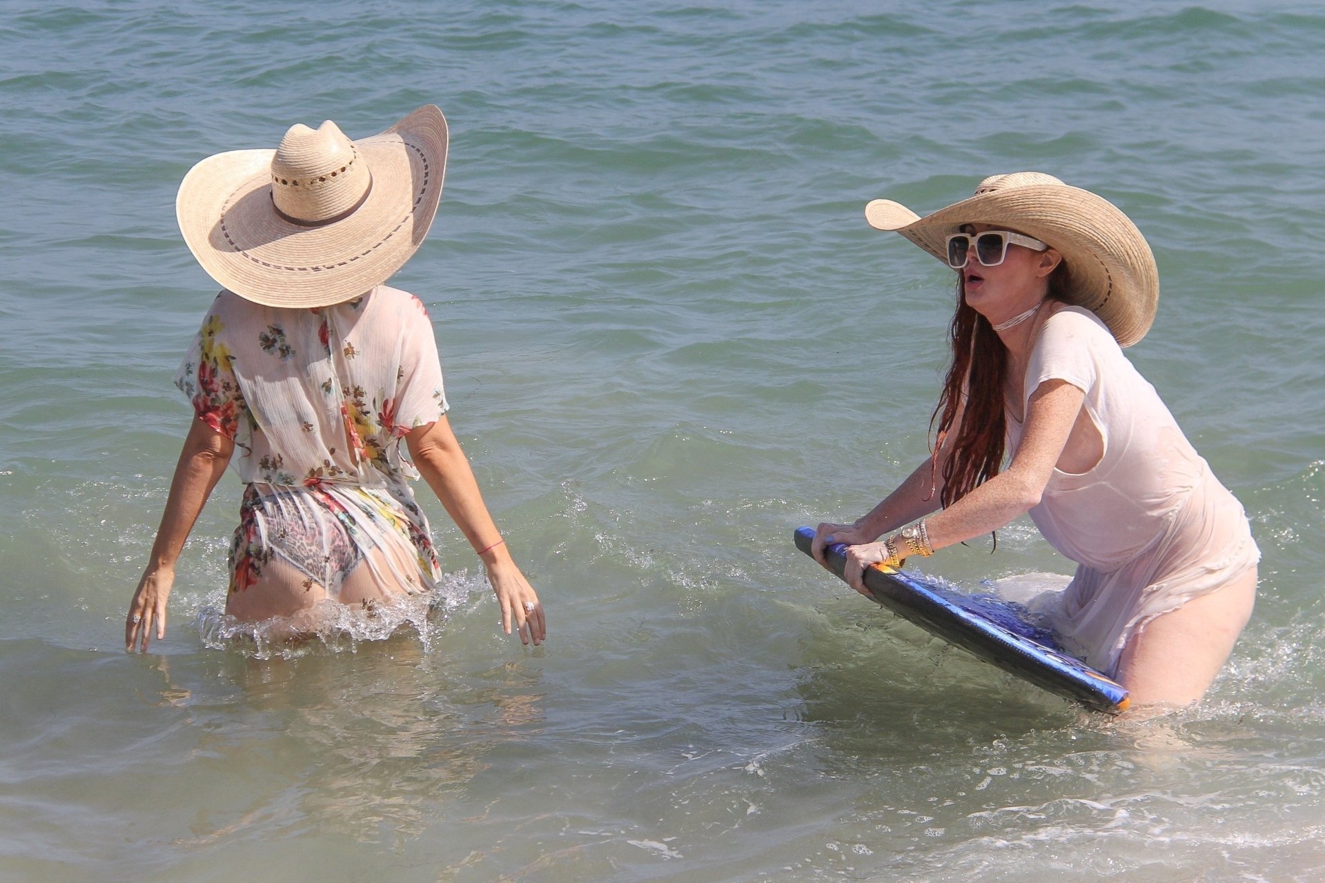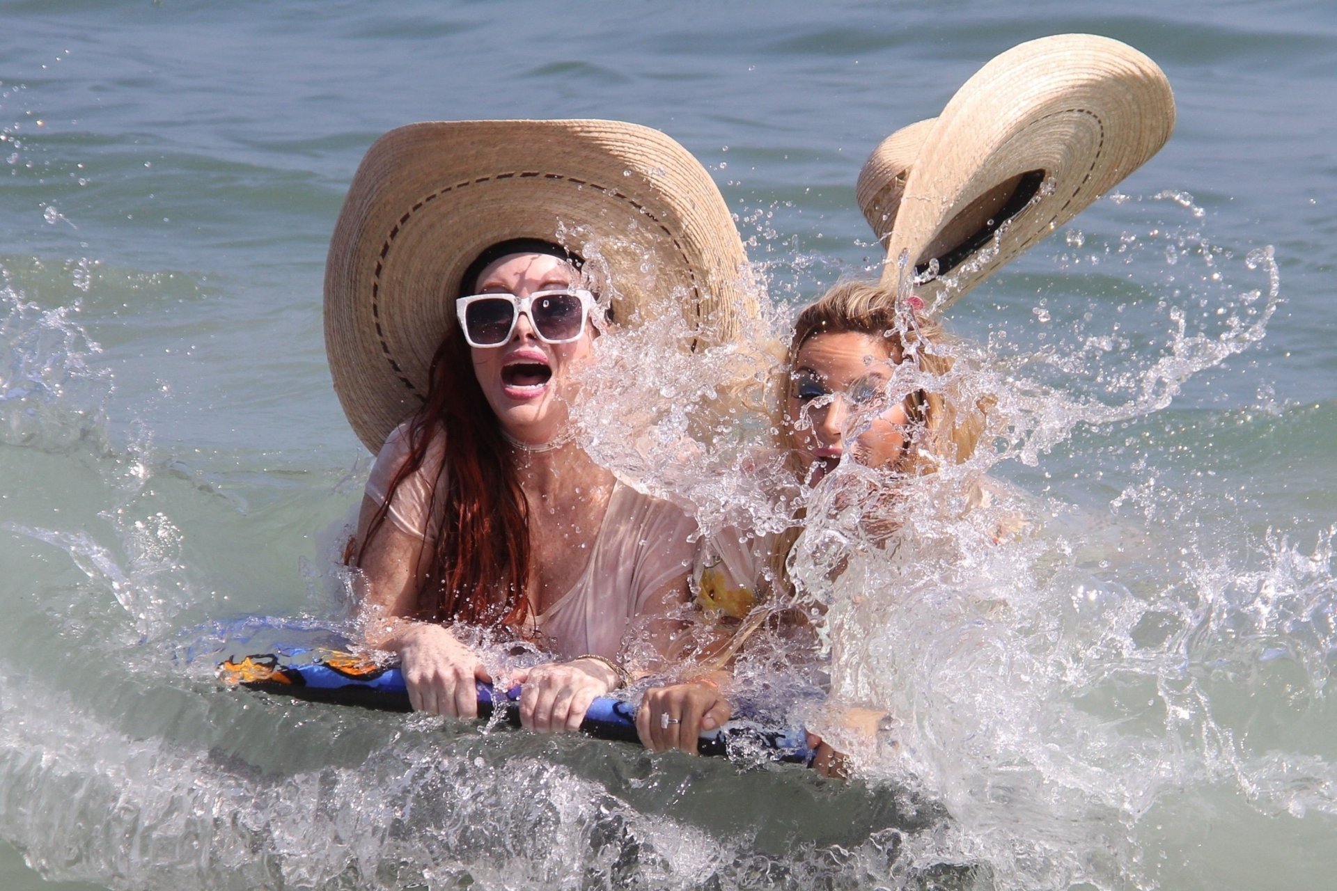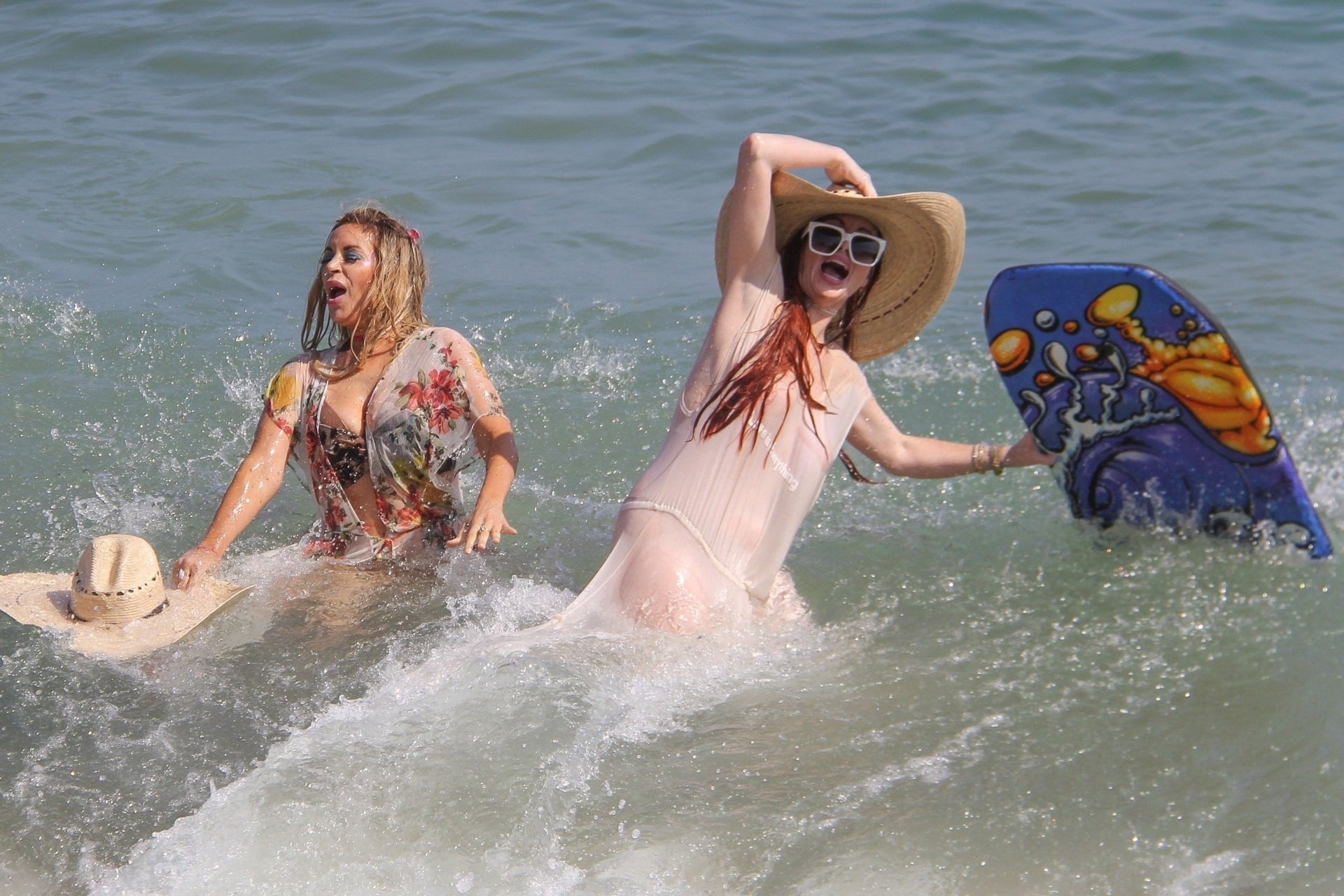 La actriz Phoebe Price y su amiga Marcela Iglesias disfrutan de un día loco en la playa juntas, 20/08/2018.
