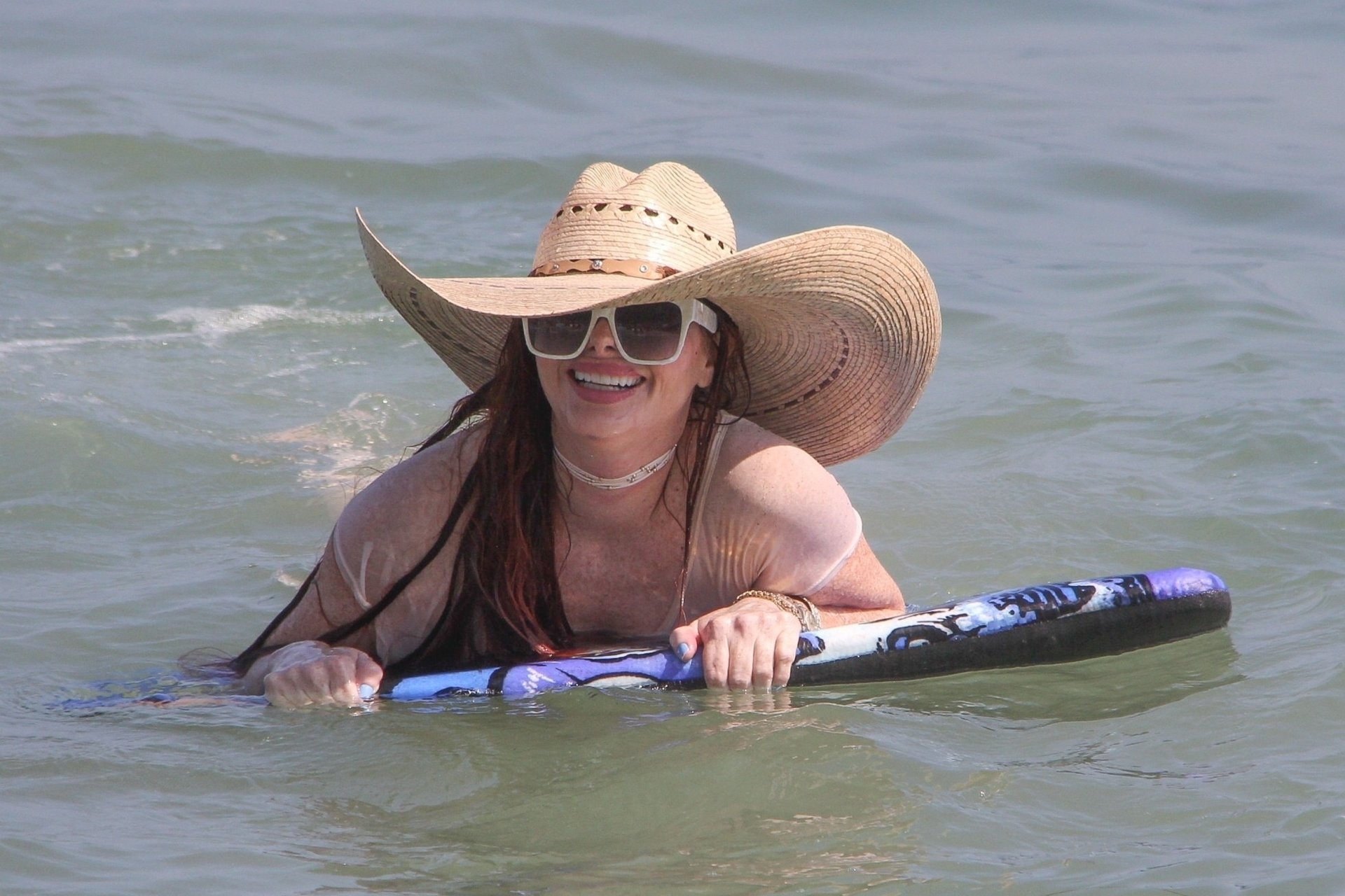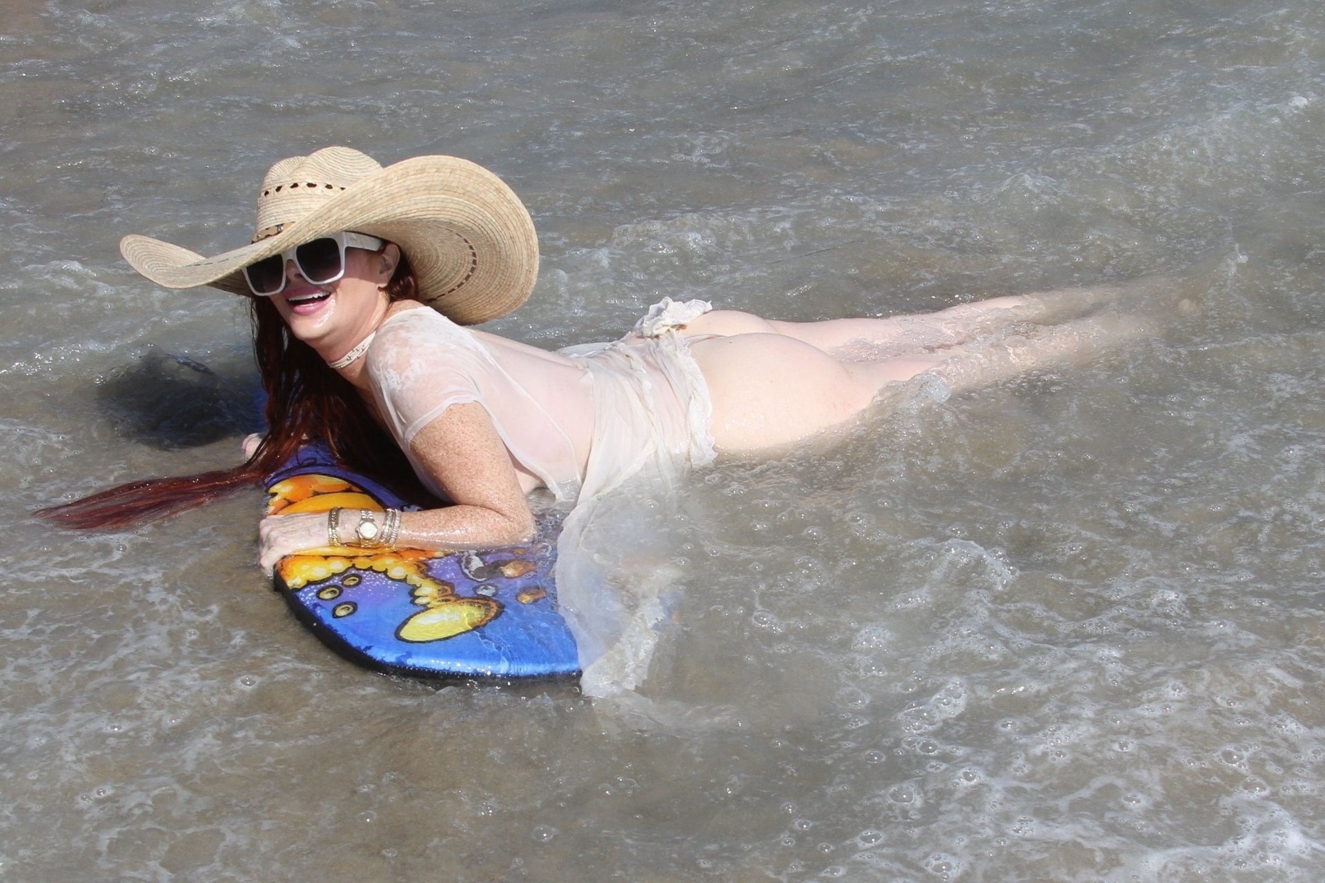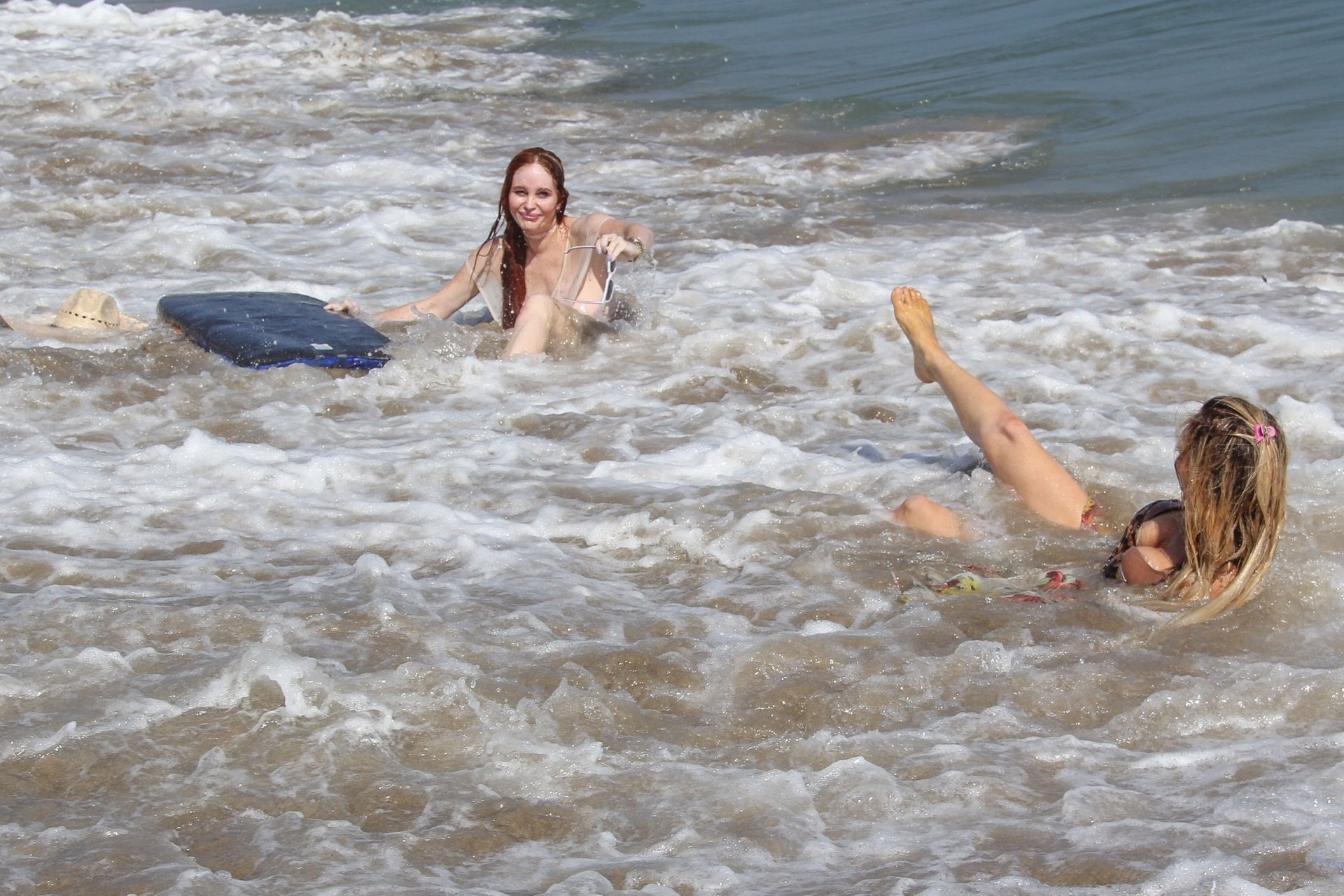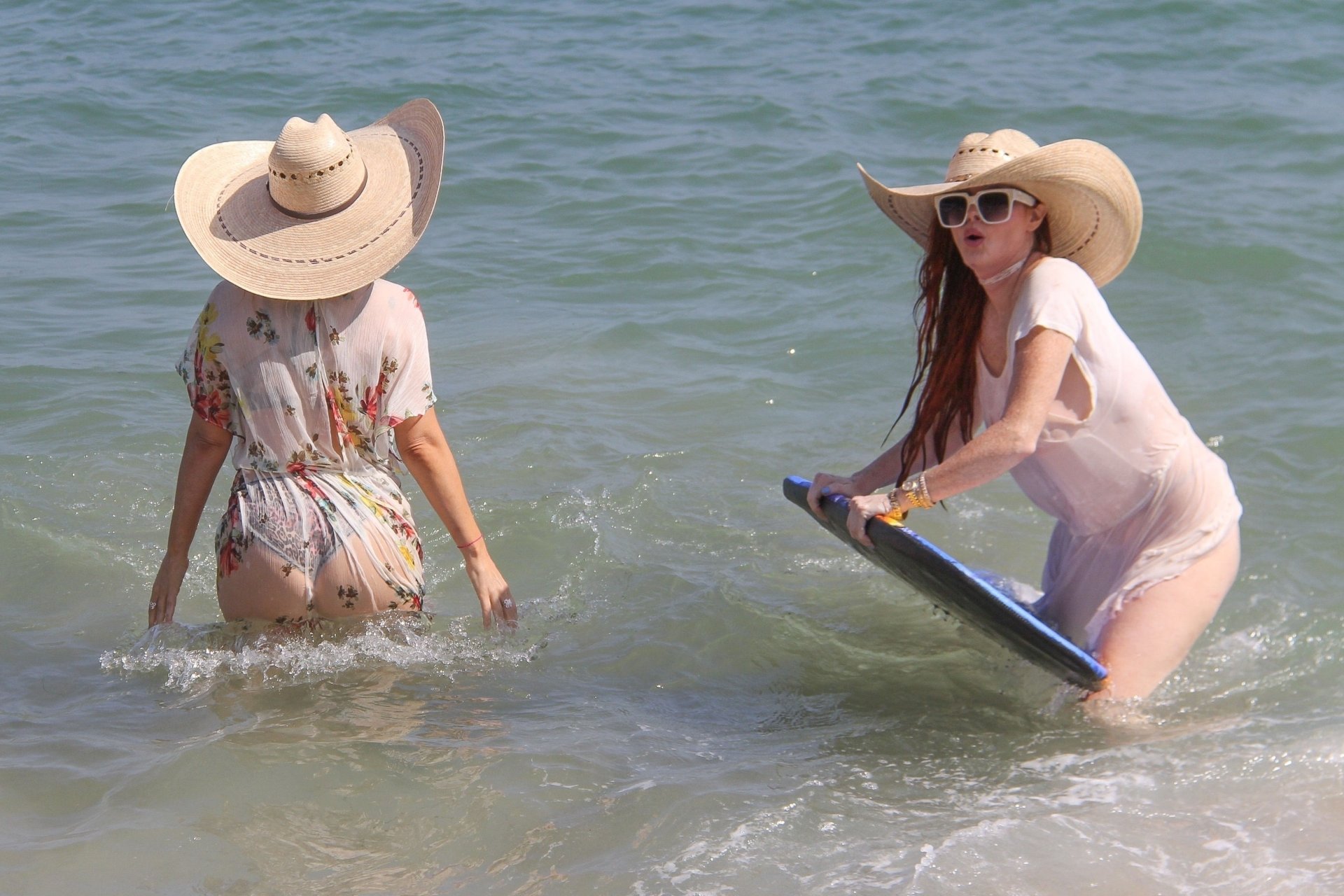 La actriz Phoebe Price y su amiga Marcela Iglesias disfrutan de un día loco en la playa juntas, 20/08/2018.