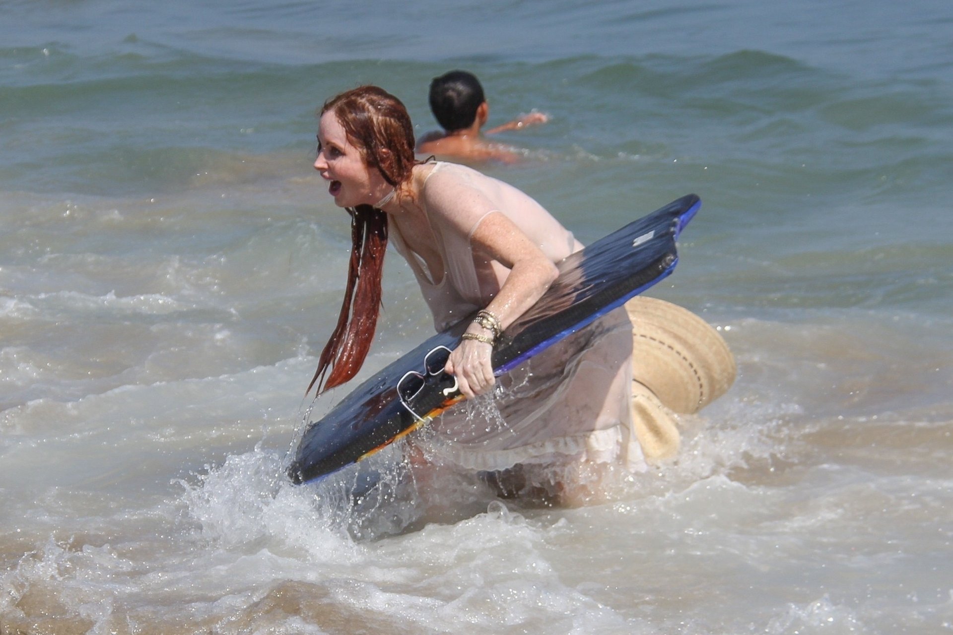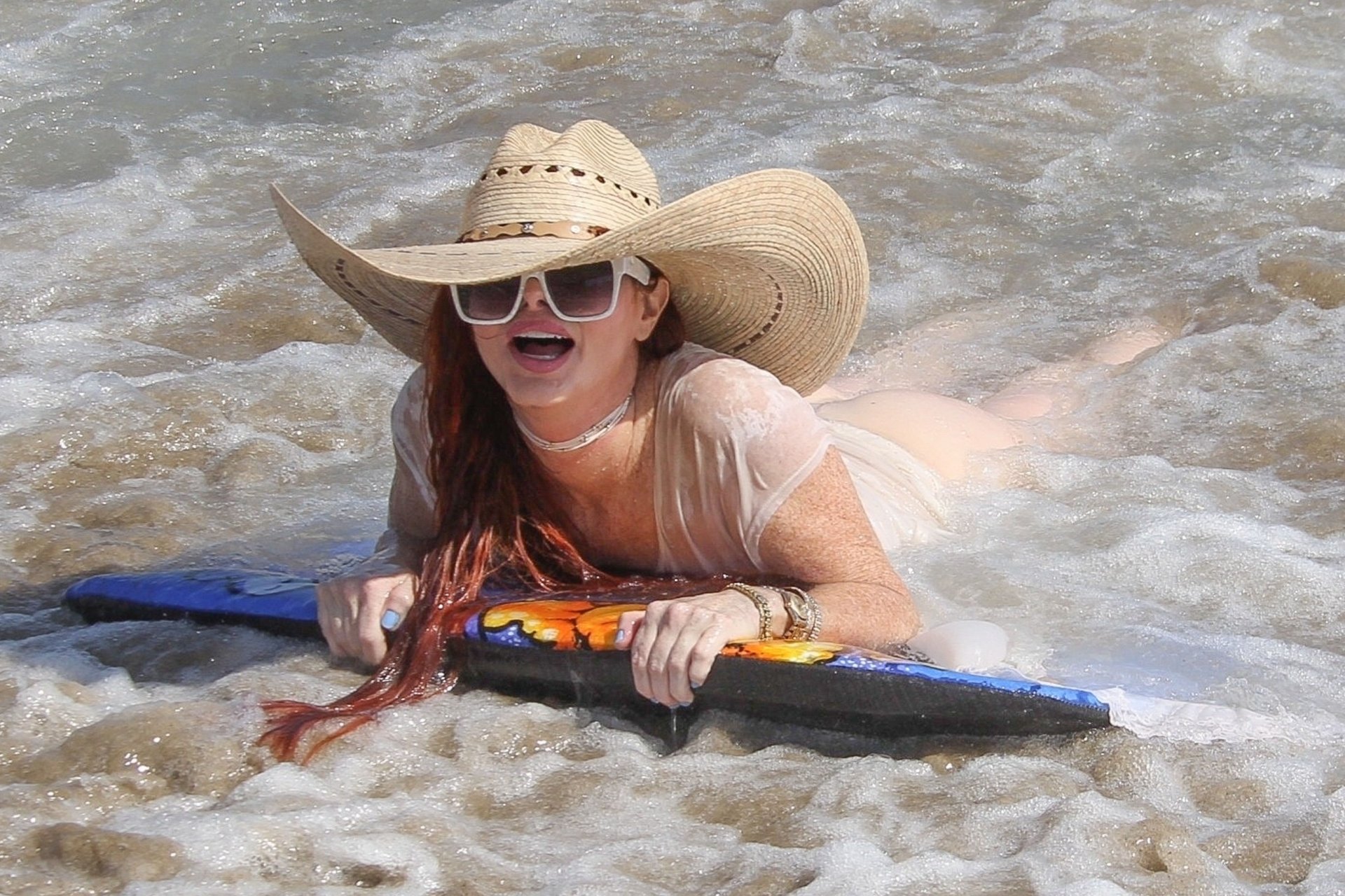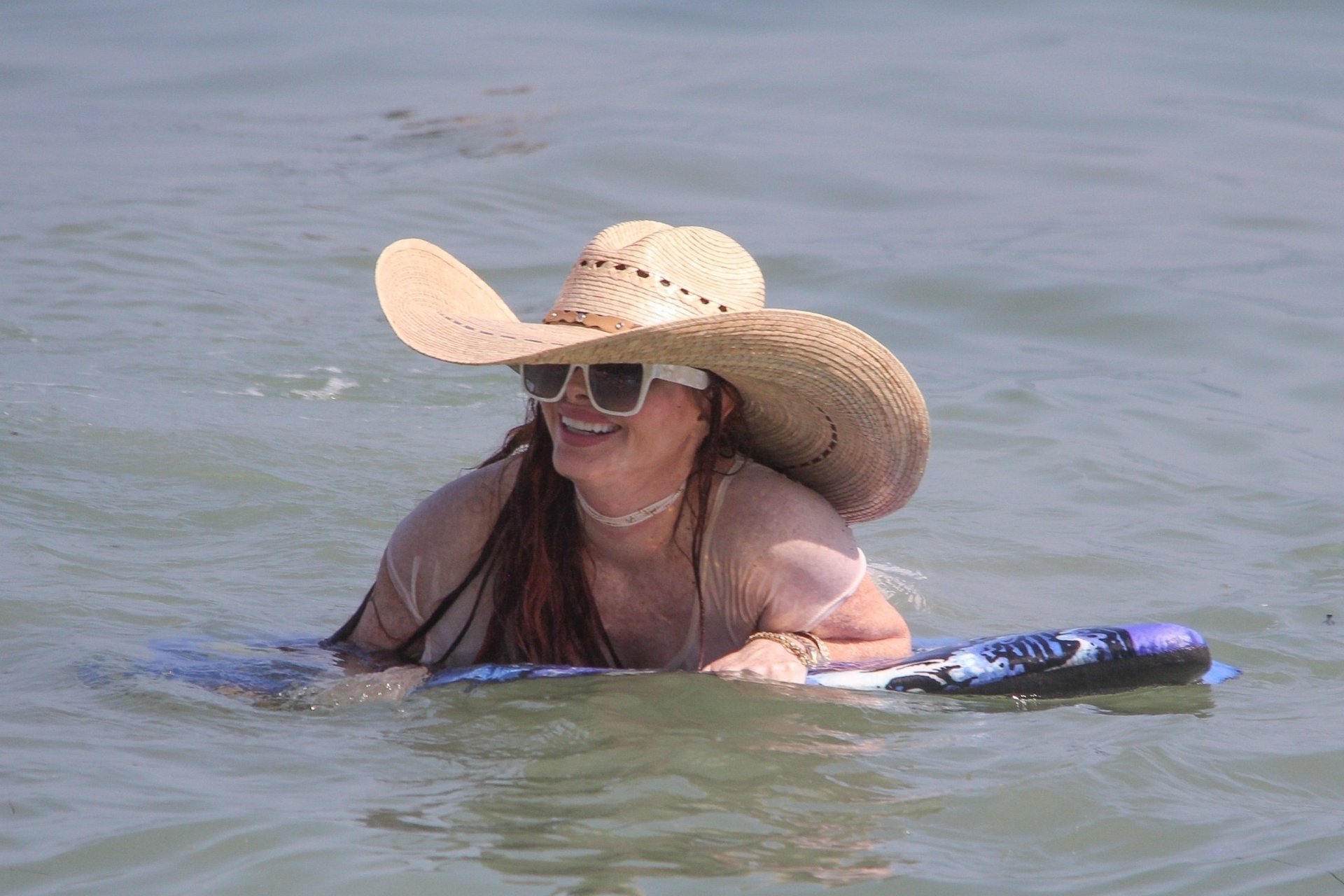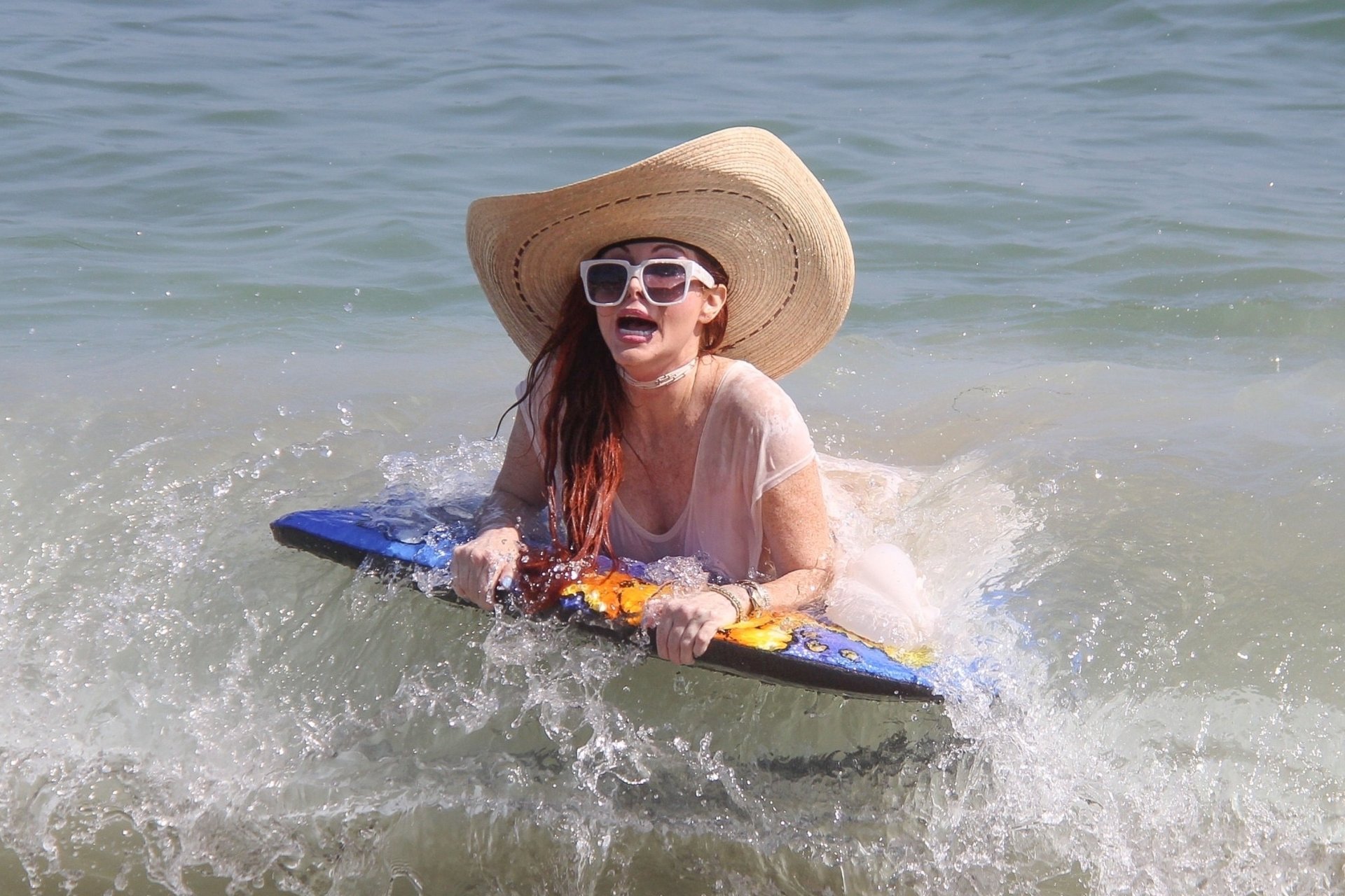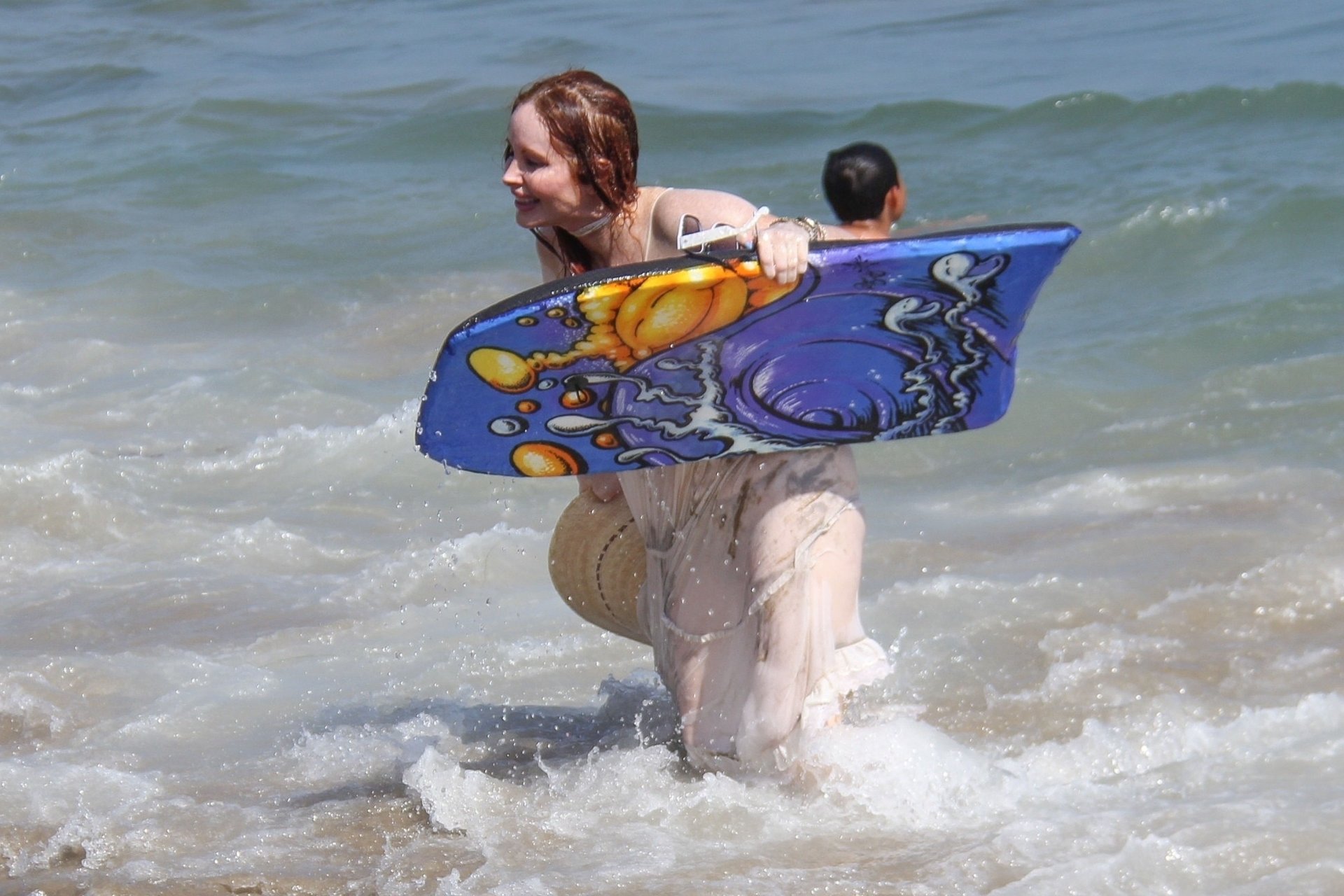 La actriz Phoebe Price y su amiga Marcela Iglesias disfrutan de un día loco en la playa juntas, 20/08/2018.