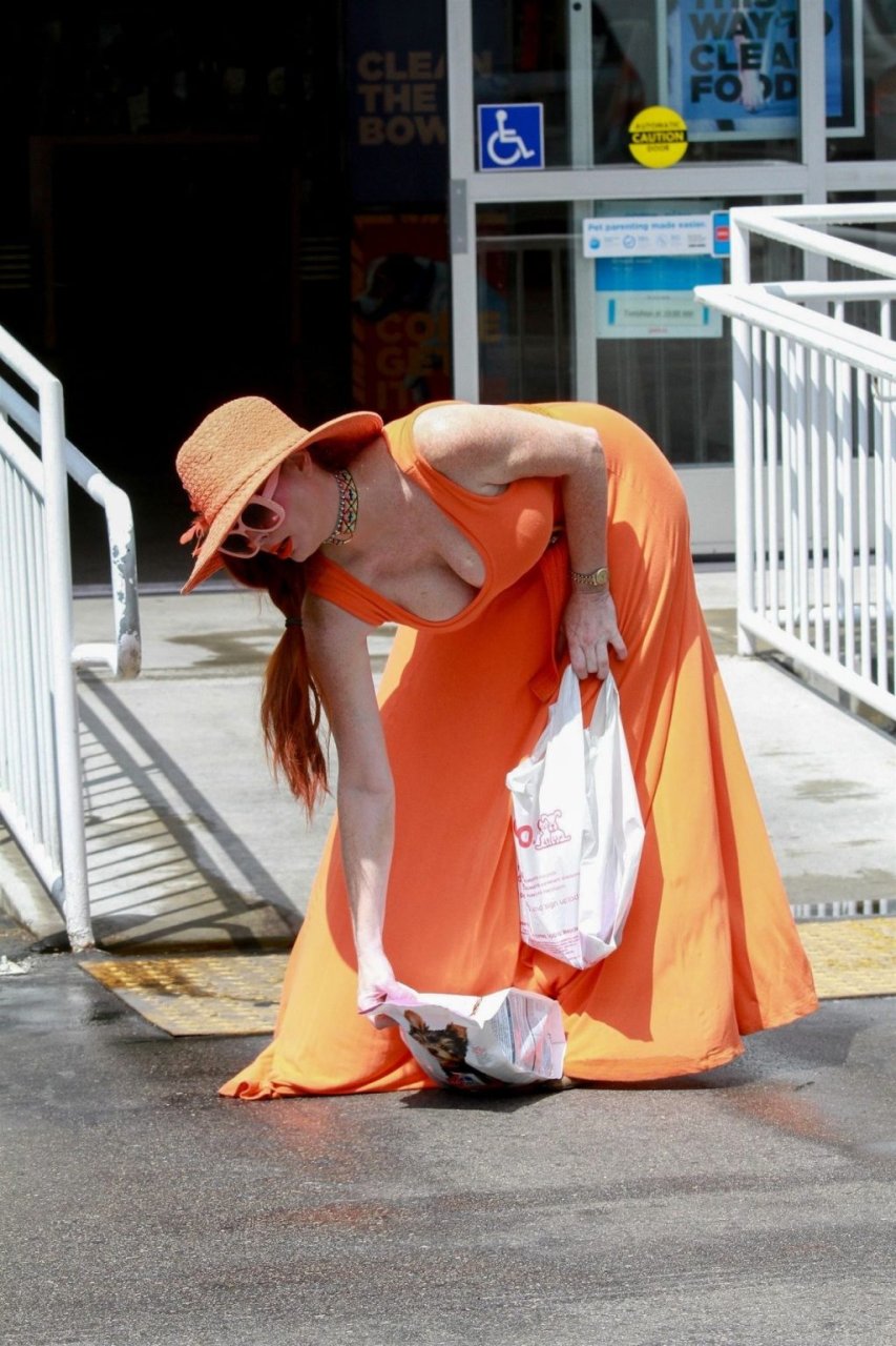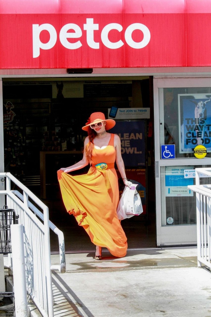 La actriz Phoebe Price sufre un fallo de vestuario y muestra que no lleva ropa interior mientras compra en Petco en Studio City, 07/08/2019. ¡Su vello encaja con el estilo del vestido!