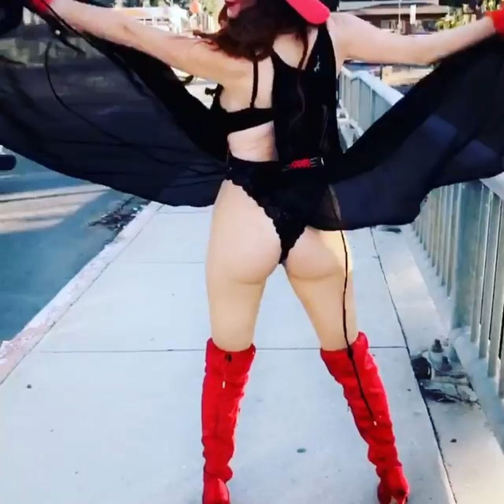 Phoebe Price revela su vestuario de Nochevieja en Los Ángeles, 30/12/2019. La actriz mostró su trasero sexy, vistiendo unas bragas de encaje.