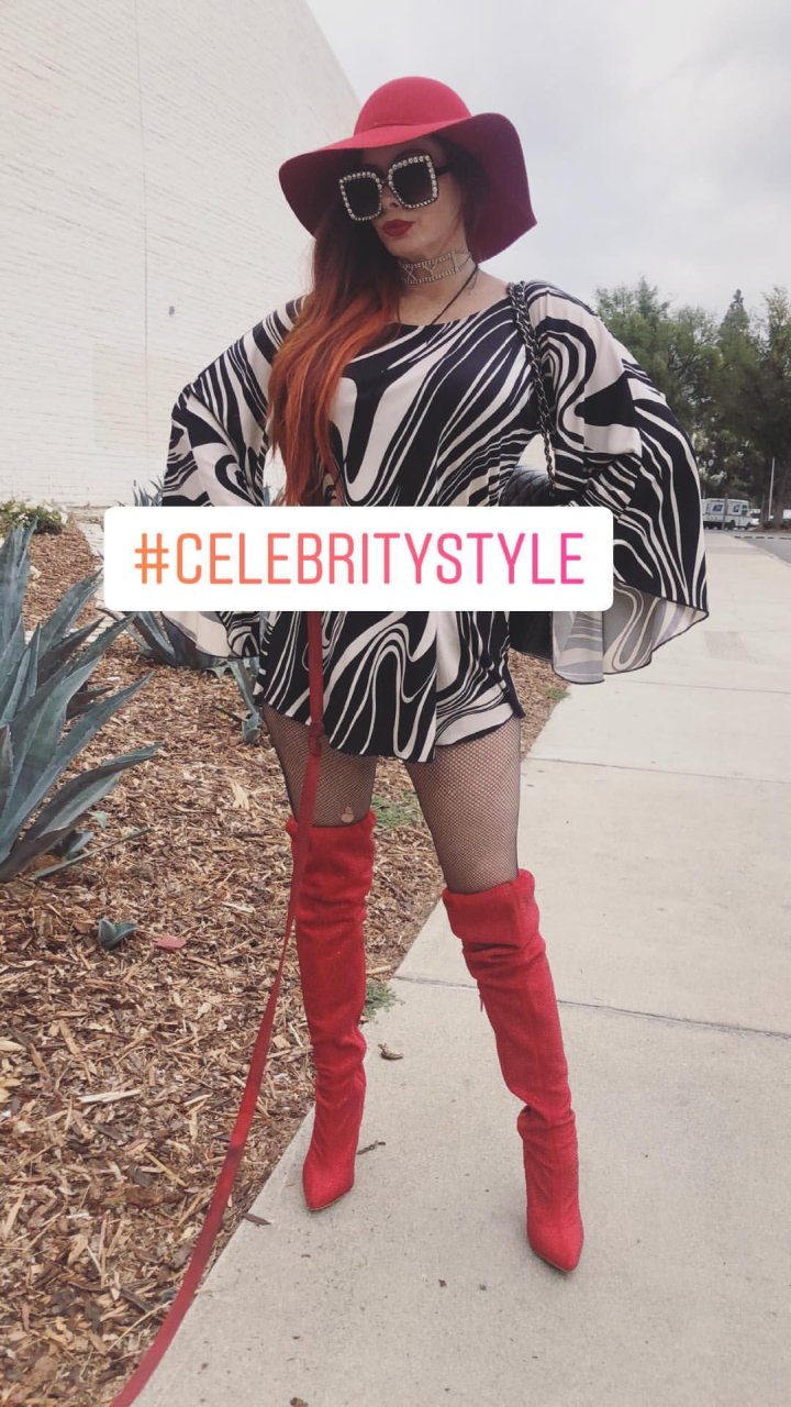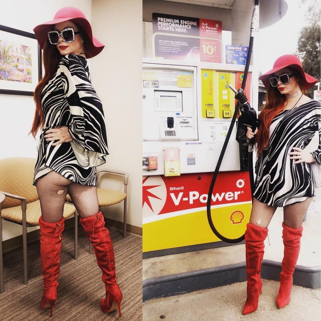 Wannabe actriz Phoebe Price (45) hace su viaje diario a Beverly Hills, 24/05/2018. Phoebe, que usa el mismo par de medias de red todos los días mientras busca atención, mostraba el agujero que está en la parte trasera de las medias.