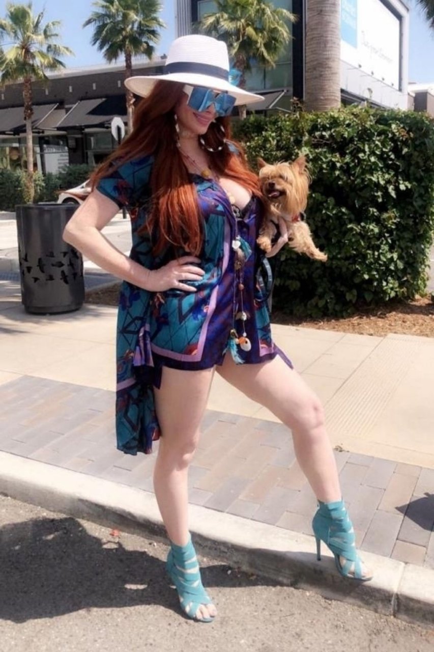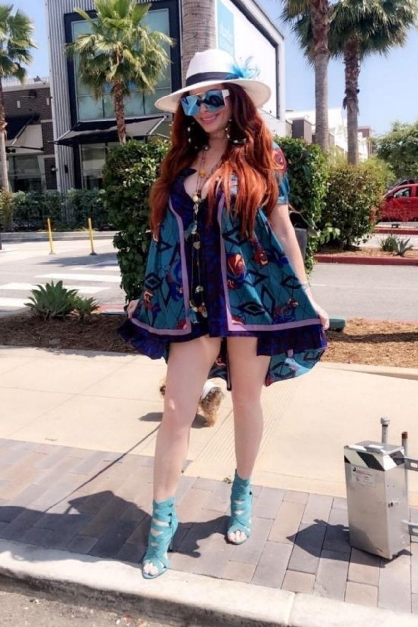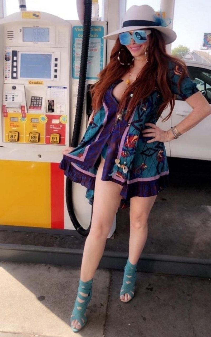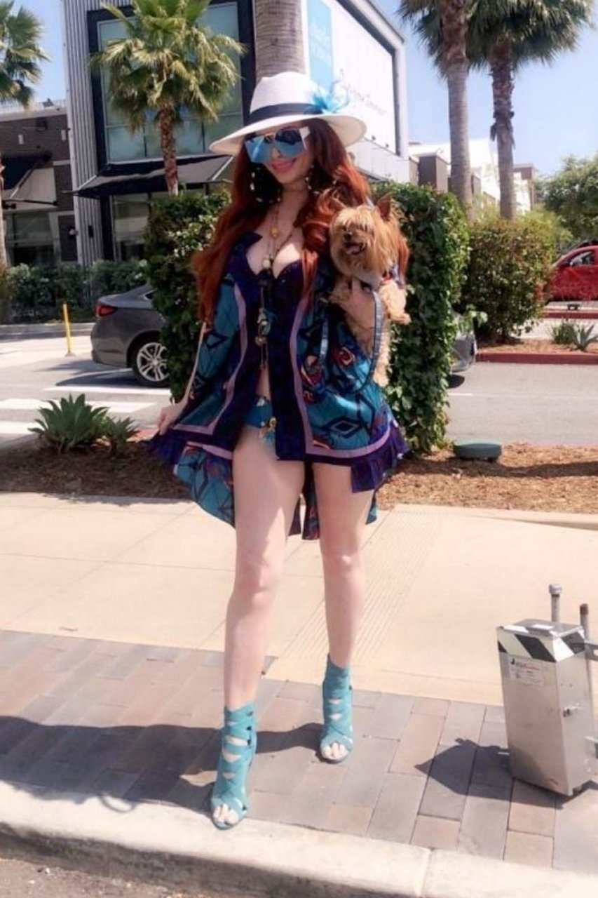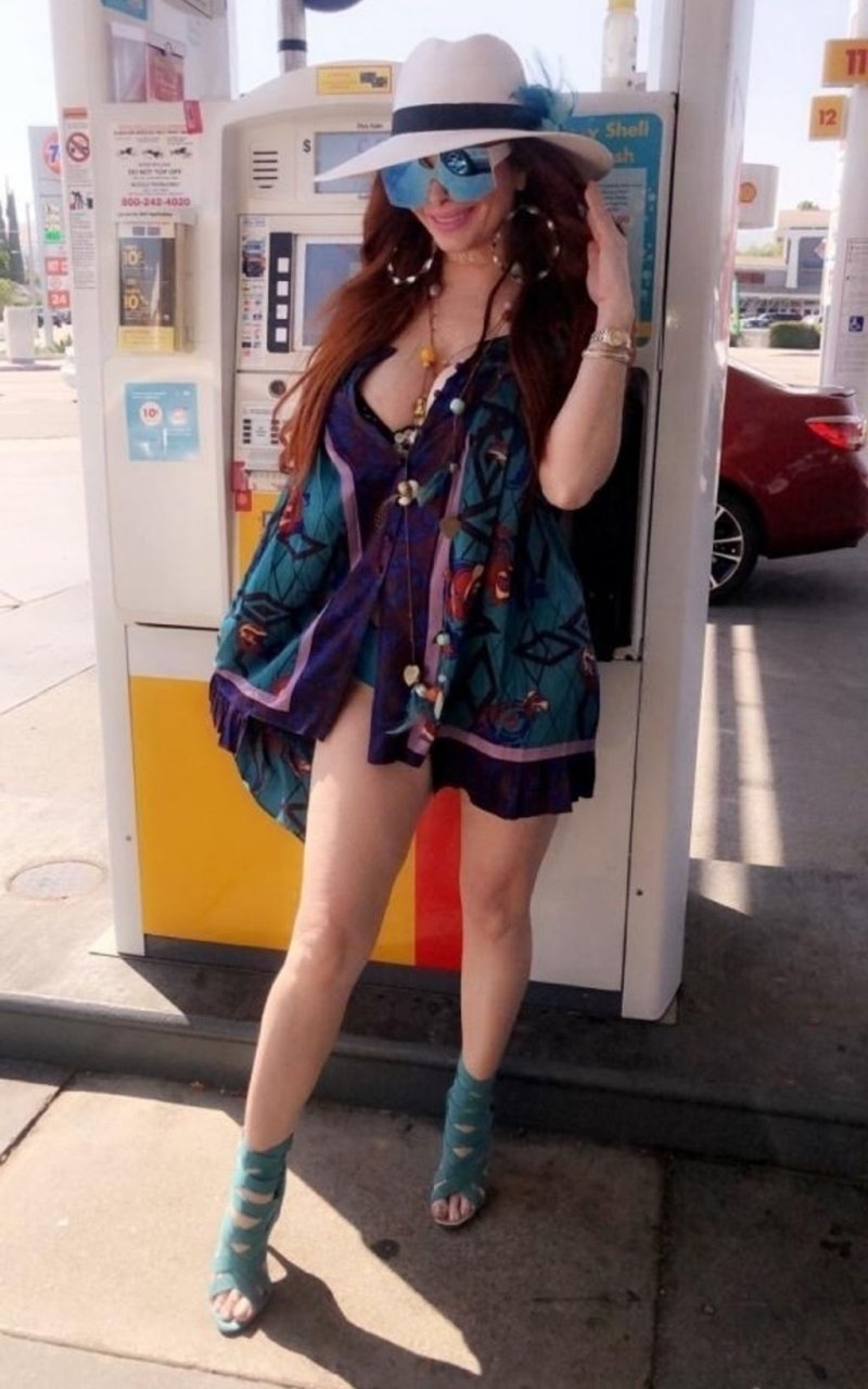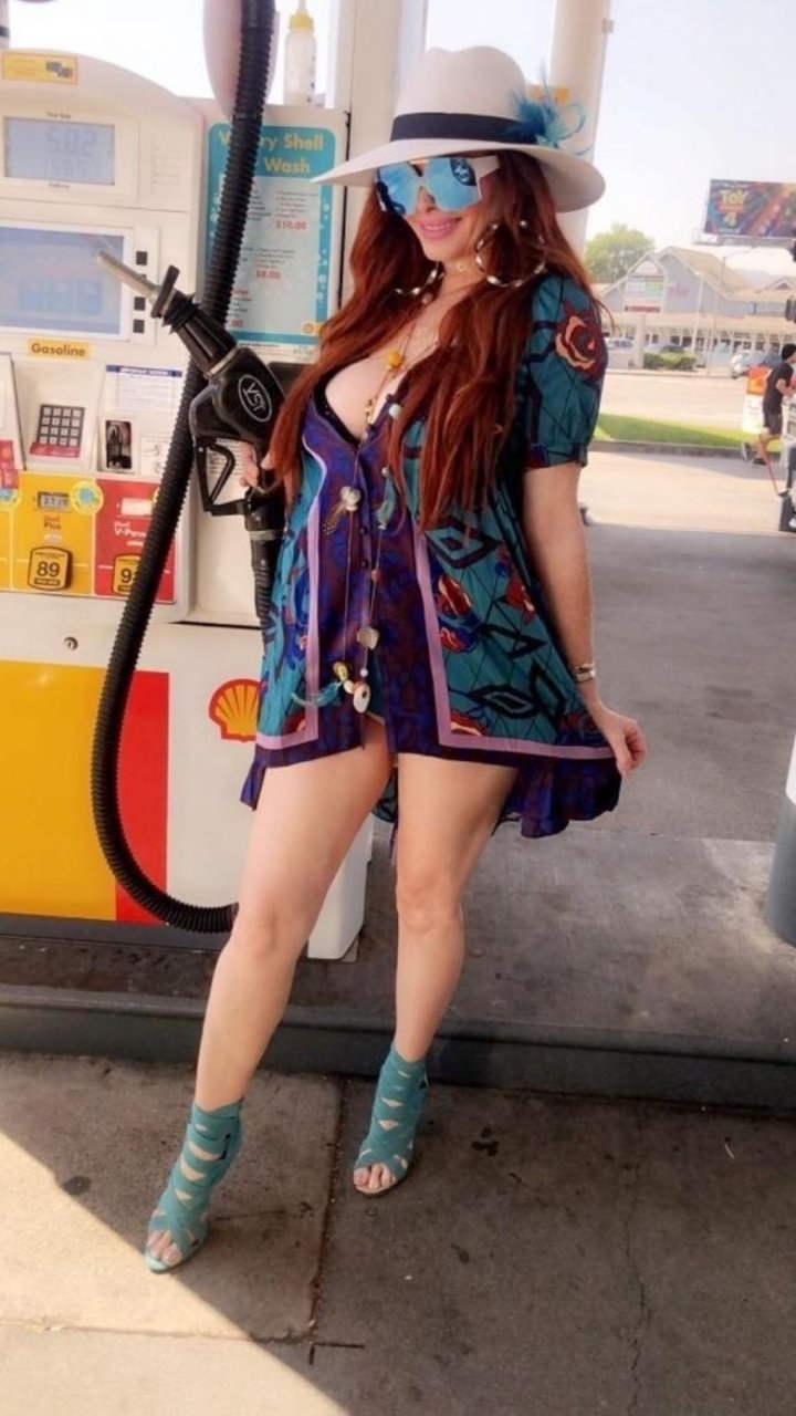 La aspirante a actriz Phoebe Price parece que olvidó sus pantalones para hacer recados en Los Ángeles, 05/06/2019. La eternamente aspirante a actriz paseó a su perro, luego puso gasolina con lo que parecía ropa interior color verde azulado y una camisa colorida.