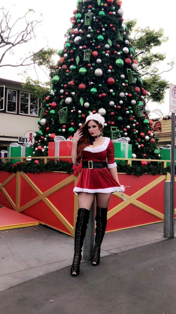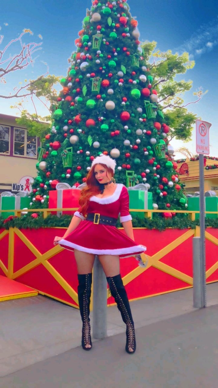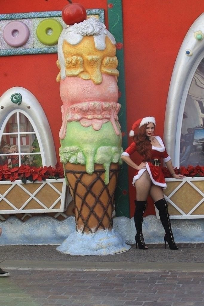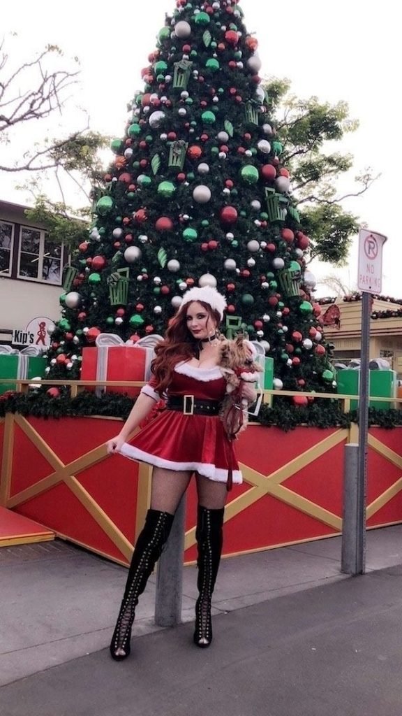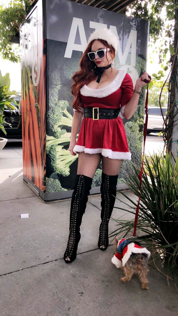 Actriz Phoebe Price (45) lleva un inapropiado disfraz de Santa Claus en el Taller de Santa en The Grove en Los Ángeles, 10/12/2017.