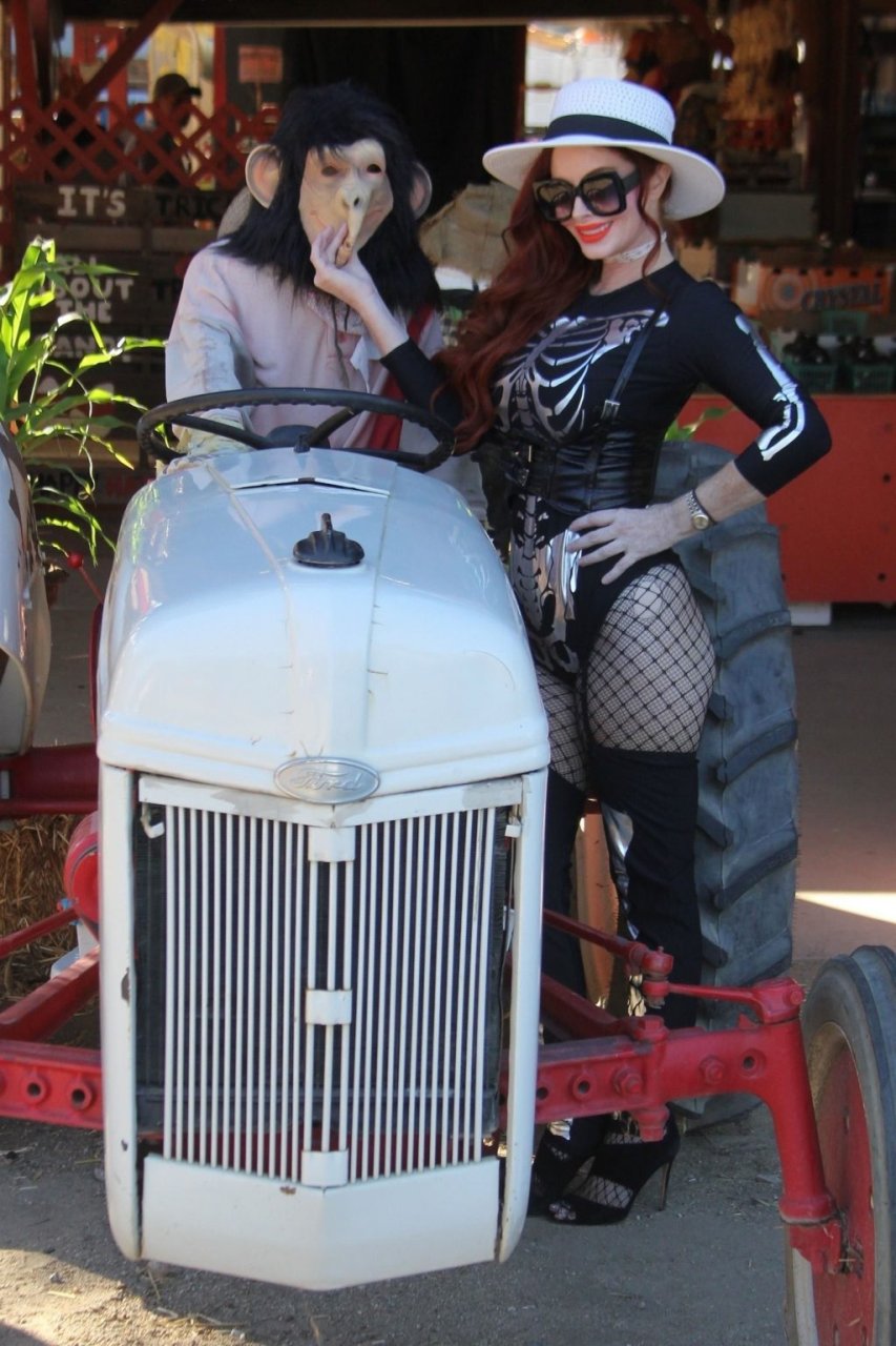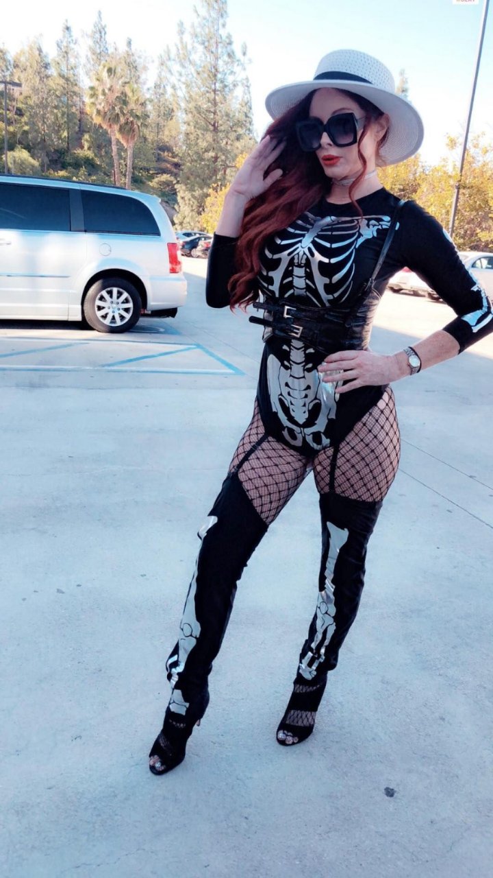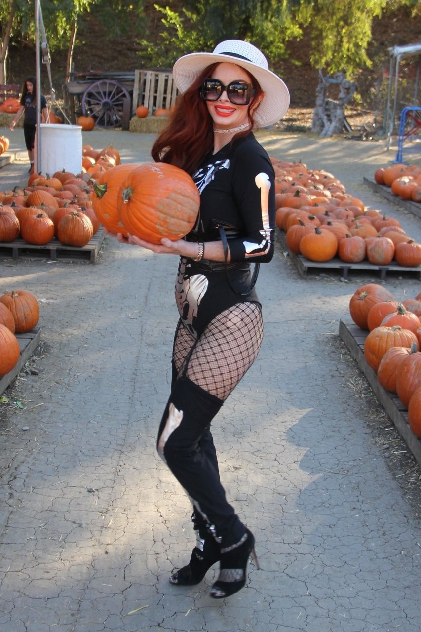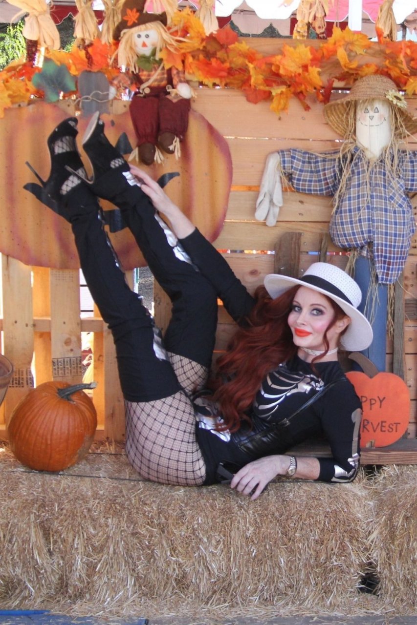 La actriz Phoebe Price fue vista posando como un esqueleto en el campo de calabazas en Los Ángeles, 17/10/2018.