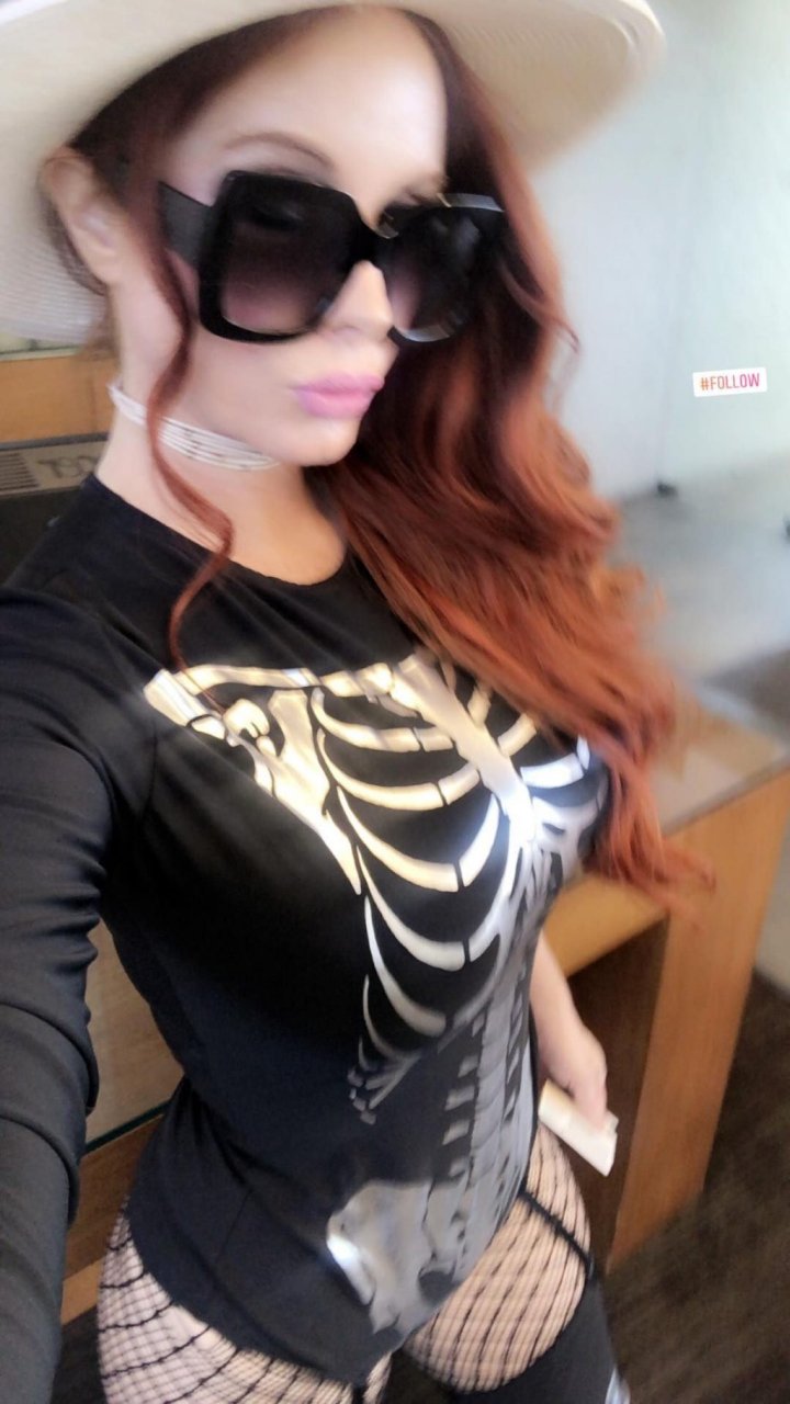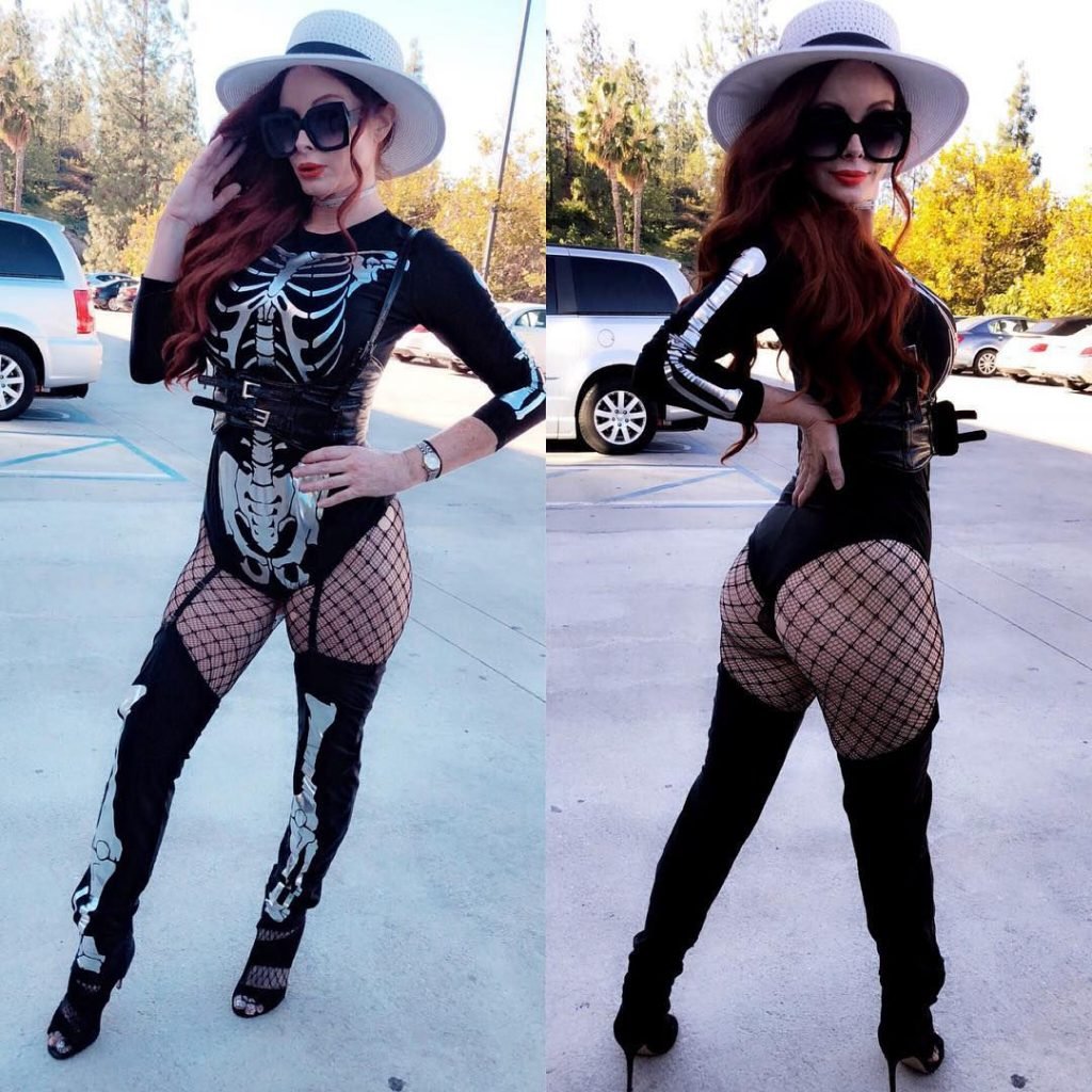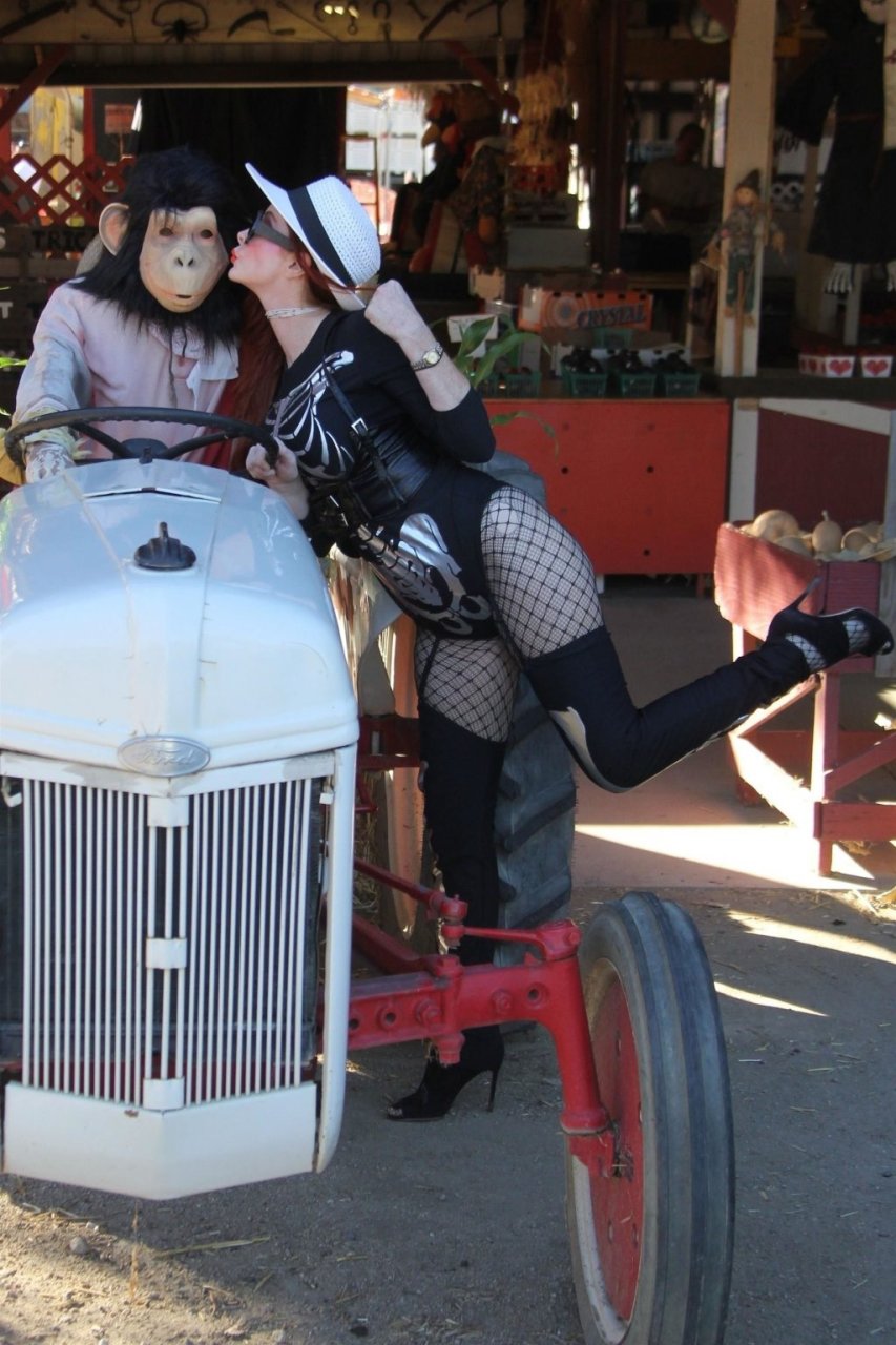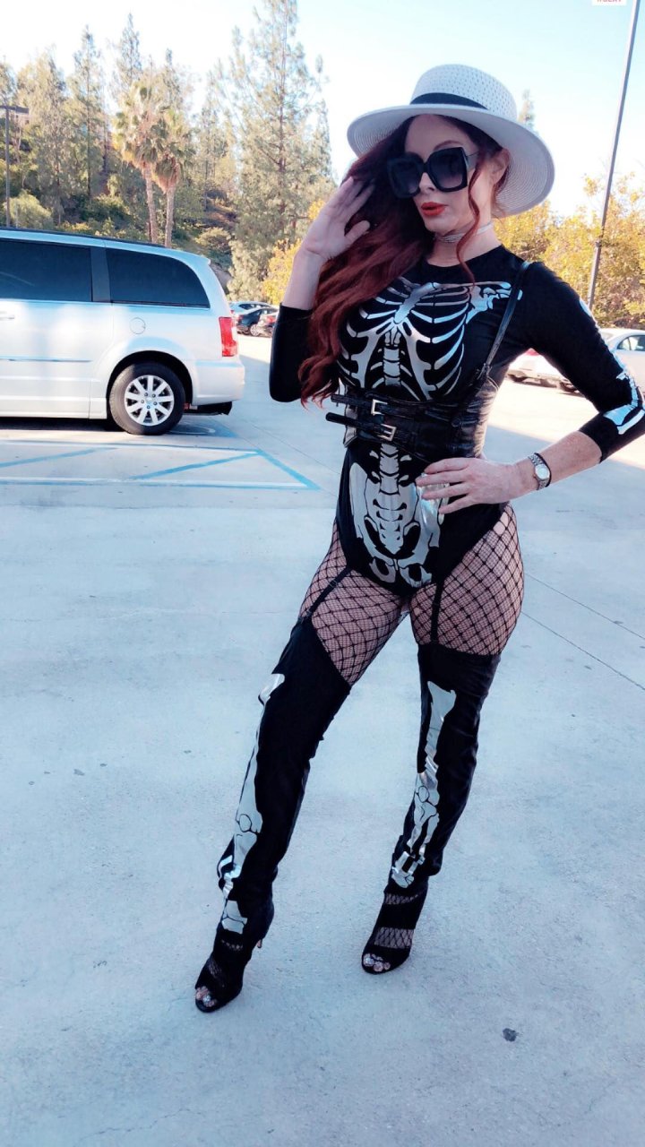 La actriz Phoebe Price fue vista posando como un esqueleto en el campo de calabazas en Los Ángeles, 17/10/2018.