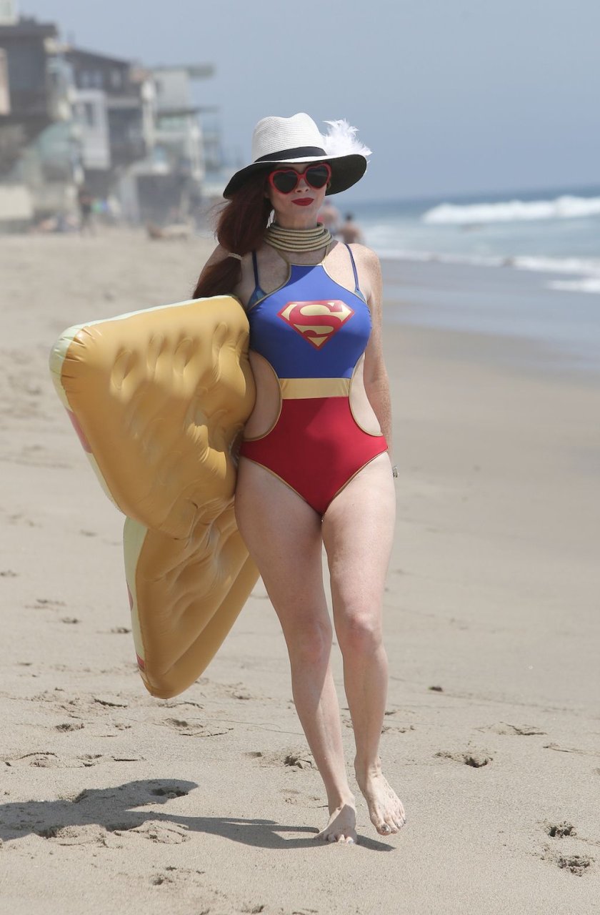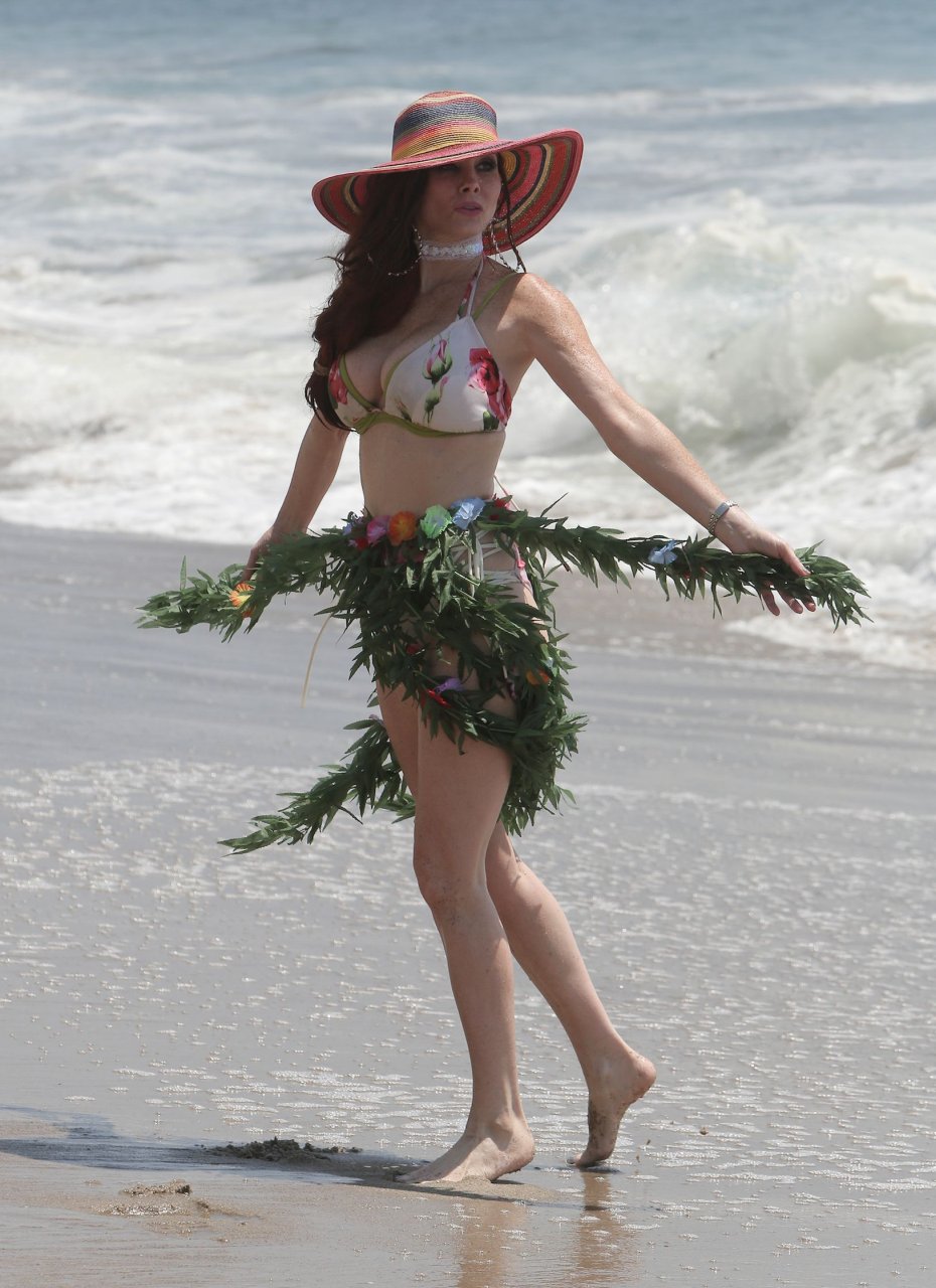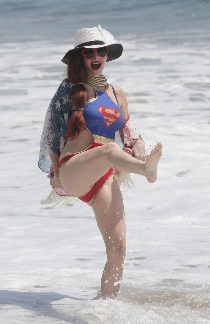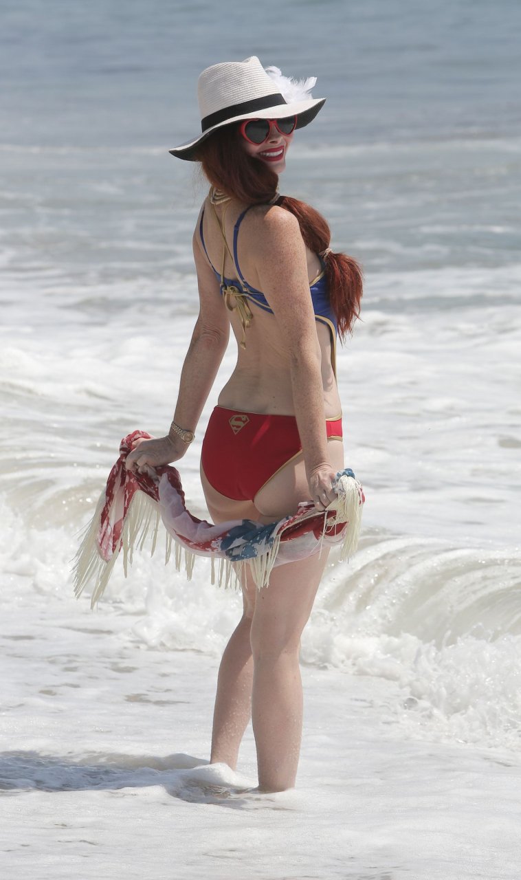 Phoebe Price sufrió un fallo de vestuario en la playa de Malibu, 21/08/2016. Phoebe Price es una actriz de Alabama. Edad: 43 (27 de septiembre de 1972).