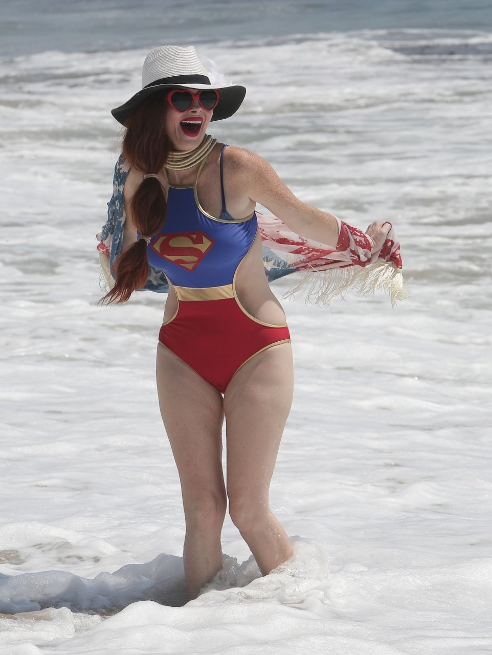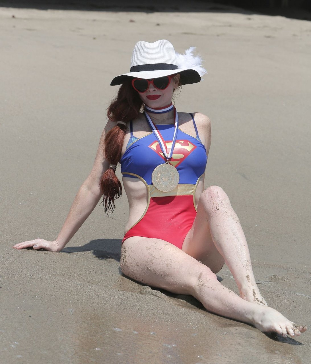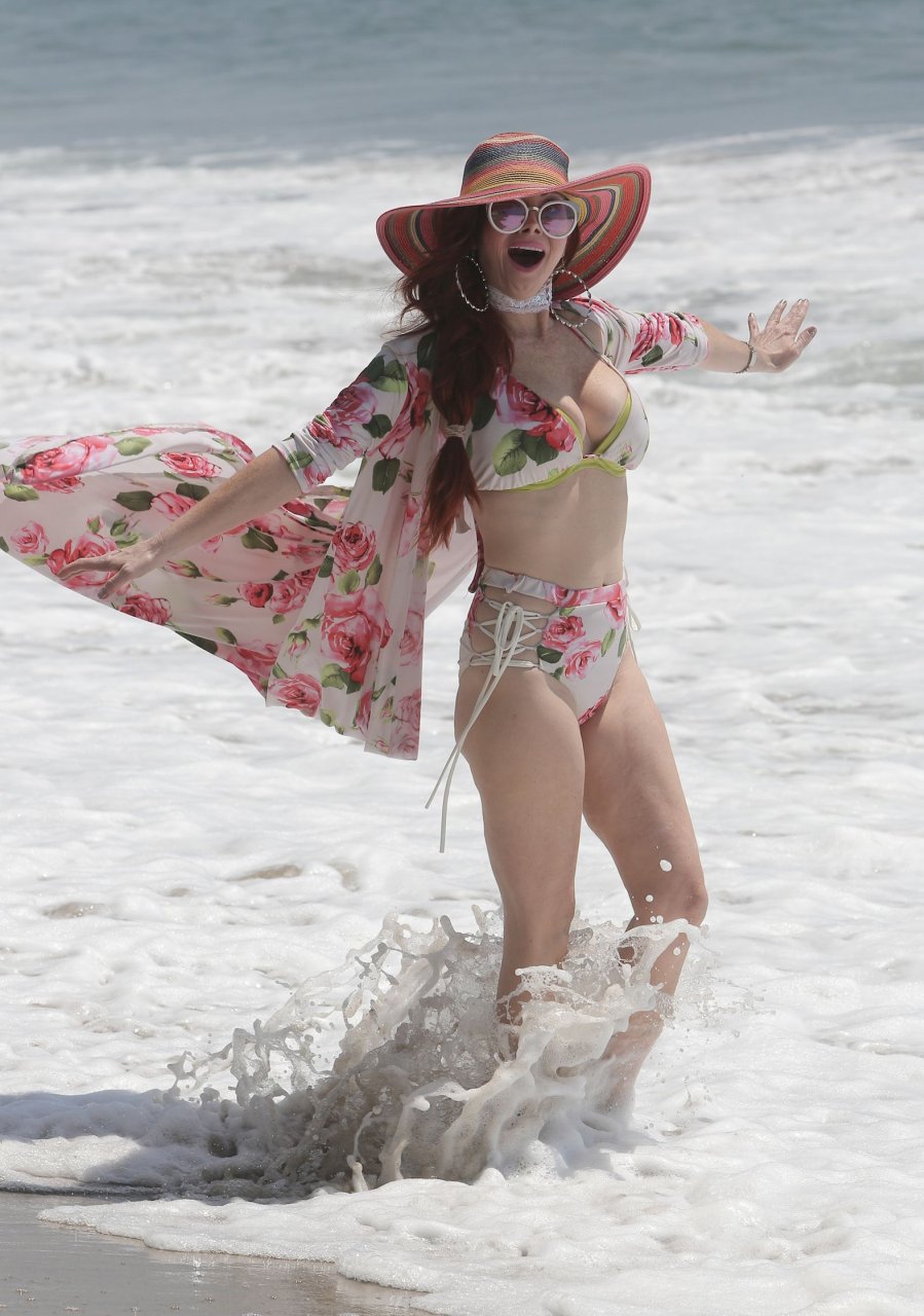 Phoebe Price sufrió un fallo de vestuario en la playa de Malibu, 21/08/2016. Phoebe Price es una actriz de Alabama. Edad: 43 (27 de septiembre de 1972).