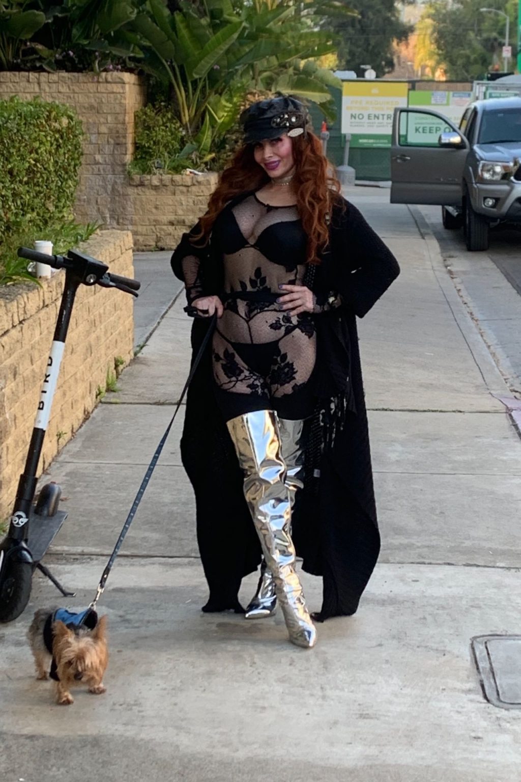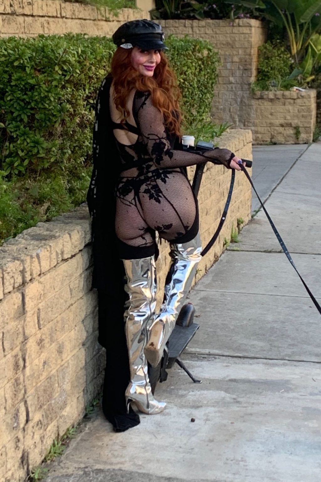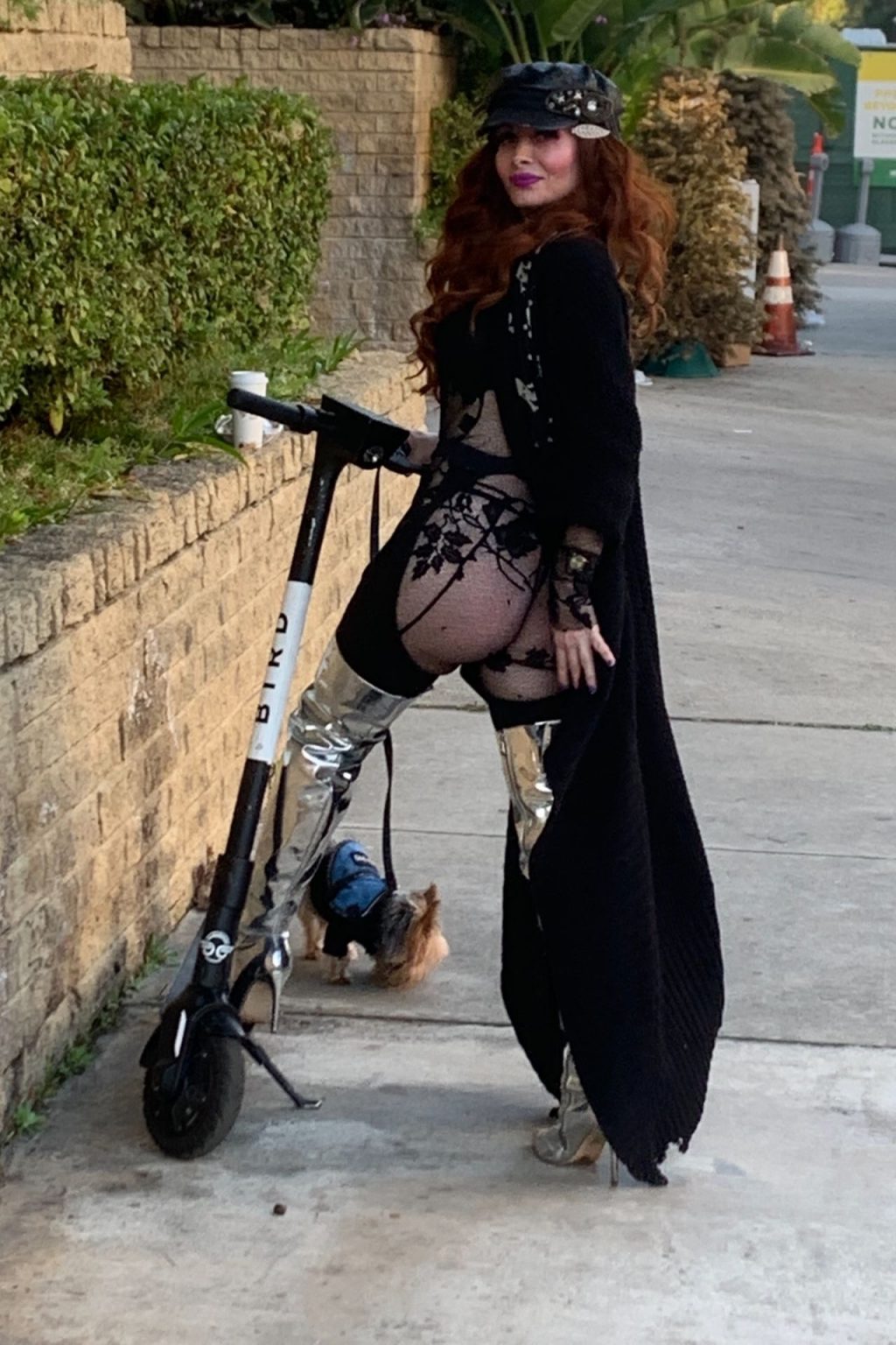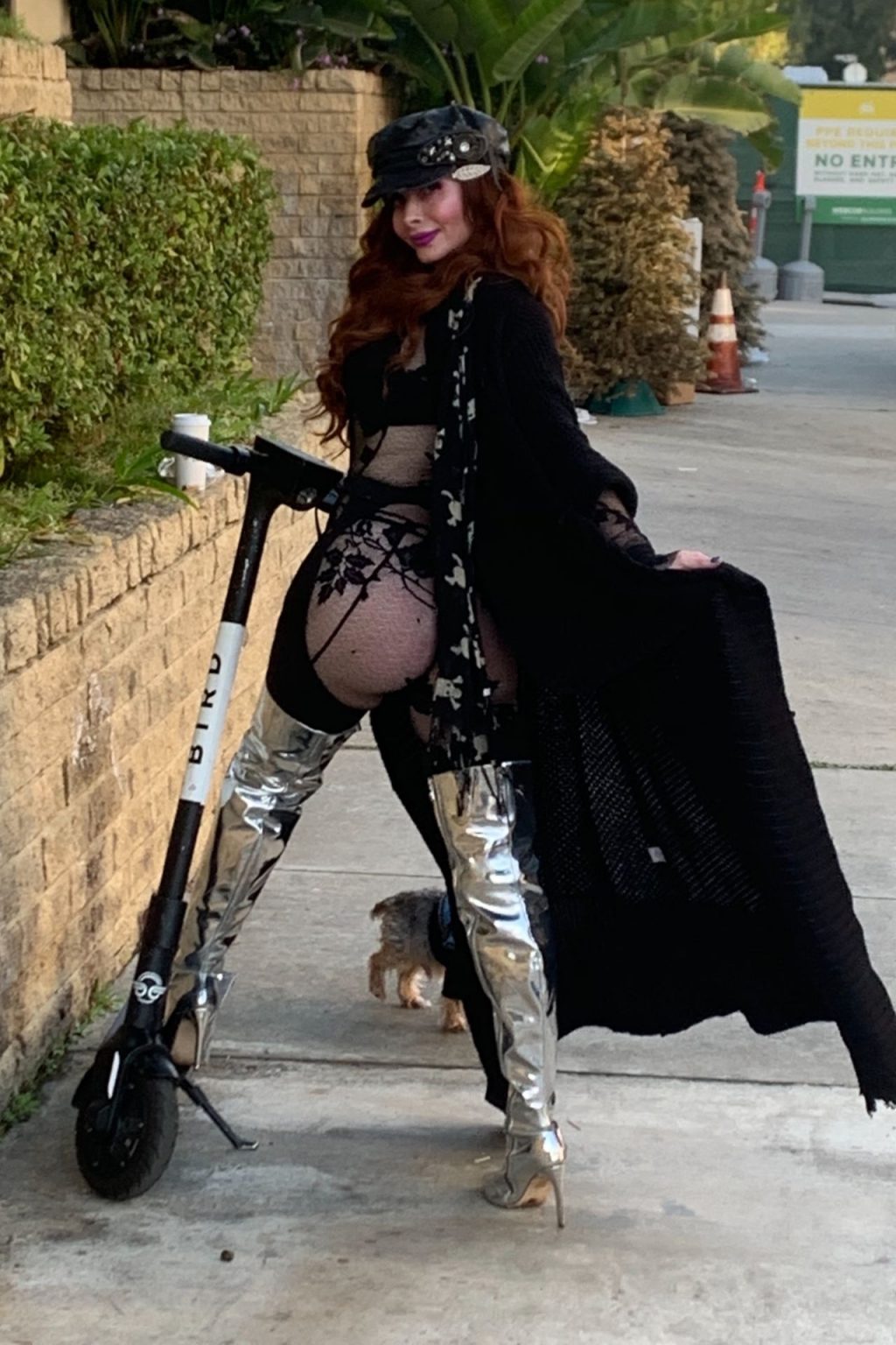 La actriz Phoebe Price no deja nada a la imaginación, vistiendo un tanga, mientras pasea a su perro en un scooter por la ciudad en Los Ángeles, 22/01/2020.