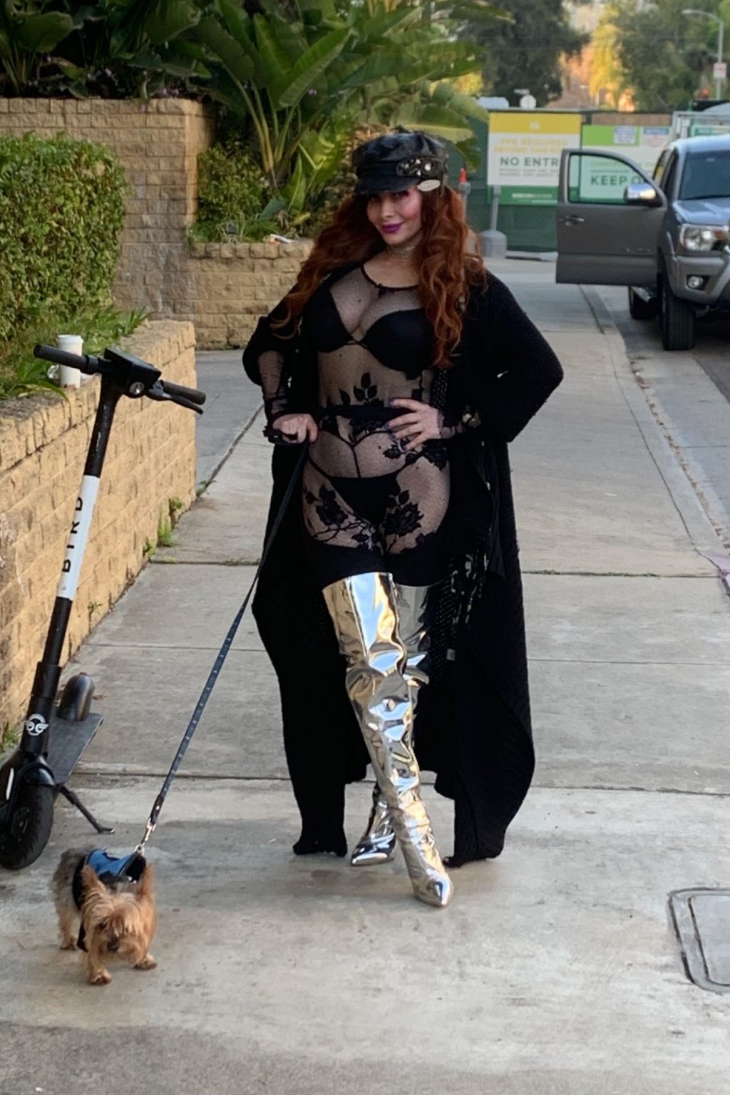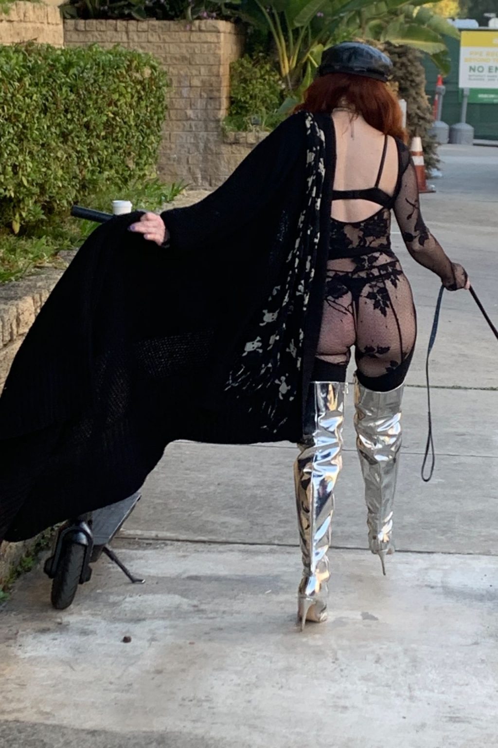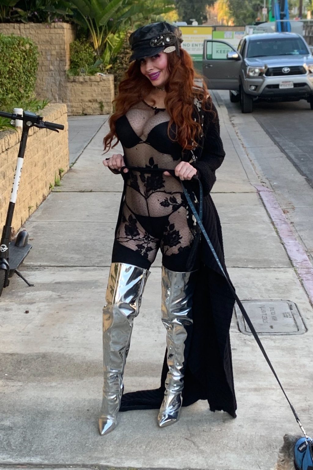 La actriz Phoebe Price no deja nada a la imaginación, vistiendo un tanga, mientras pasea a su perro en un scooter por la ciudad en Los Ángeles, 22/01/2020.