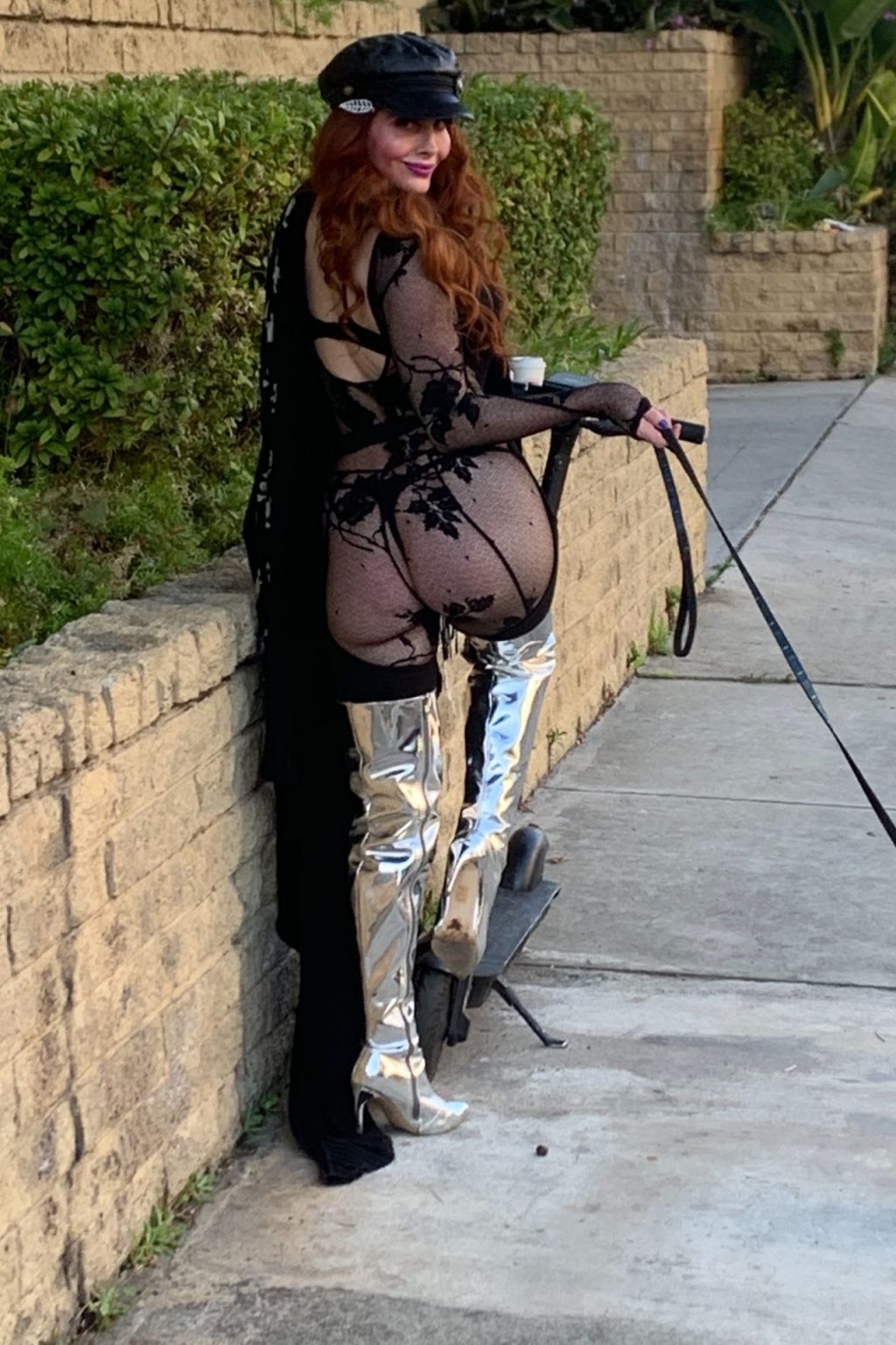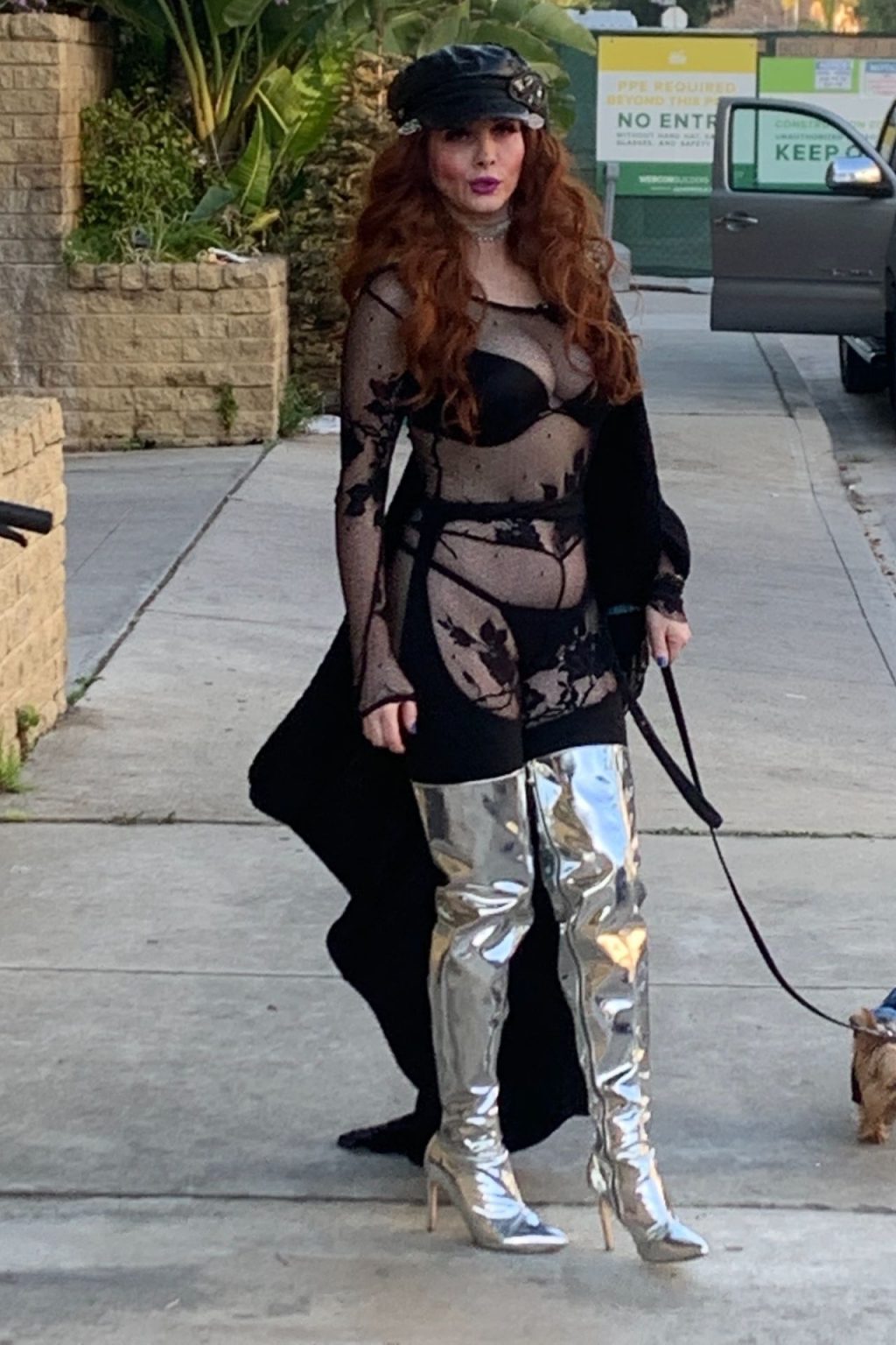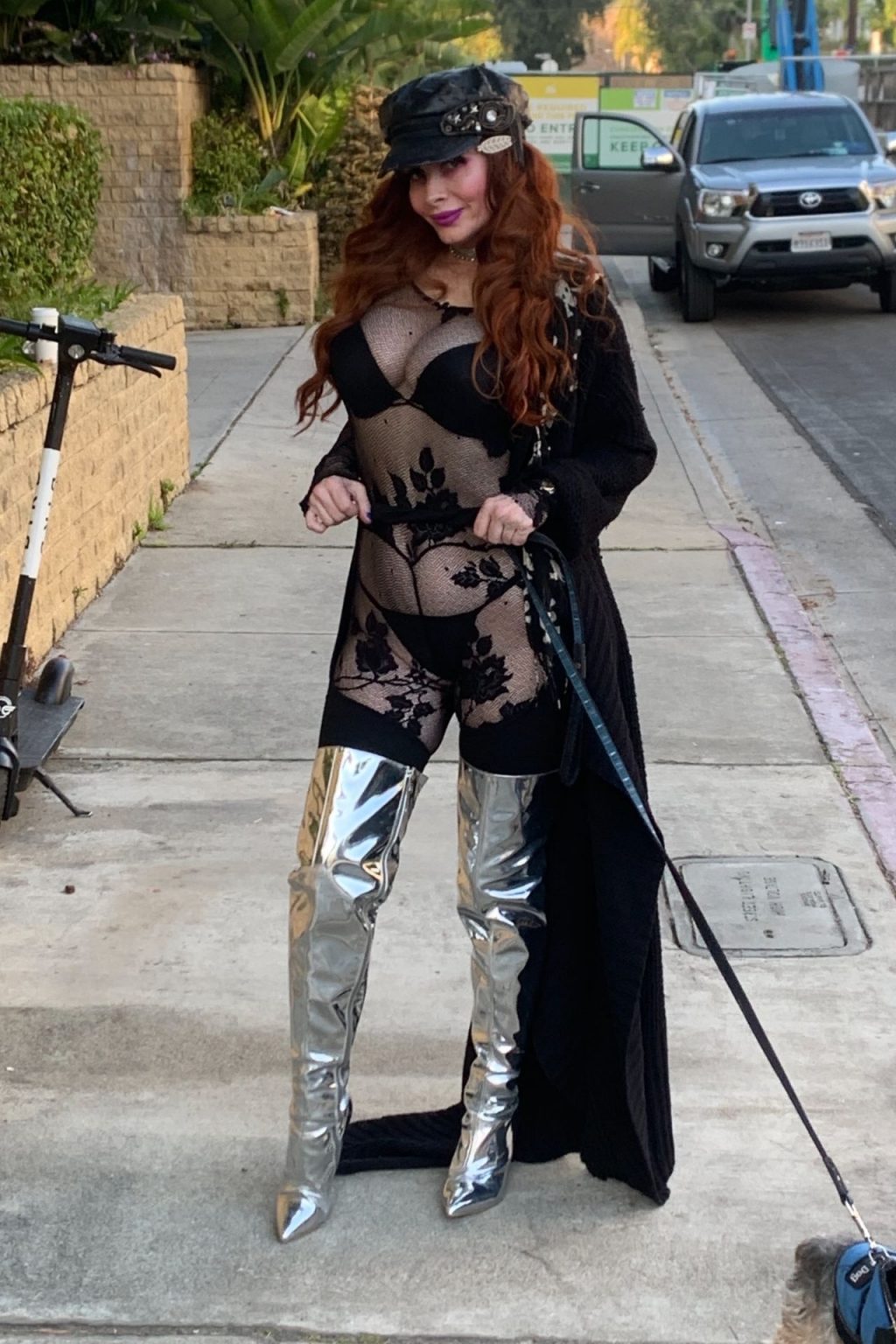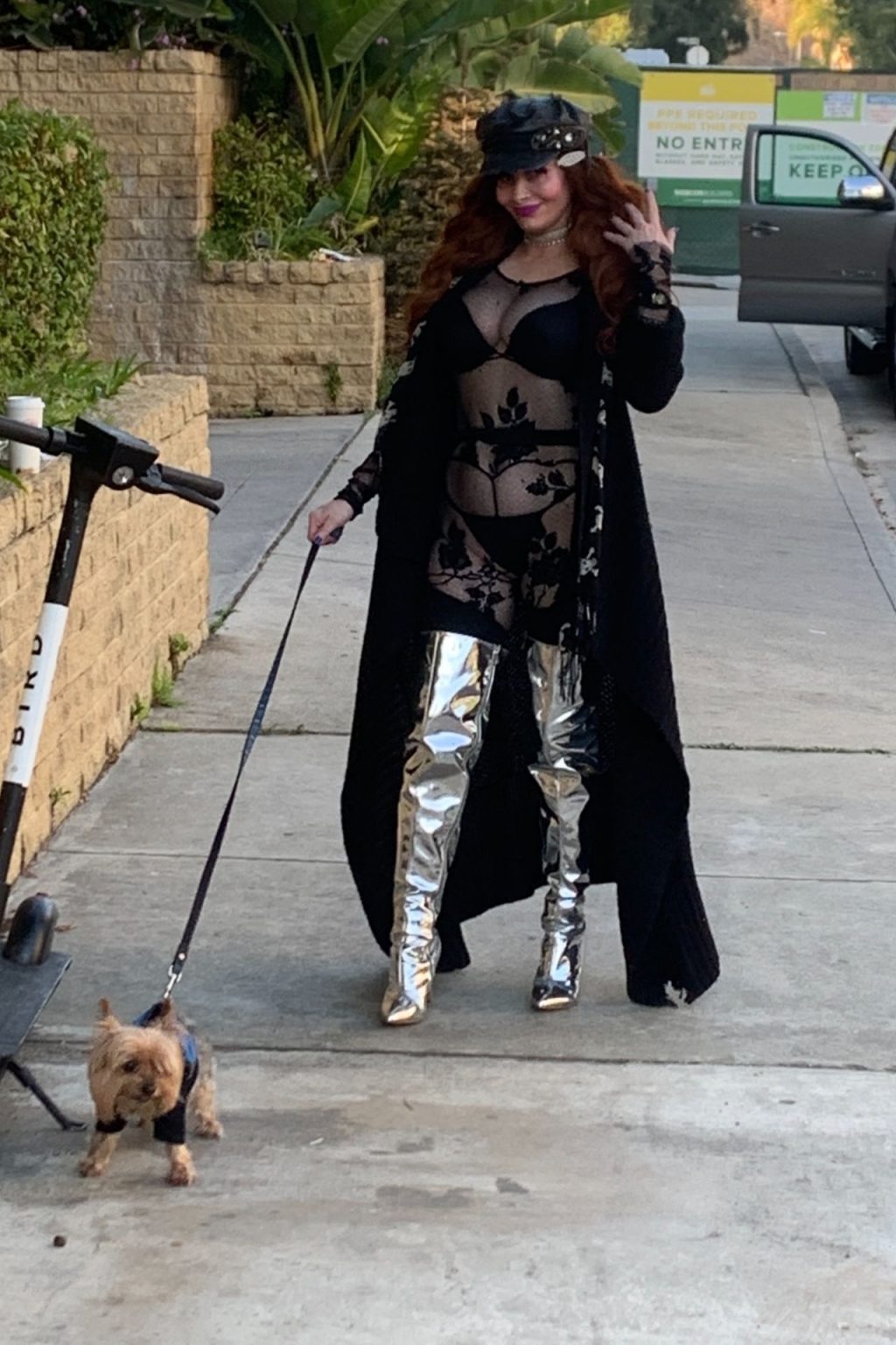 La actriz Phoebe Price no deja nada a la imaginación, vistiendo un tanga, mientras pasea a su perro en un scooter por la ciudad en Los Ángeles, 22/01/2020.