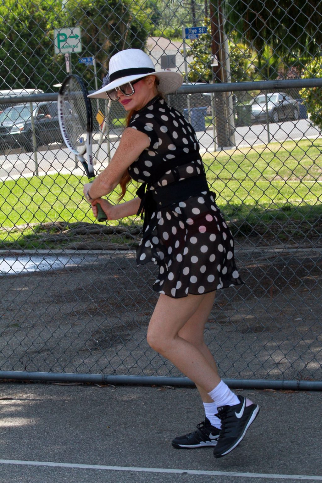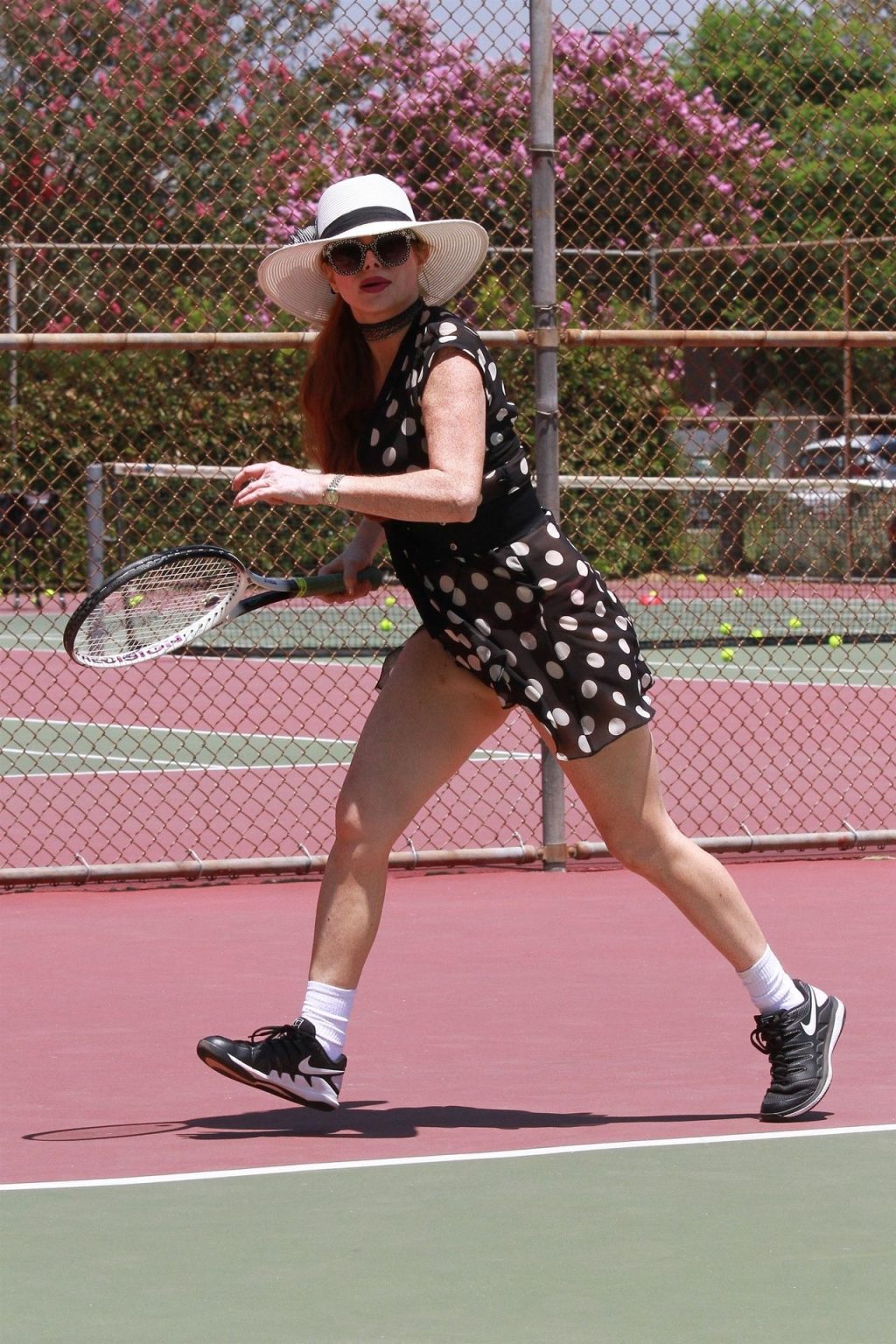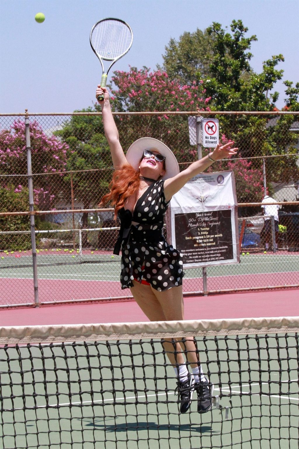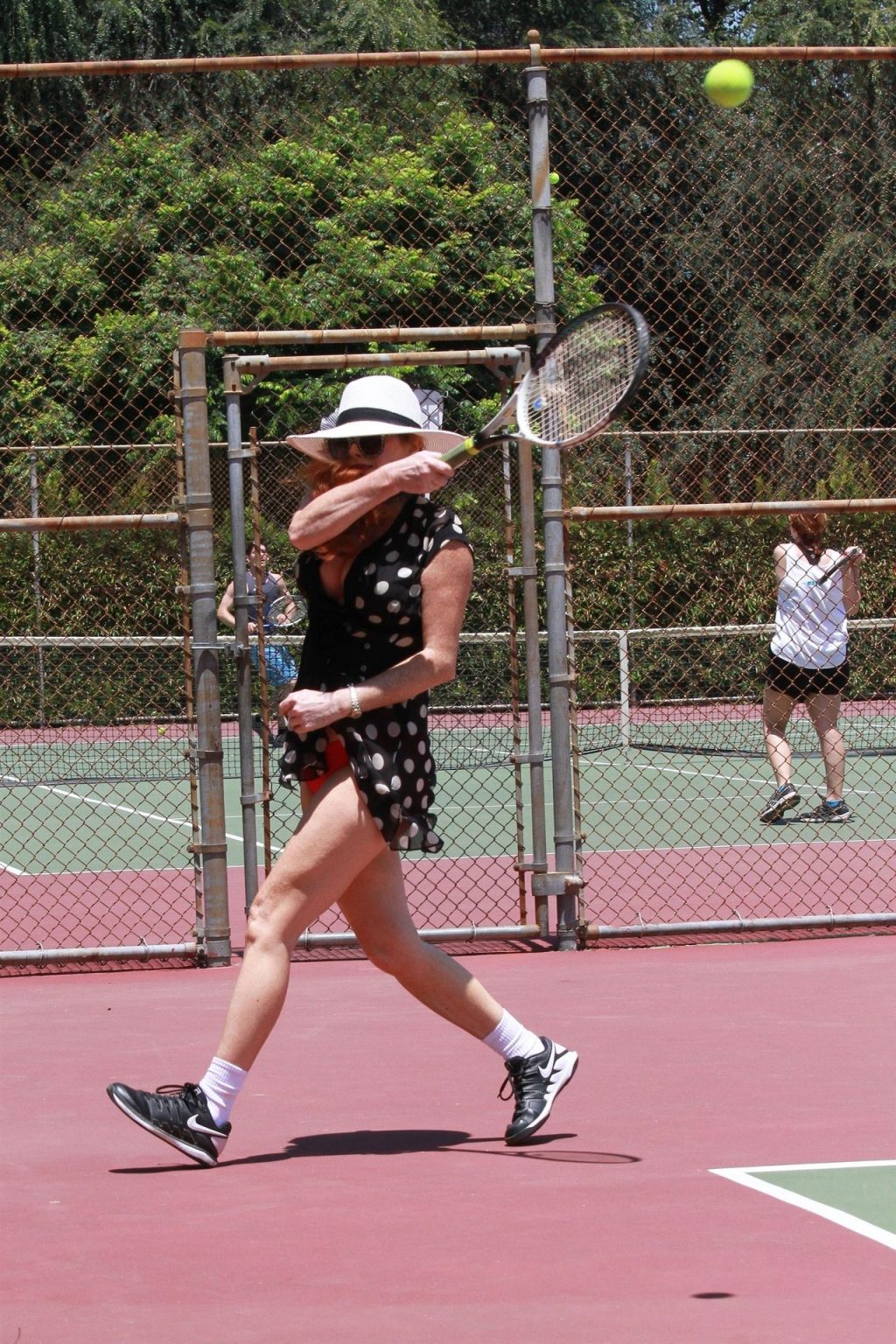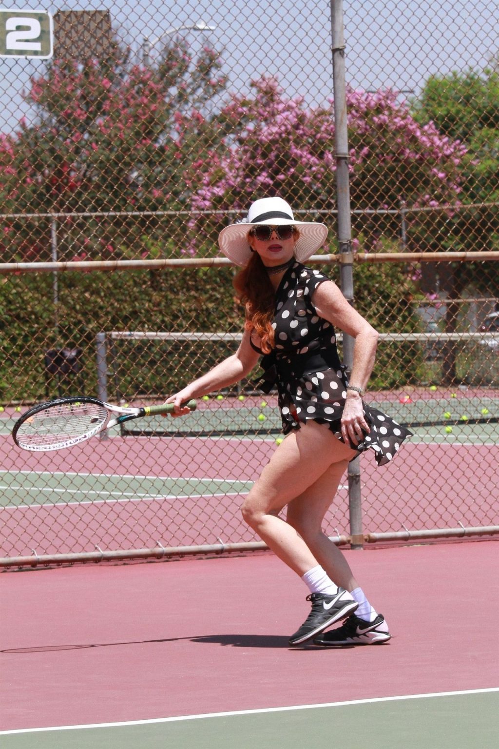 La actriz muestra un nuevo conjunto para las canchas y mucho escote. Se divierte golpeando pelotas y hace su entrenamiento.