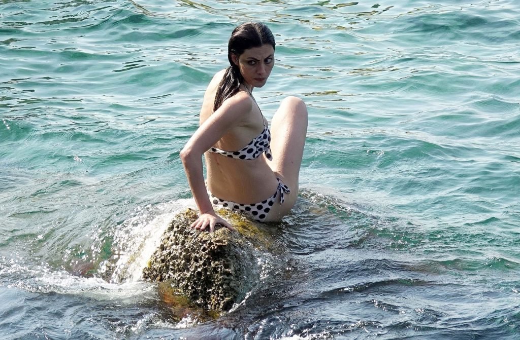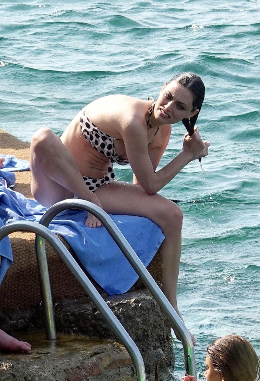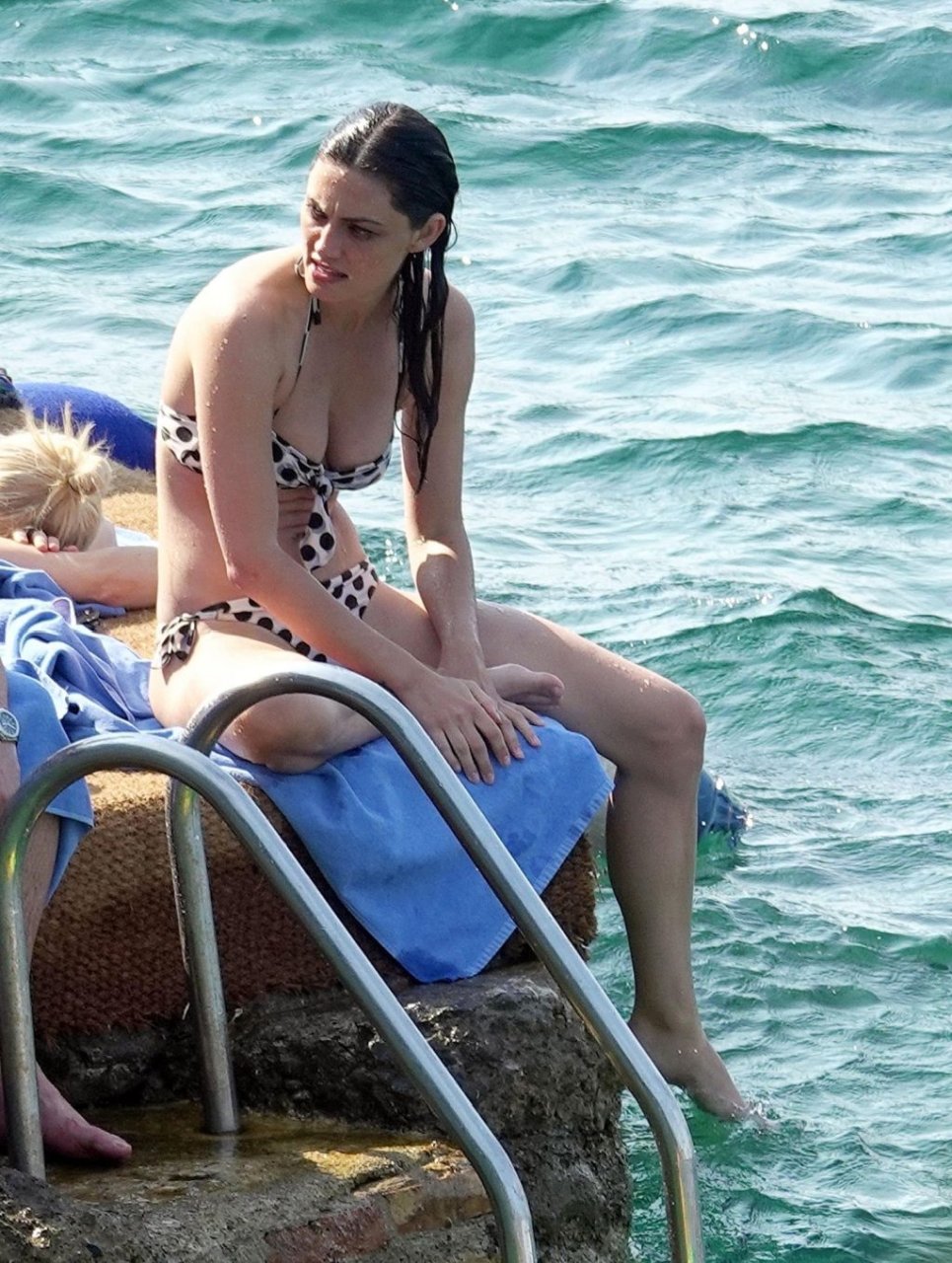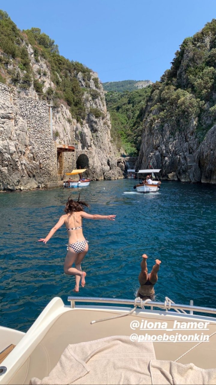 La actriz y modelo australiana de “Vampire Diaries” Phoebe Tonkin disfruta de un baño en el mar con amigos mientras vacaciona en Capri, 29/06/2019.